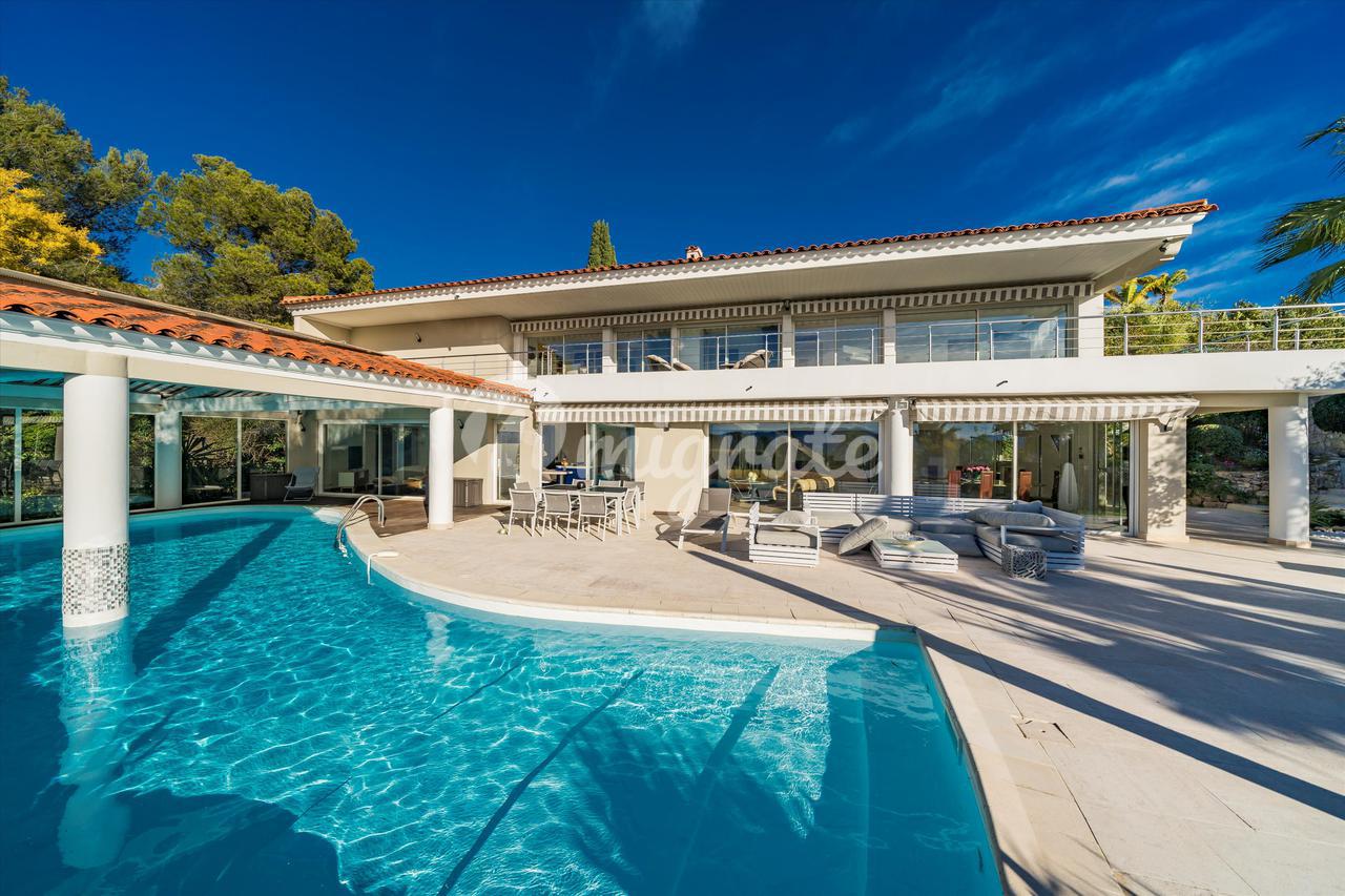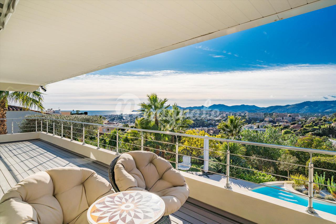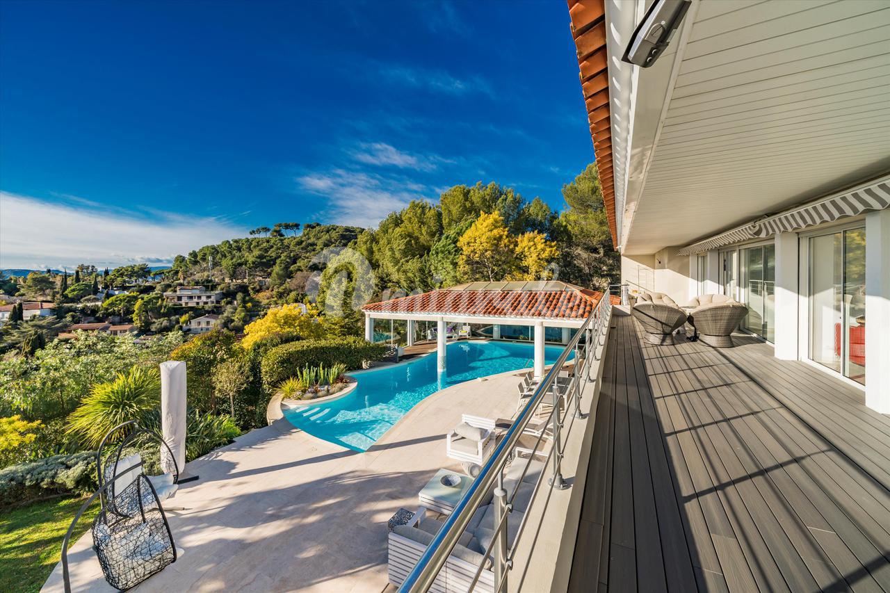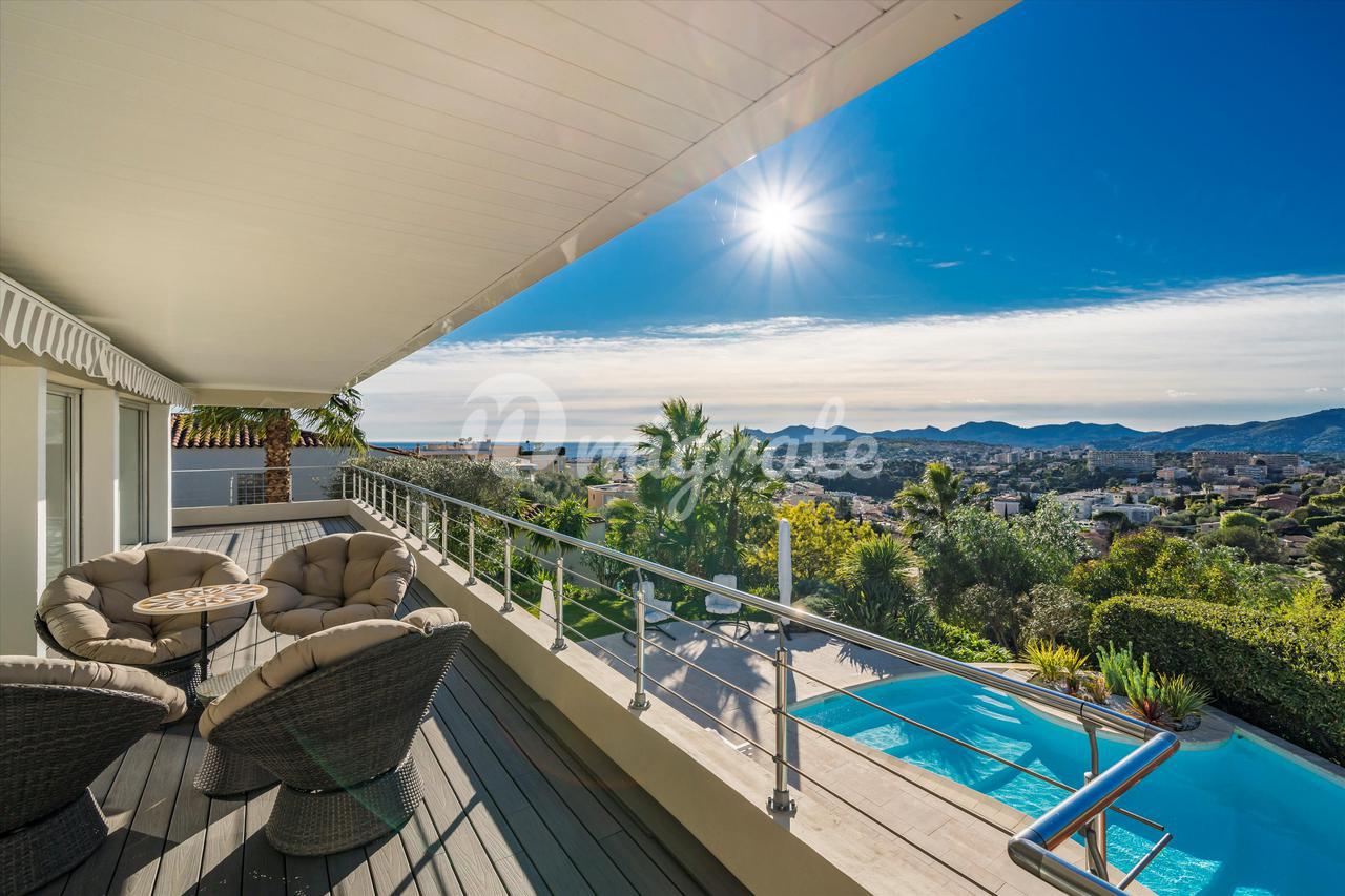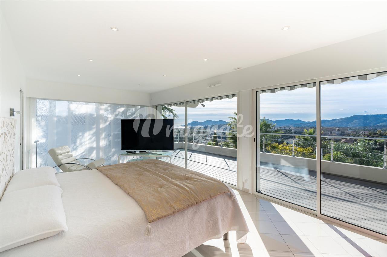 Эта вилла с 4 спальнями, расположенная в жилом районе Ле-Канне, располагает открытыми жилыми помещениями, выходящими на юго-запад и выходящими на большую террасу с бассейном и беспрепятственным видом на море. Внутренняя планировка недвижимости включает в себя красивую гостиную, выходящую на террасу с полукрытым бассейном, полностью оборудованную кухню, кладовую, 2 спальни с ванными комнатами на первом этаже. Наверху находится главная спальня с ванной комнатой, кабинет и гостевая спальня с ванной комнатой. Нижний этаж состоит из большого подвала и гаража.