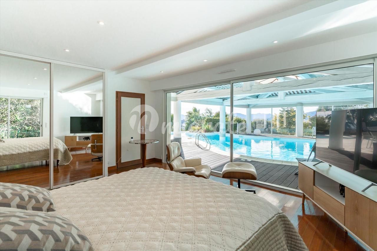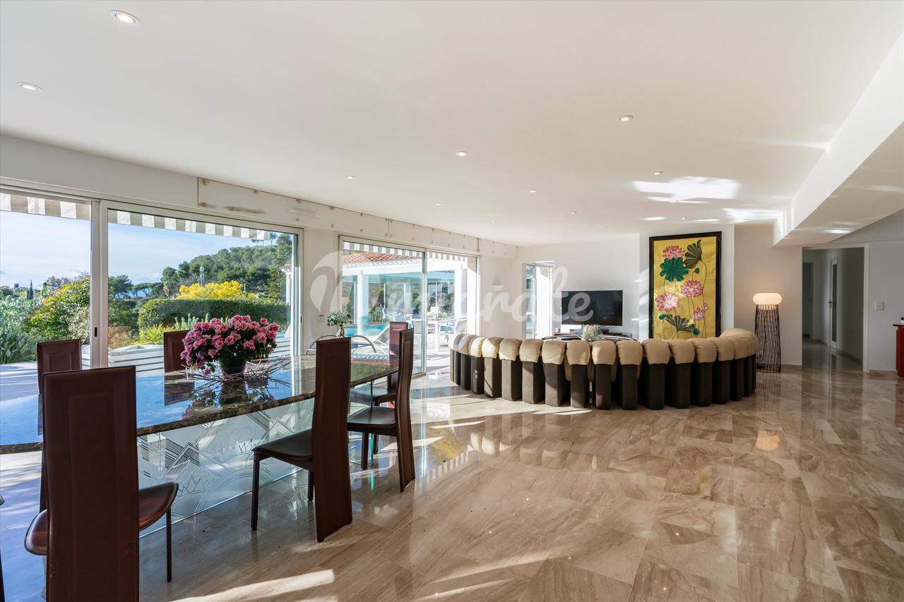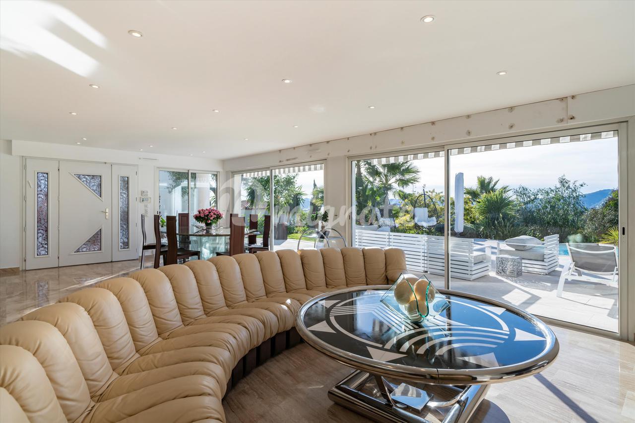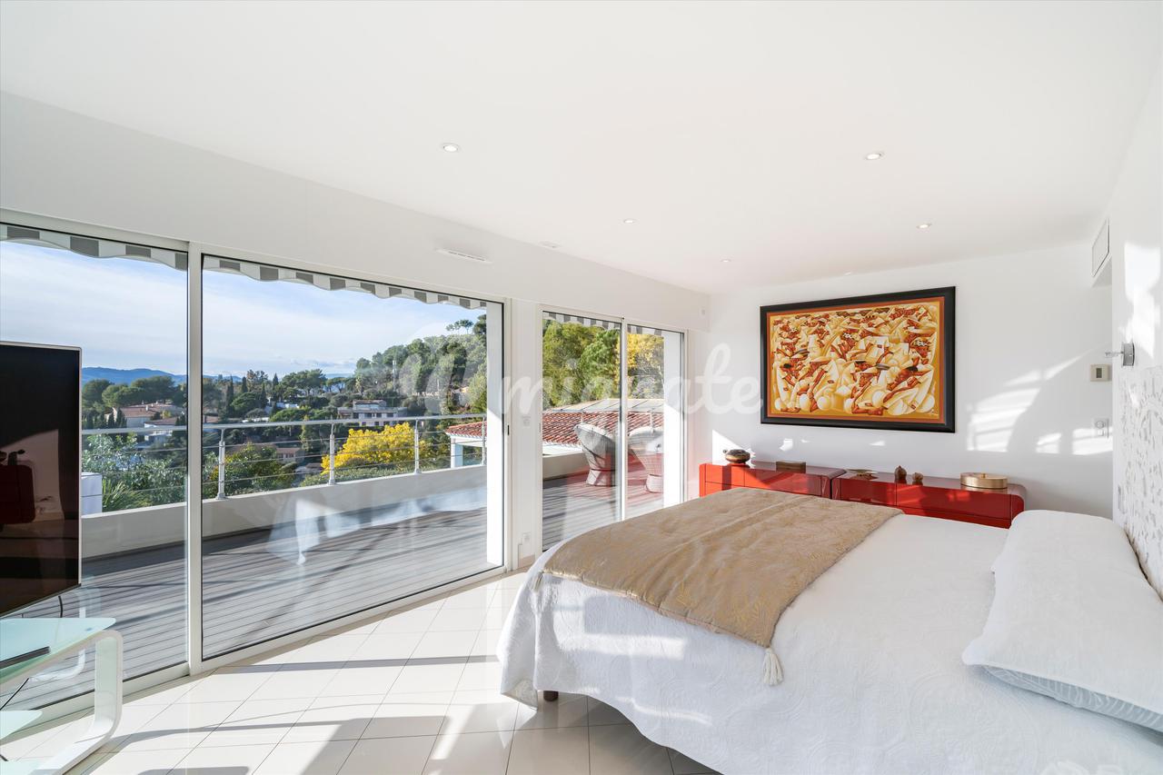 Эта вилла с 4 спальнями, расположенная в жилом районе Ле-Канне, располагает открытыми жилыми помещениями, выходящими на юго-запад и выходящими на большую террасу с бассейном и беспрепятственным видом на море. Внутренняя планировка недвижимости включает в себя красивую гостиную, выходящую на террасу с полукрытым бассейном, полностью оборудованную кухню, кладовую, 2 спальни с ванными комнатами на первом этаже. Наверху находится главная спальня с ванной комнатой, кабинет и гостевая спальня с ванной комнатой. Нижний этаж состоит из большого подвала и гаража.