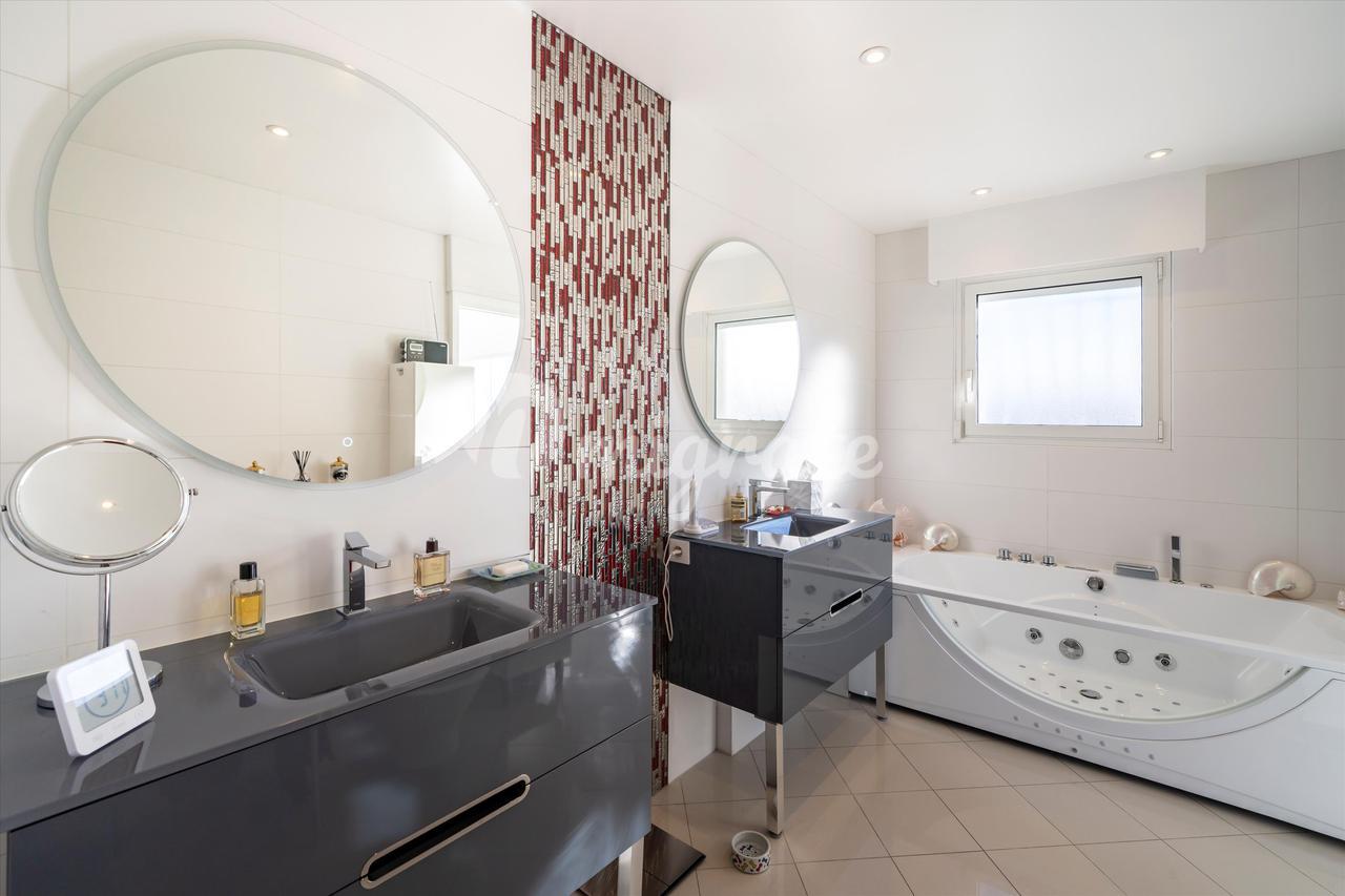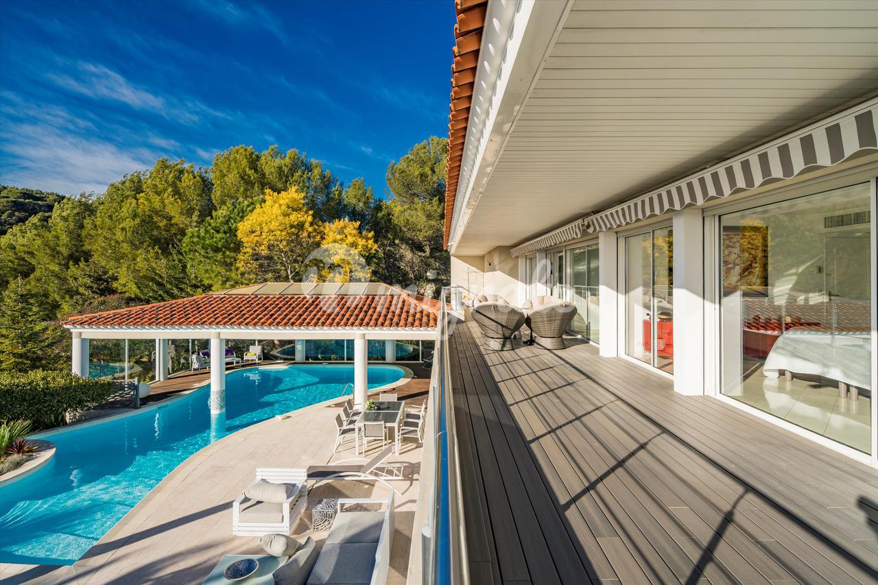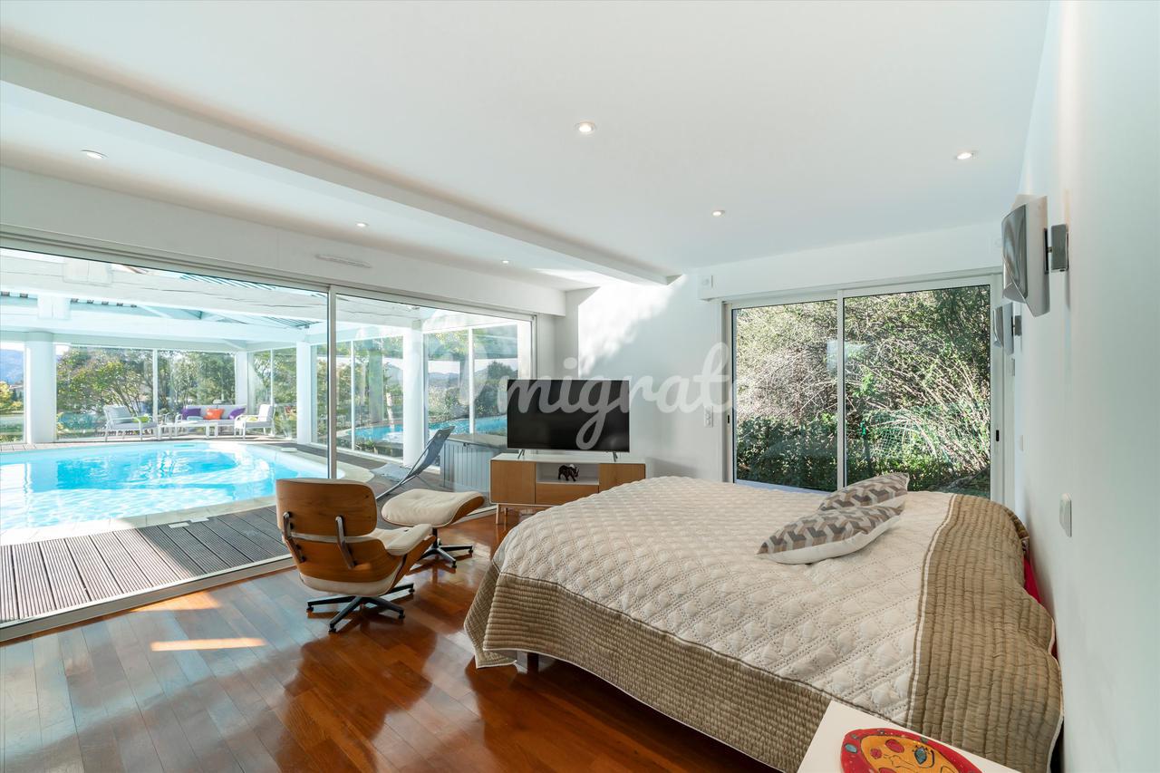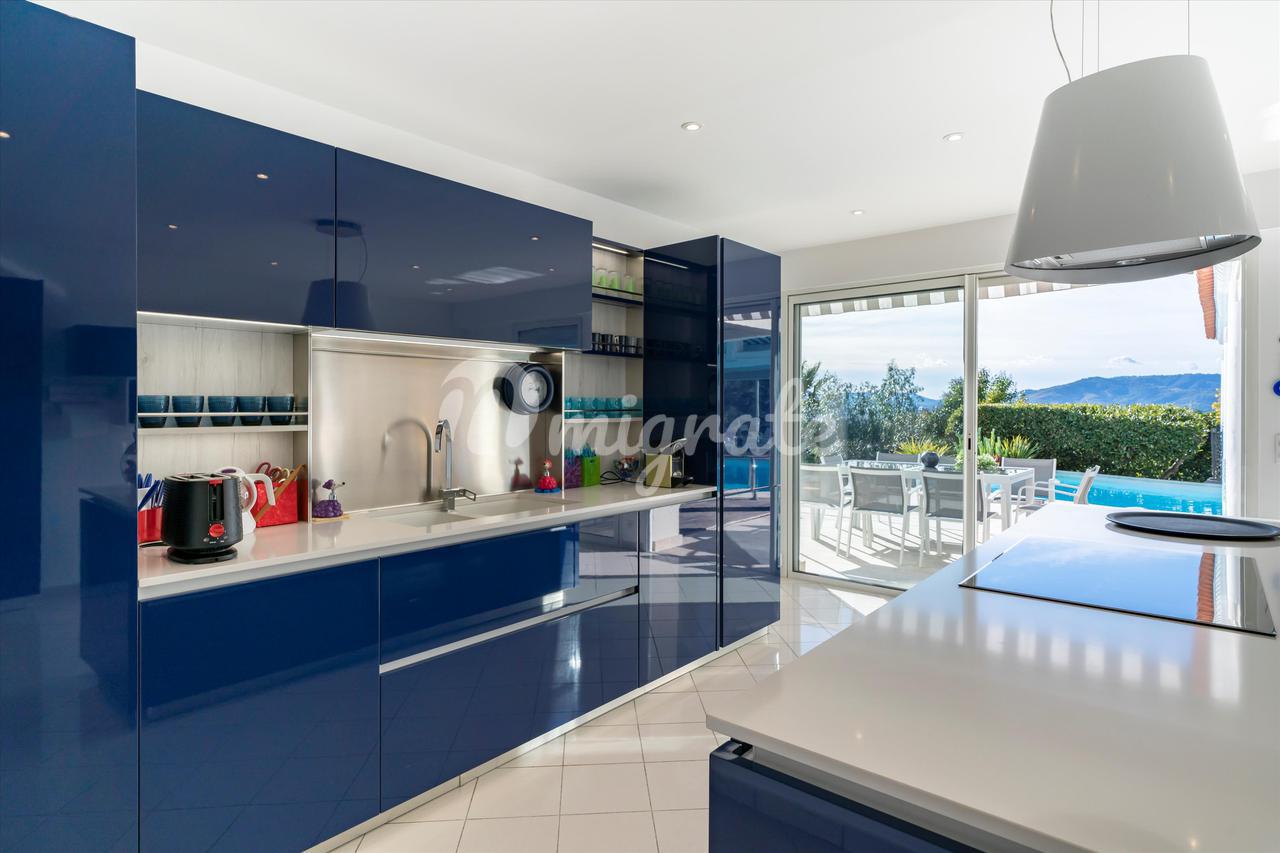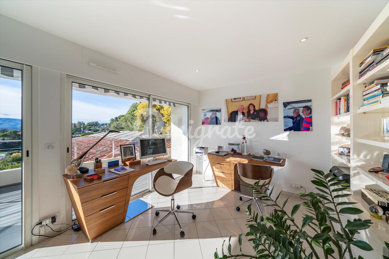 Эта вилла с 4 спальнями, расположенная в жилом районе Ле-Канне, располагает открытыми жилыми помещениями, выходящими на юго-запад и выходящими на большую террасу с бассейном и беспрепятственным видом на море. Внутренняя планировка недвижимости включает в себя красивую гостиную, выходящую на террасу с полукрытым бассейном, полностью оборудованную кухню, кладовую, 2 спальни с ванными комнатами на первом этаже. Наверху находится главная спальня с ванной комнатой, кабинет и гостевая спальня с ванной комнатой. Нижний этаж состоит из большого подвала и гаража.