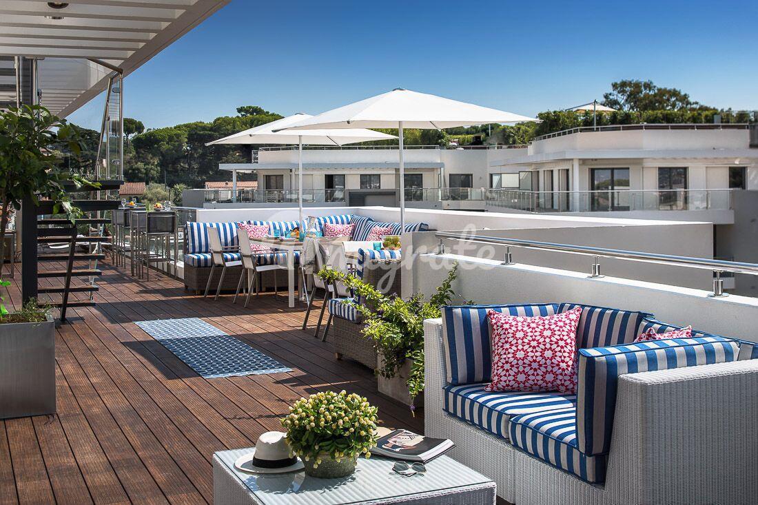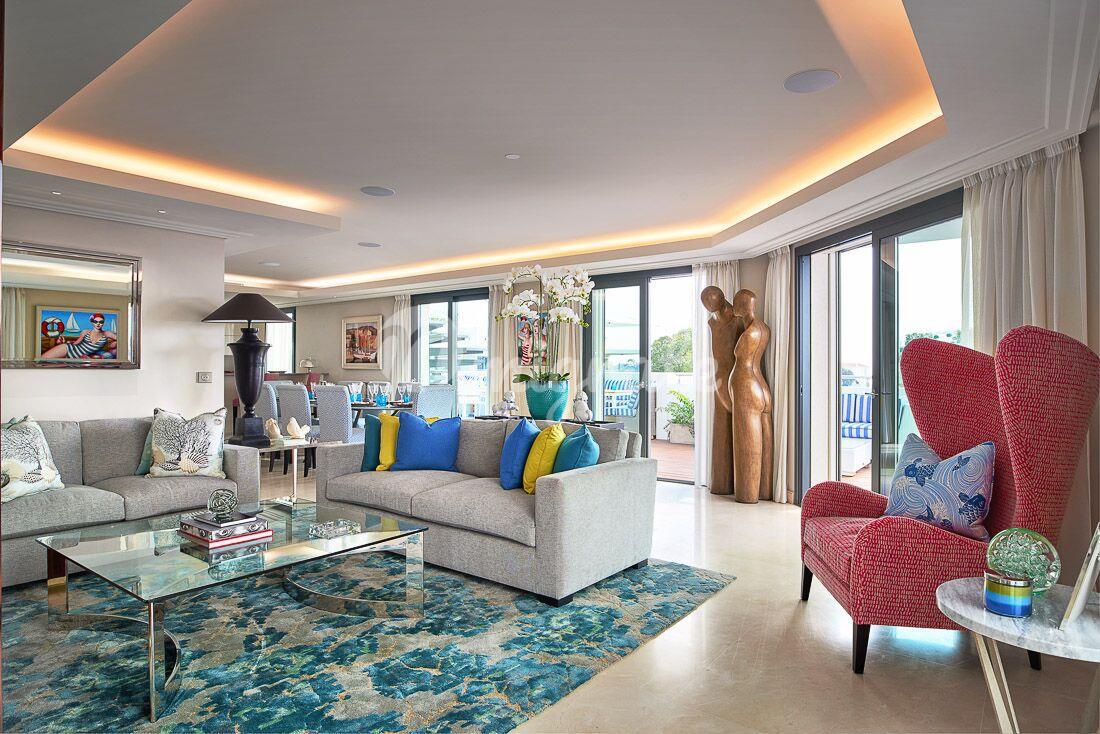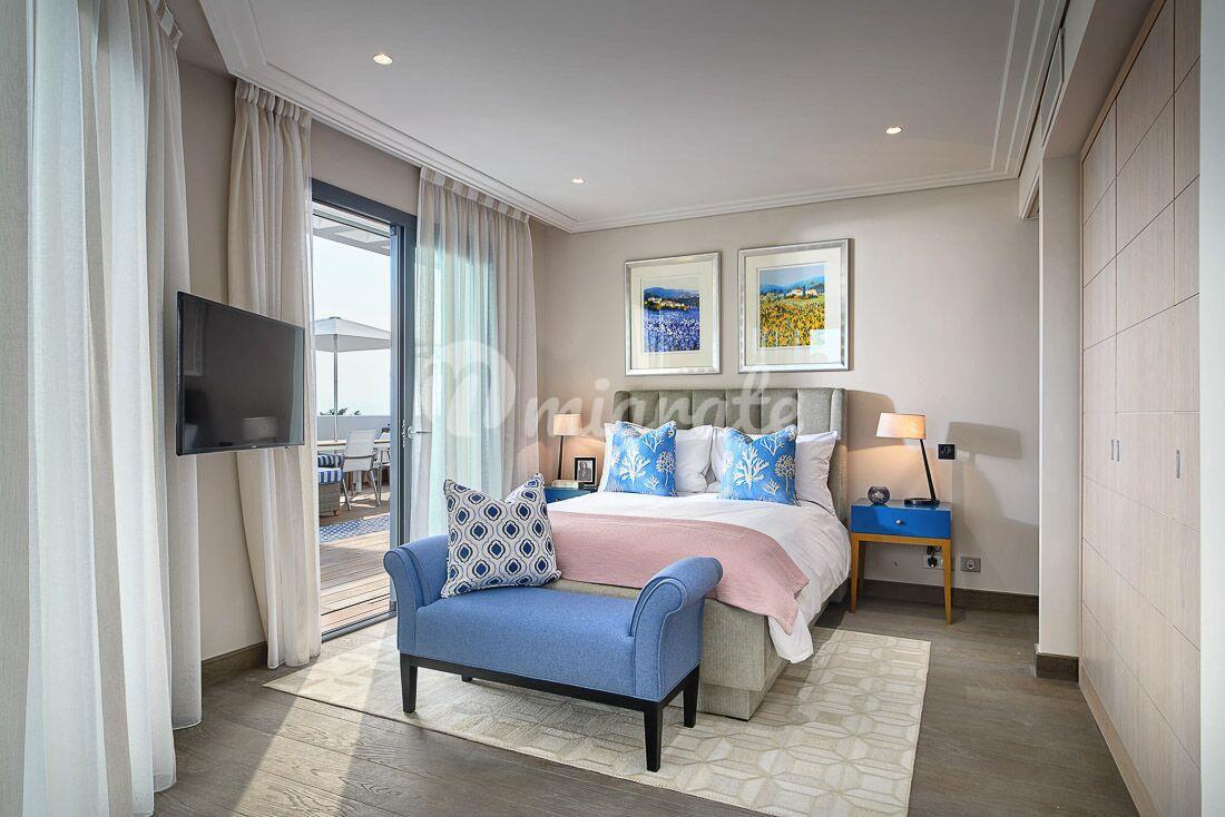 Прихожая, просторная открытая гостиная с кухней, которая выходит на террасу, главный люкс с гардеробной и ванной комнатой, а также еще три спальни с собственными ванными комнатами. Затем можно подняться (через террасу) на террасу на крыше площадью около 170 кв.м. с частным бассейном на крыше.