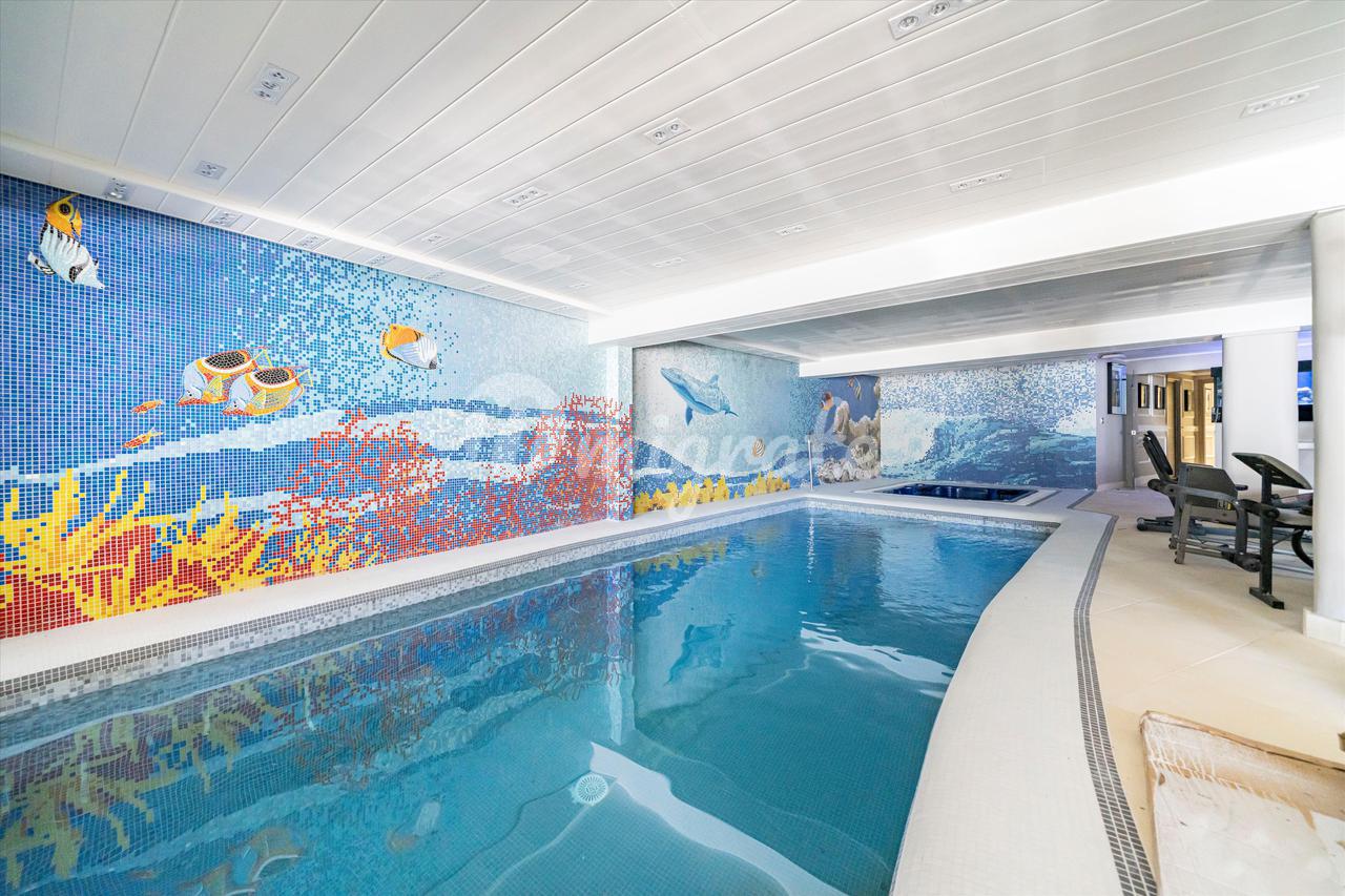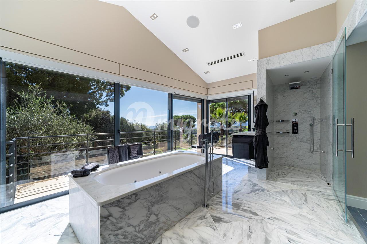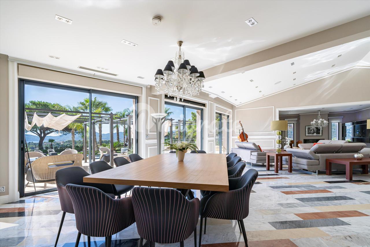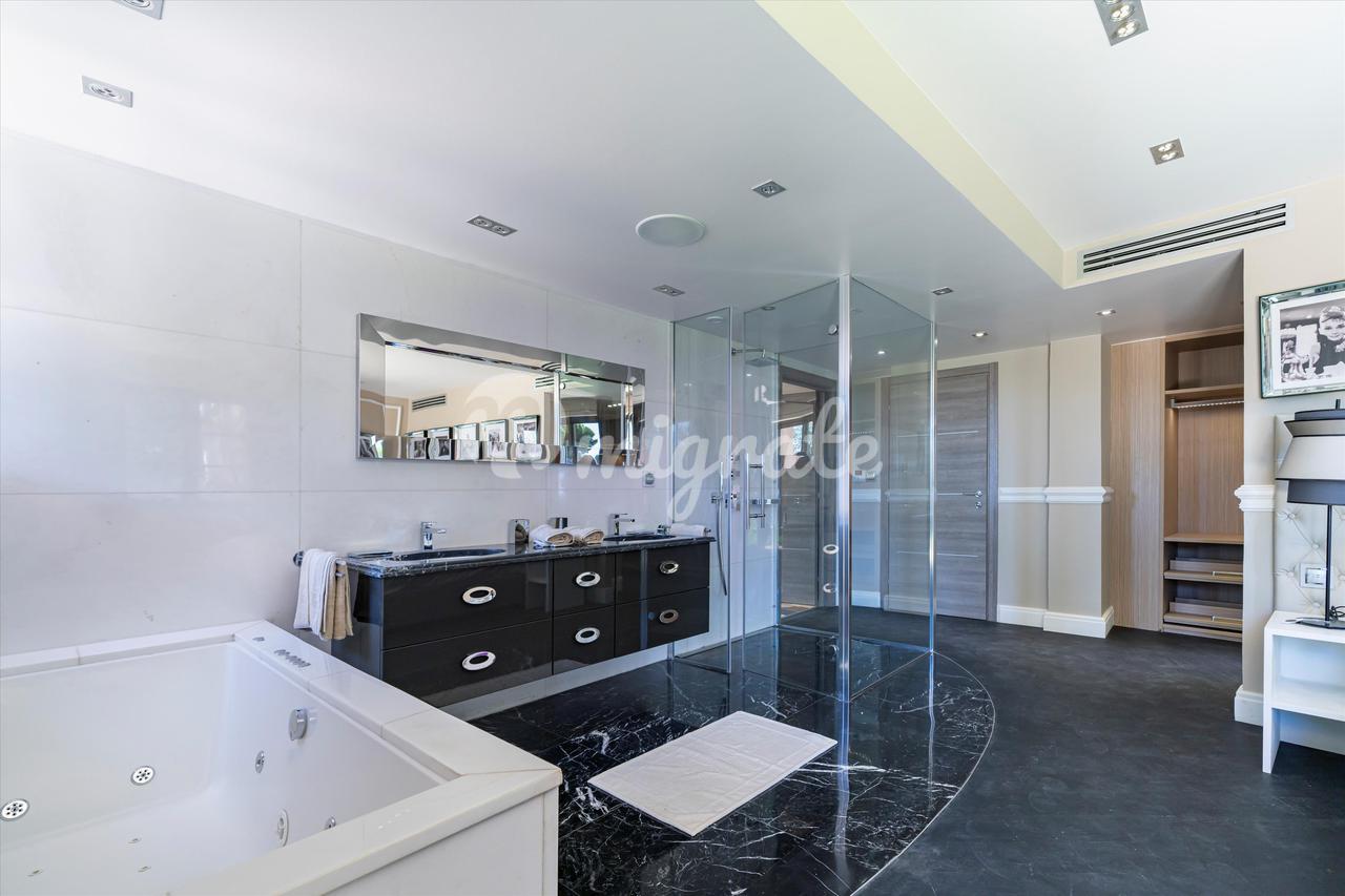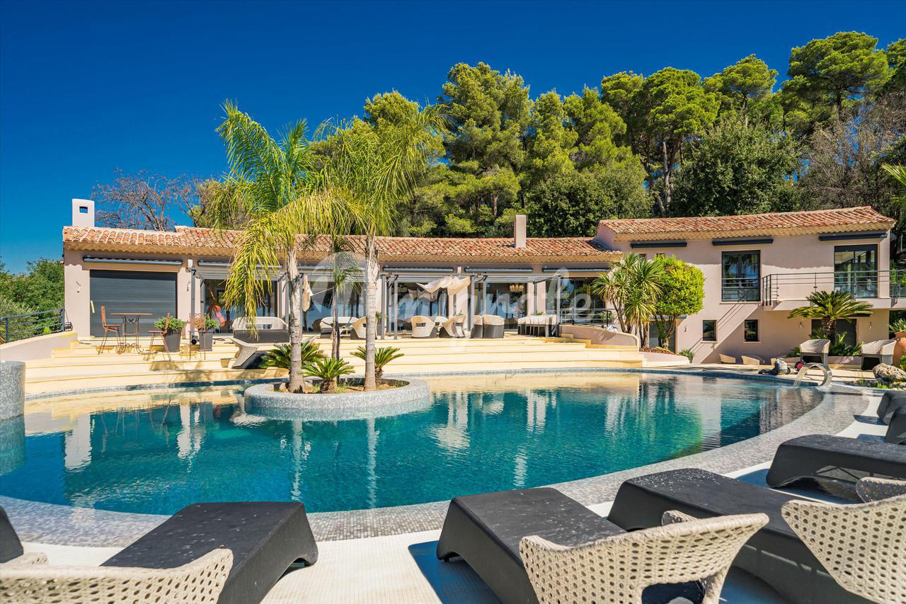 Предлагается к продаже в первозданном состоянии во всем. Недвижимость состоит из прихожей, гостиной/гостиной и столовой, полностью оборудованной кухни с профессиональной холодильной камерой, винного погреба, сигарной комнаты. В главной вилле есть 5 люксов с двуспальными кроватями, включая 2 основных люкса. На частной территории площадью ок. 1,6 га с большим бассейном, теннисным кортом, гаражом и навесом. Впечатляющий спа-центр с крытым бассейном, паровой баней, молотком, тренажерным залом и кинозалом дополняет главную виллу. Также есть отдельная гостевая квартира и отдельная квартира для персонала, тройной гараж и навес для машины. Имеется полностью интегрированная система безопасности как для виллы, так и для домена. Всего в нескольких минутах езды от набережной Круазет на побережье Канн, гольф-клуба Канн или аэропорта частных самолетов Канн-Мандельё.