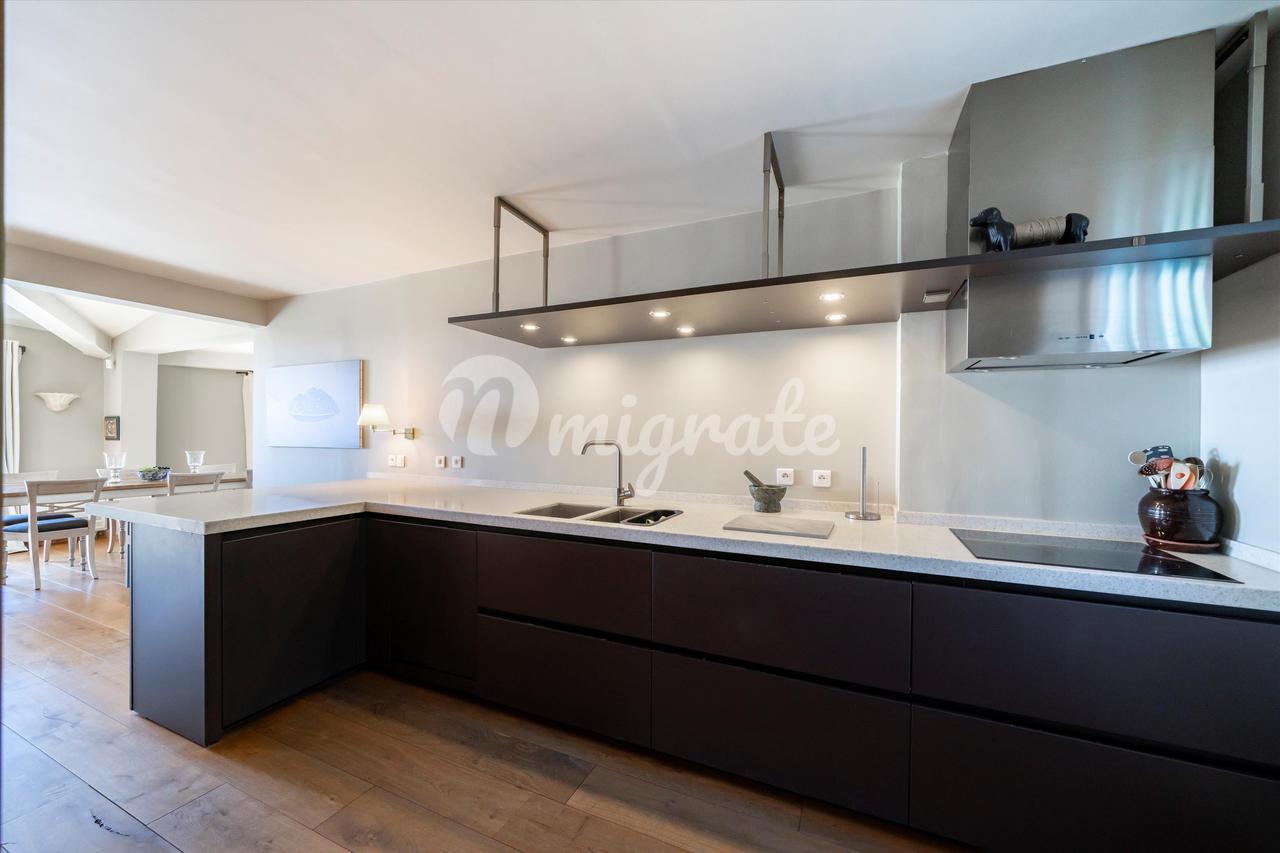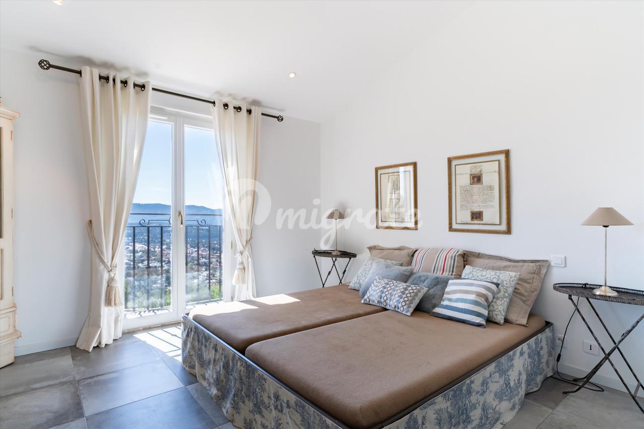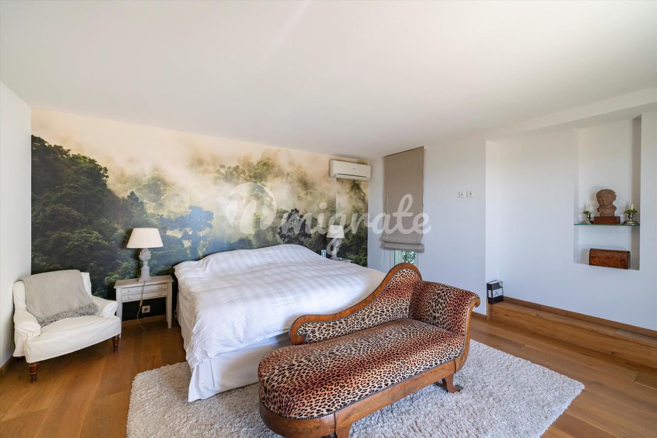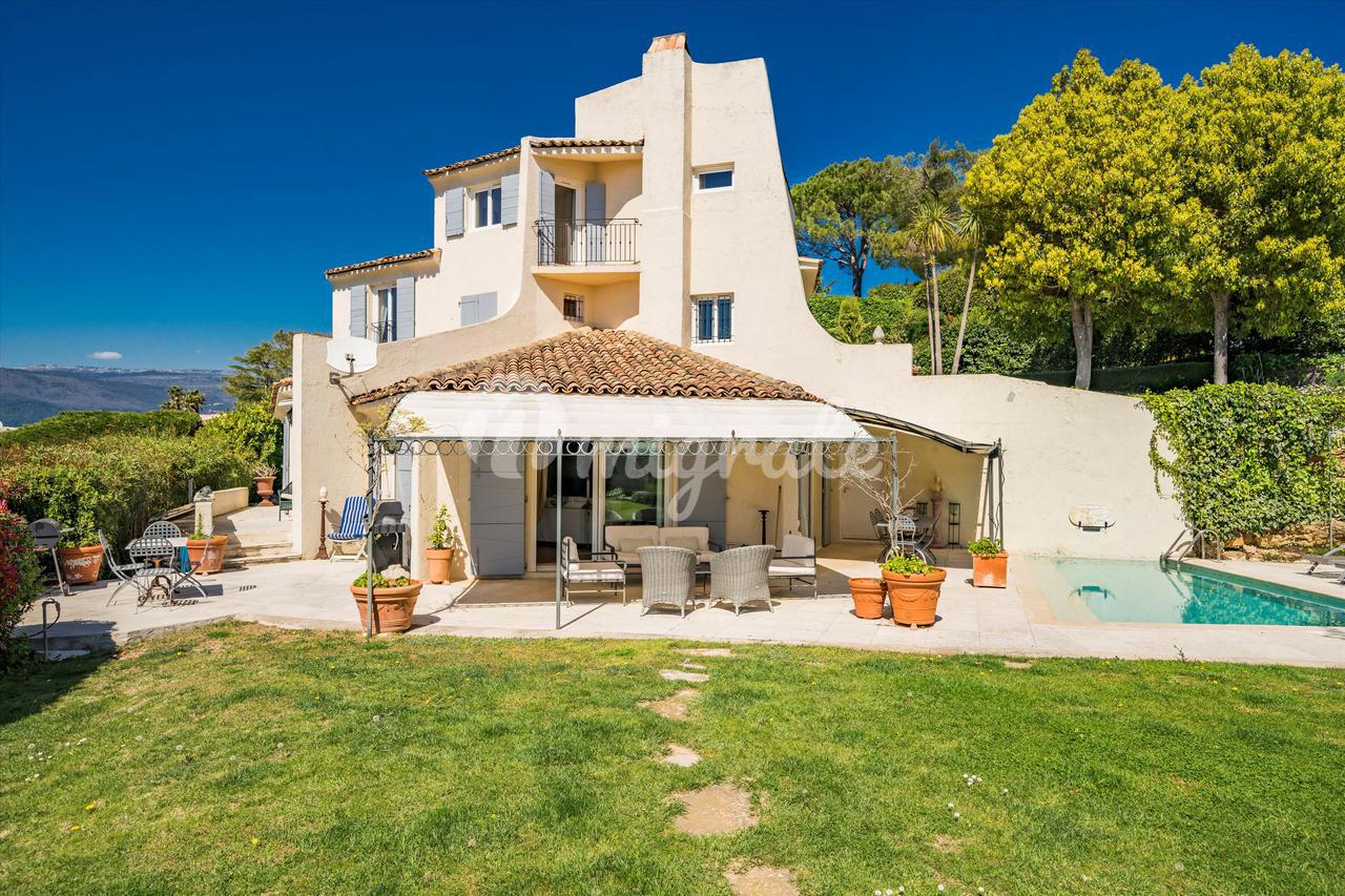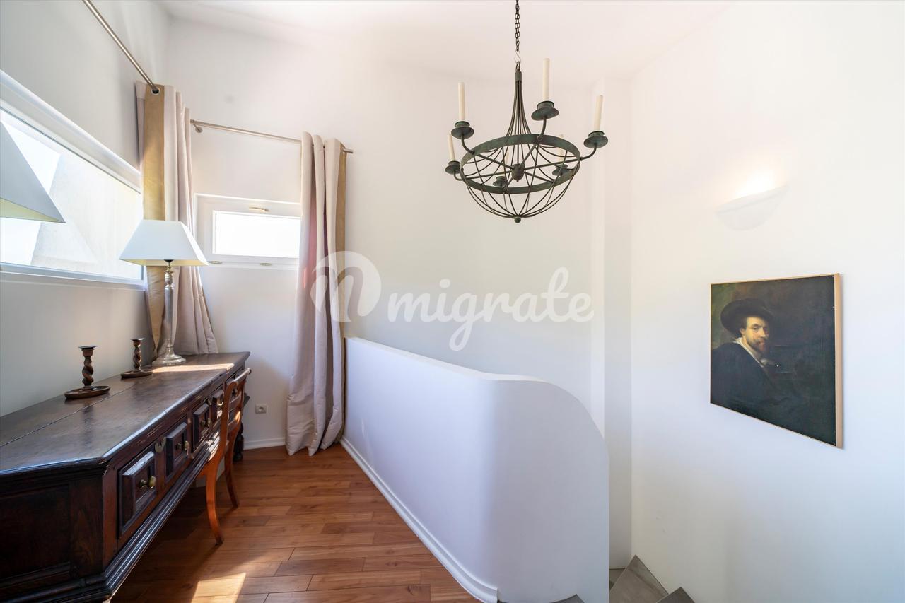 Полностью отремонтированный 5 лет назад дом состоит из трех этажей и имеет прихожую, светлую гостиную с высокими потолками и выходом на террасу у бассейна. Также имеется кухня открытой планировки с обеденным столом и главная спальня с комодом, ванная комната и окна с видом на юг, юг и запад. Второй этаж состоит из еще двух спален с ванными комнатами. На последнем этаже также находится еще одна спальня и небольшой балкон с видом на море и горы. В ухоженных садах есть бассейн и гараж на две машины.