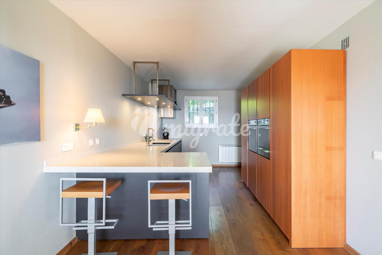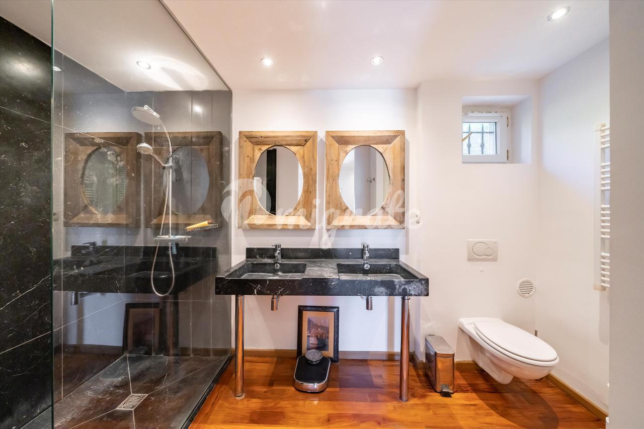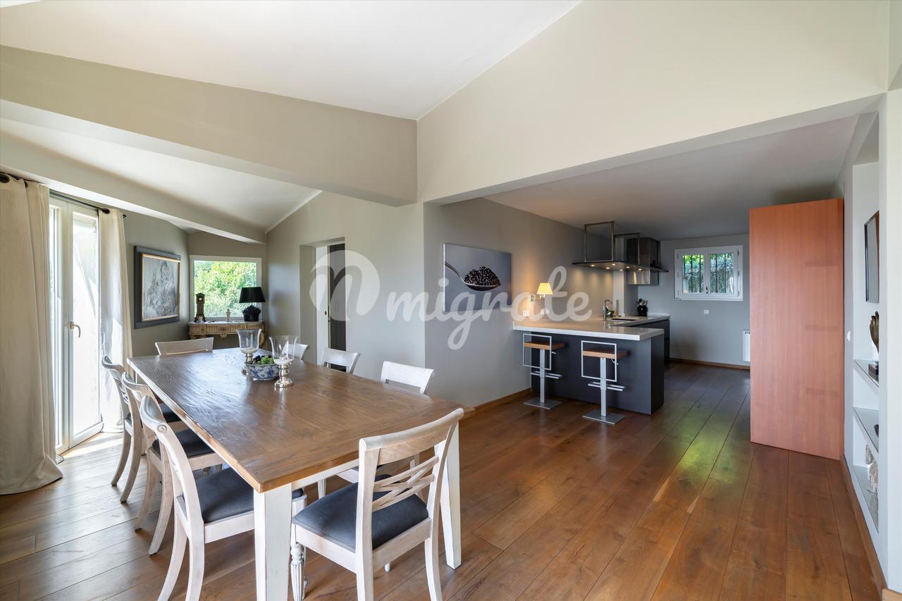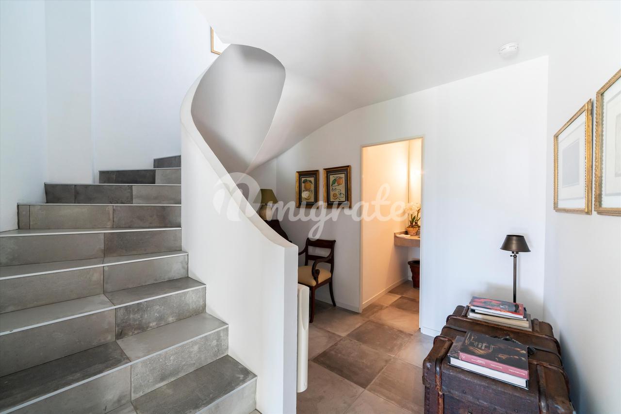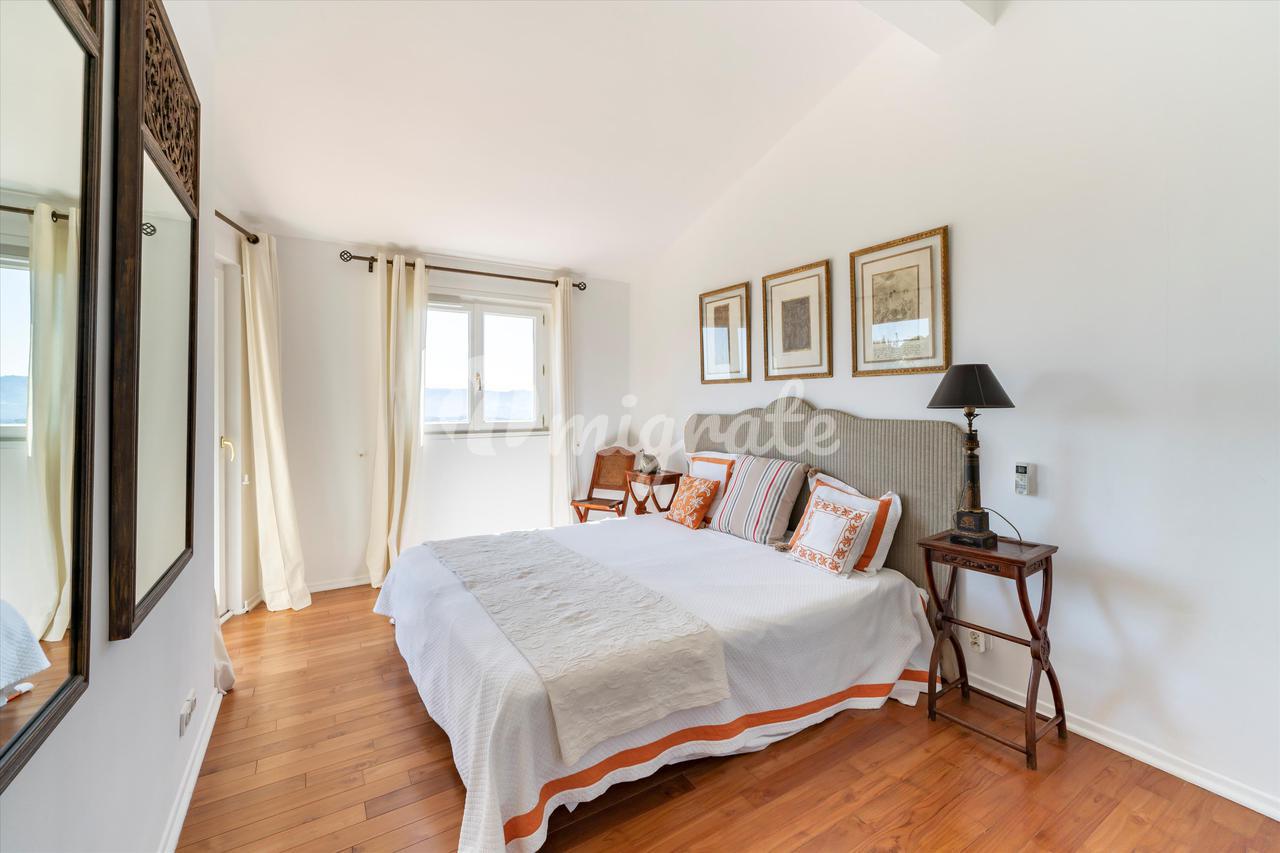 Полностью отремонтированный 5 лет назад дом состоит из трех этажей и имеет прихожую, светлую гостиную с высокими потолками и выходом на террасу у бассейна. Также имеется кухня открытой планировки с обеденным столом и главная спальня с комодом, ванная комната и окна с видом на юг, юг и запад. Второй этаж состоит из еще двух спален с ванными комнатами. На последнем этаже также находится еще одна спальня и небольшой балкон с видом на море и горы. В ухоженных садах есть бассейн и гараж на две машины.