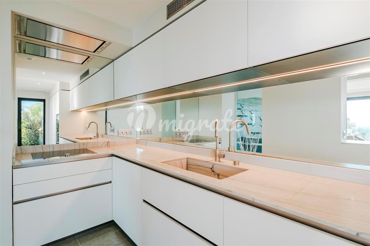 Предлагая в общей сложности около 260 кв.м жилья, жилая площадь включает в себя просторную открытую гостиную и столовую, оборудованную кухню, четыре спальни, четыре ванные комнаты, кинозал и прачечную. В доме есть кондиционер, домашняя автоматизация, система безопасности и электрические ворота.