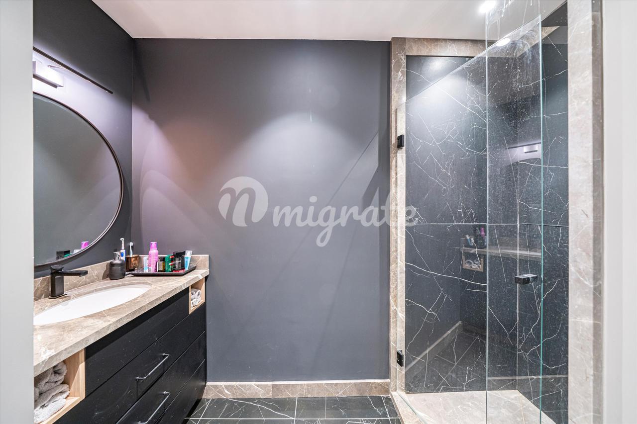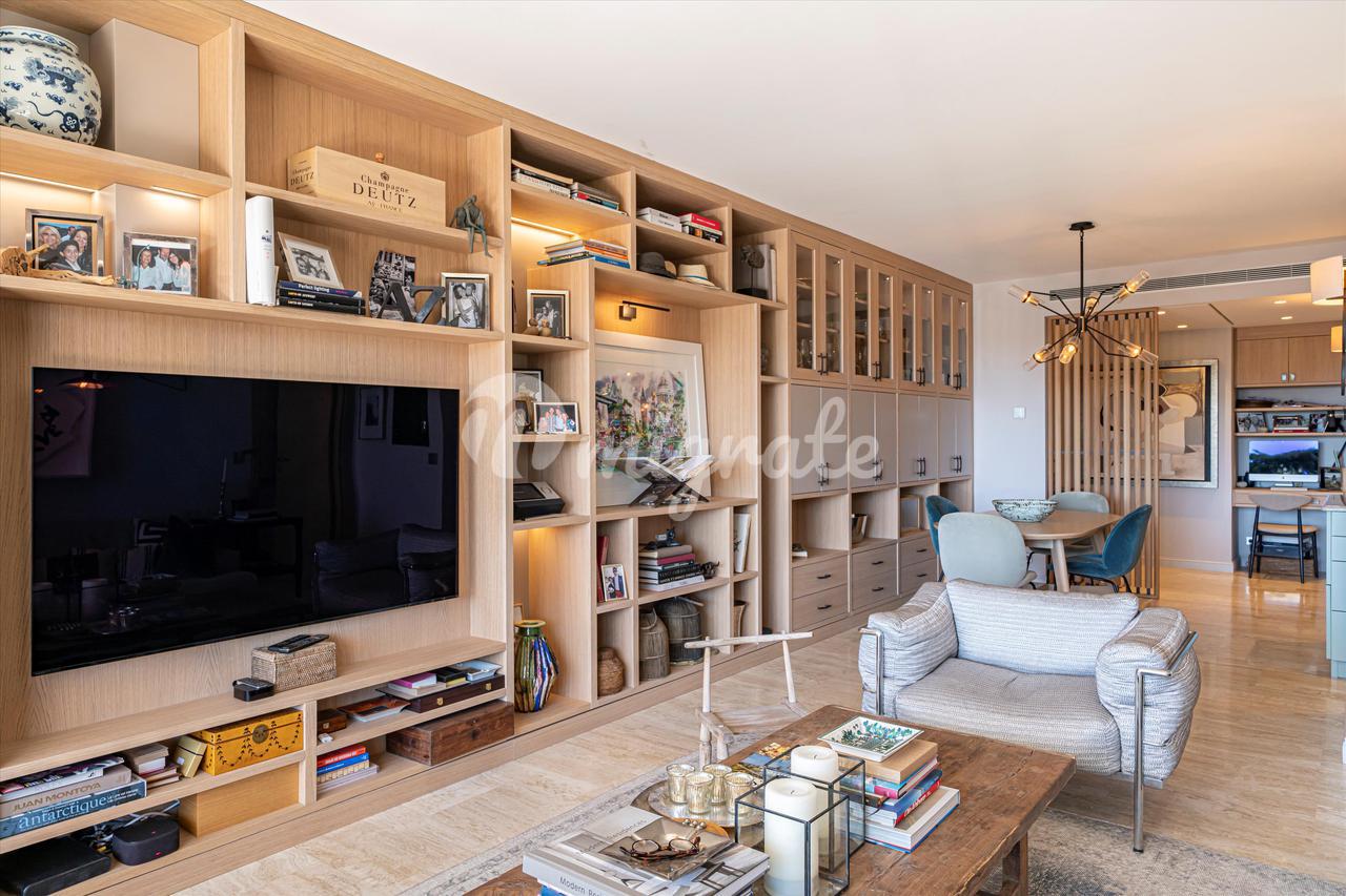 Квартира была полностью отремонтирована с использованием качественных материалов и состоит из прихожей, гостиной/столовой с видом на море, полностью оборудованной кухни, главной спальни с гардеробной и ванной комнатой. Существует 24-часовая охрана, гараж и подвал.
