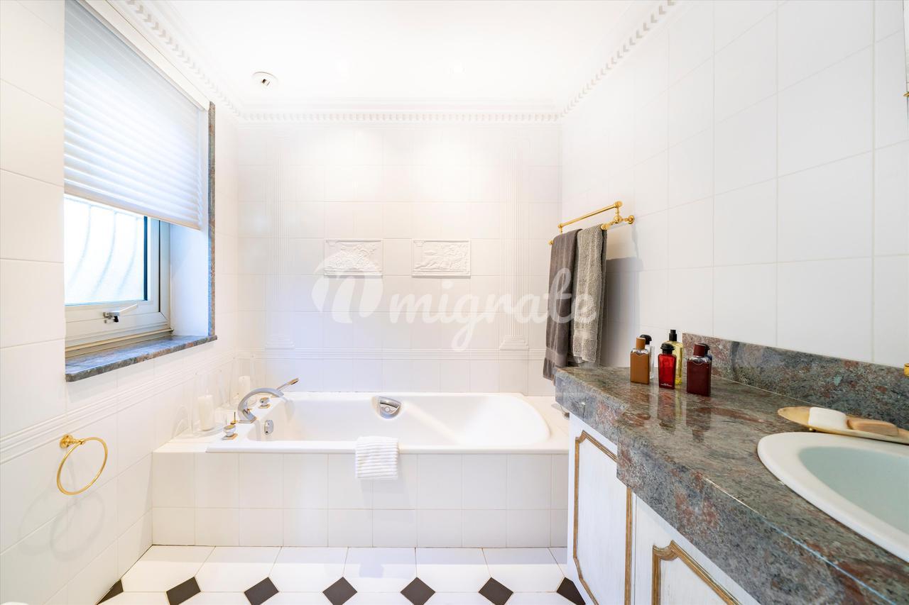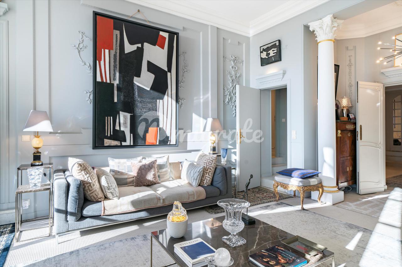 Помещение около 94 кв.м. включает в себя две спальни с ванными комнатами, кабинет, гостиную и столовую, кухню и подвал.