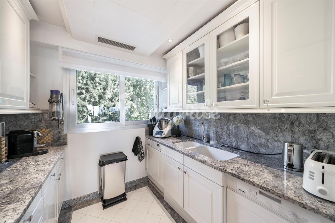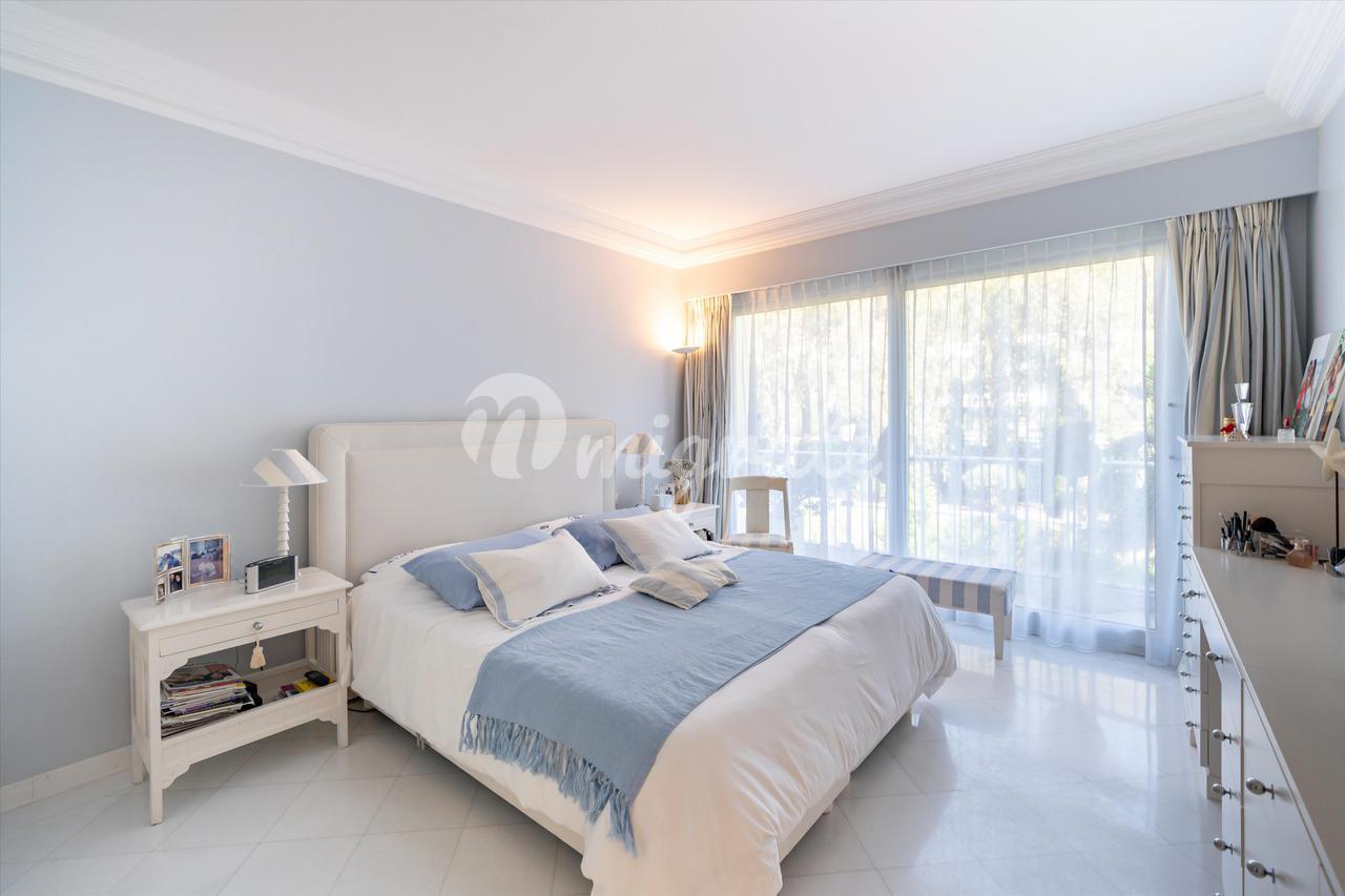 С круглосуточной охраной, 25-метровым бассейном, теннисным кортом, садом в японском стиле и ландшафтным парком, эта квартира в отличном состоянии представляет собой прекрасную возможность. Она включает в себя прихожую, двойную гостиную / столовую, выходящую на террасу, выходящую на южную сторону, с видом на море (возможность воссоздать третью спальню с видом на юг). Существует также независимая полностью оборудованная кухня, главная спальня с гардеробной, дополнительная ванная комната, спальня и гостевой туалет, гараж и пещера.