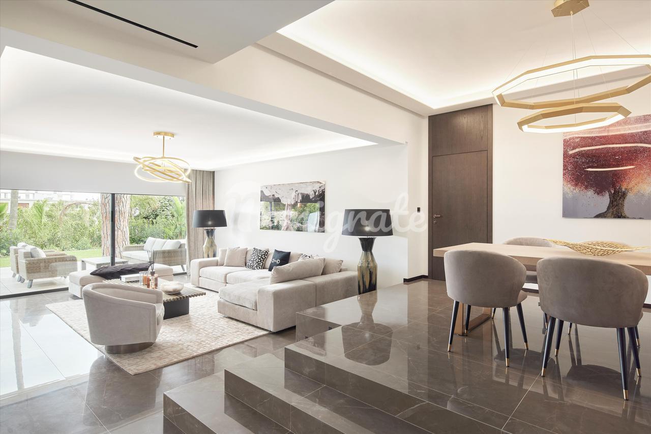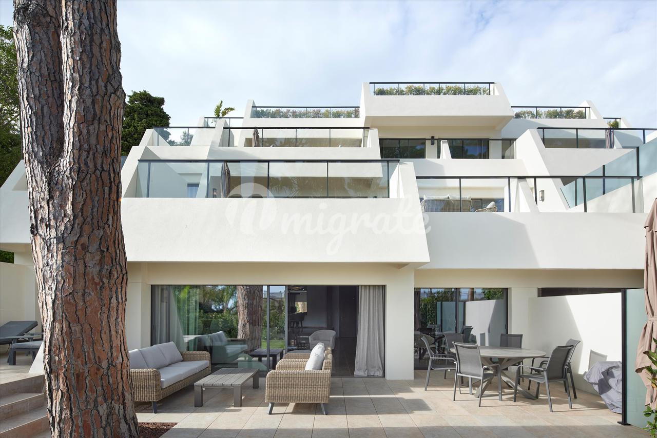 Расположенная на первом этаже здания в этой охраняемой резиденции, эта квартира на южной стороне предлагает около 200 кв.м жилья с изысканной отделкой и домашней автоматизацией. Размещение включает в себя: Великолепная приемная, столовая, полностью оборудованная кухня, гостевой туалет, три спальни с собственными ванными комнатами и прачечная. В квартире также есть великолепная терраса/сад площадью около 225 кв.м.