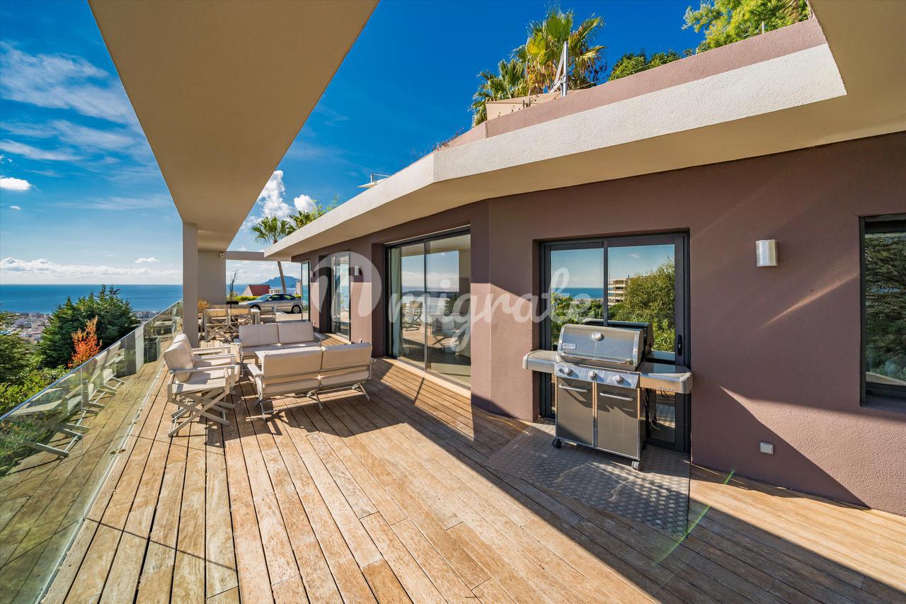 Великолепная современная двухуровневая вилла с большими террасами и бассейном, откуда открывается исключительный панорамный вид на Каннский залив. Вилла состоит из гостиной, столовой, кухни открытого плана с выходом на прекрасную террасу и 5 спален. Большой бассейн и парковка на 2 машины дополняют эту собственность.