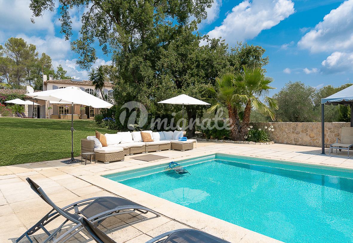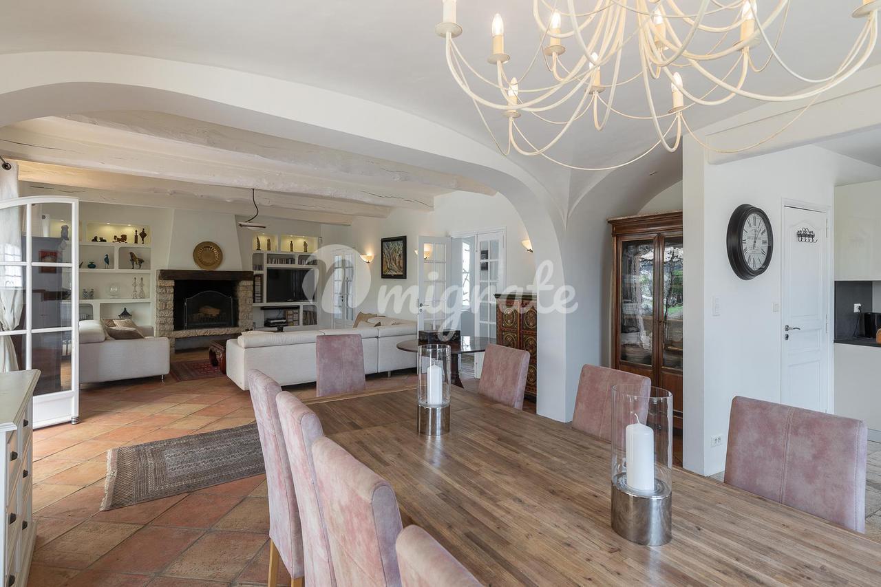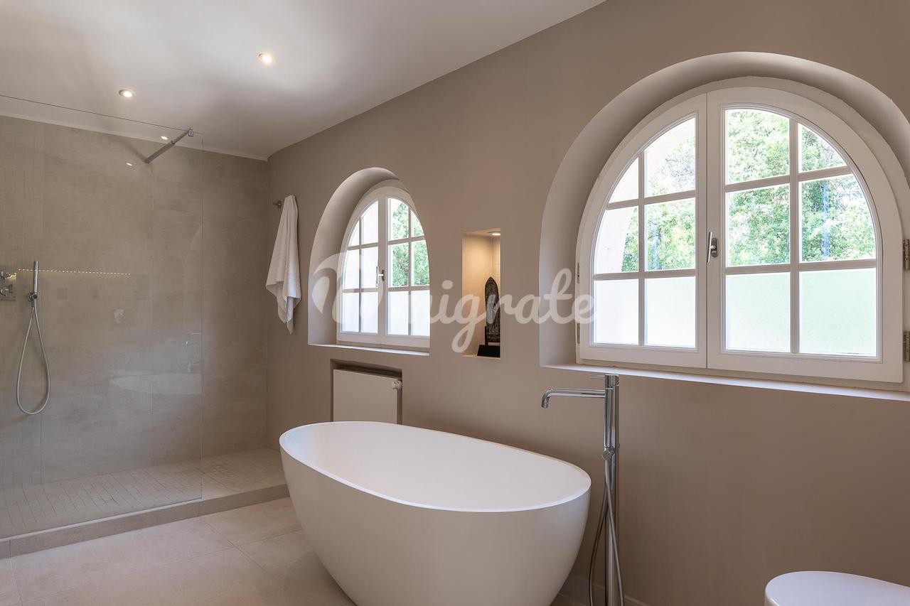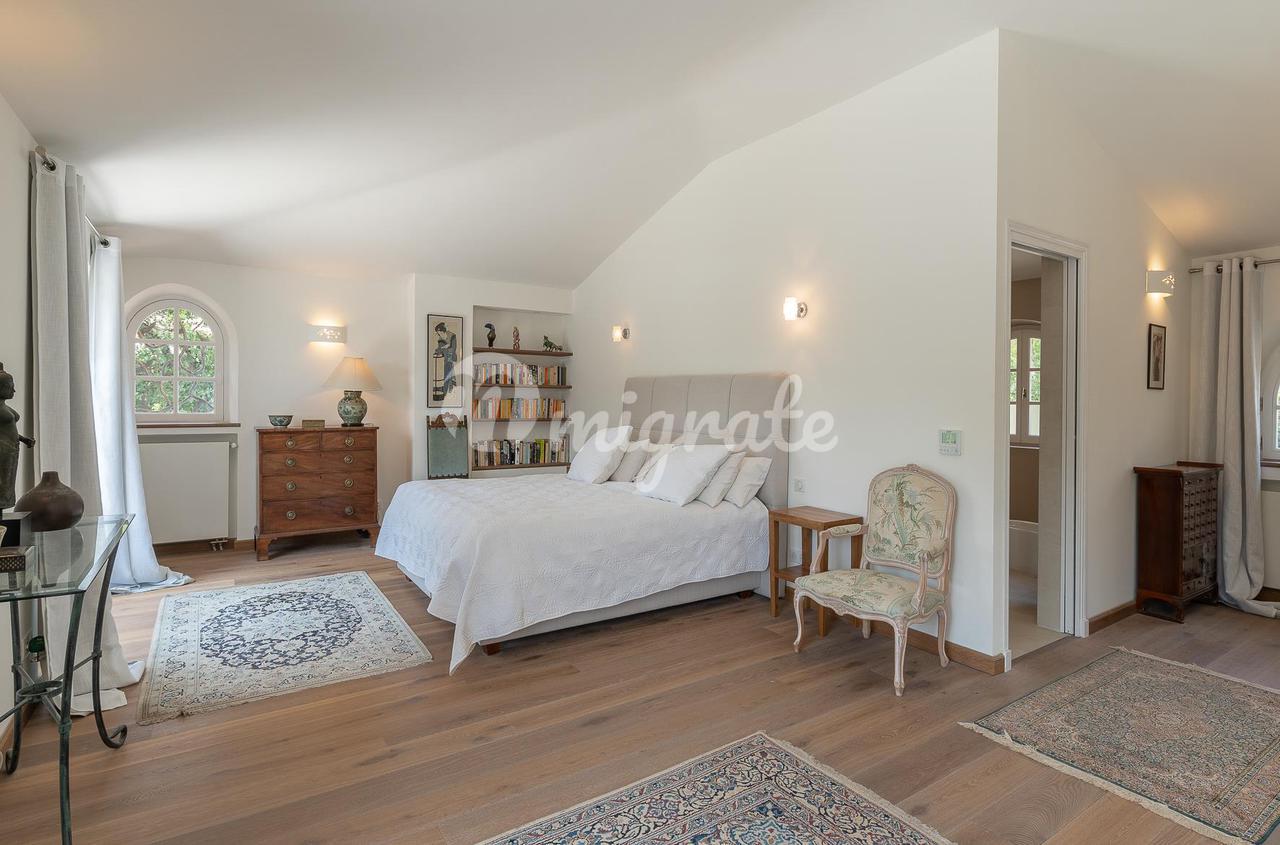 Расположенный в саду площадью около 4500 кв. м с несколькими красивыми террасами, площадкой для барбекю, ландшафтными газонами и оливковой рощей. В саду вы также найдете бассейн (12 х 6 м) с глубокой частью и игровой площадкой, площадкой для настольного тенниса и площадкой для игры в петанк.
