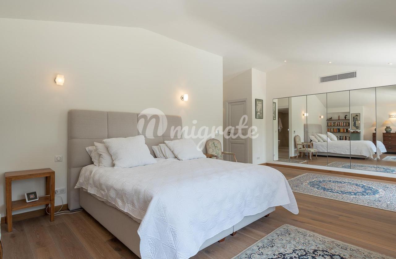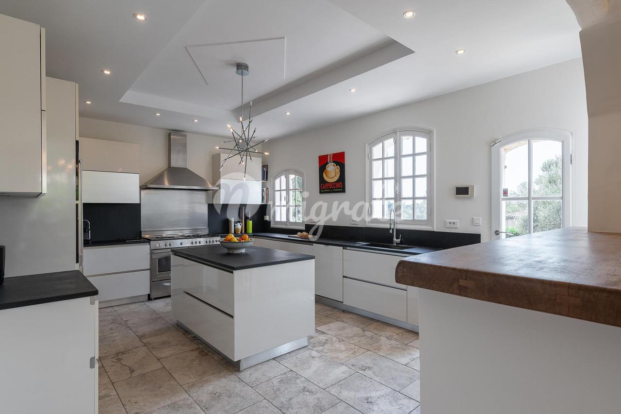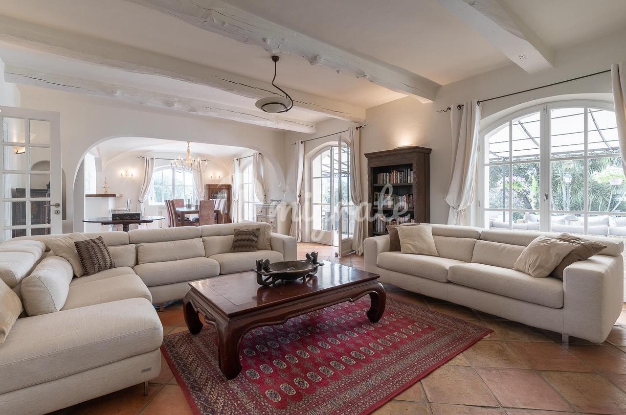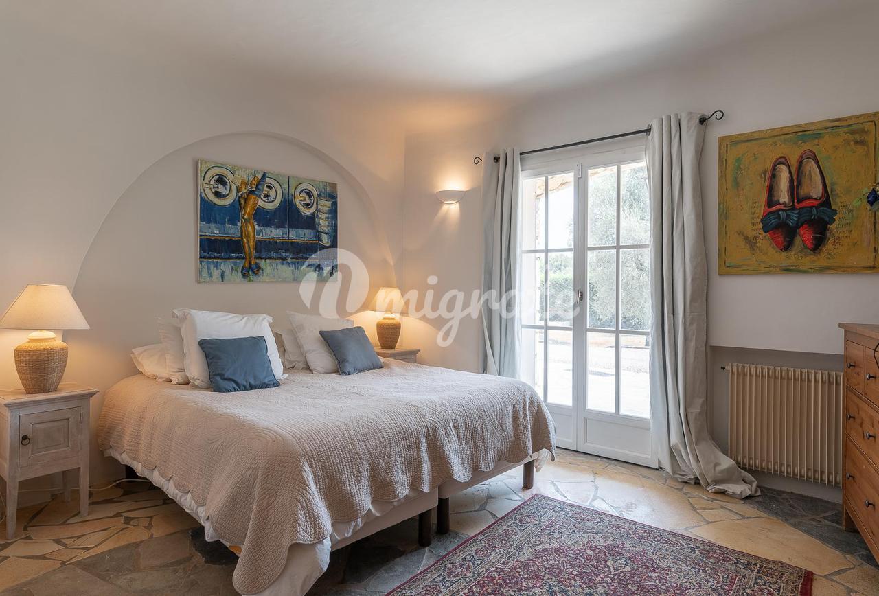 Расположенный в саду площадью около 4500 кв. м с несколькими красивыми террасами, площадкой для барбекю, ландшафтными газонами и оливковой рощей. В саду вы также найдете бассейн (12 х 6 м) с глубокой частью и игровой площадкой, площадкой для настольного тенниса и площадкой для игры в петанк.