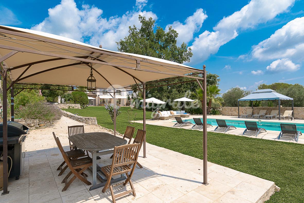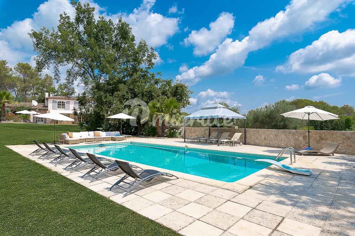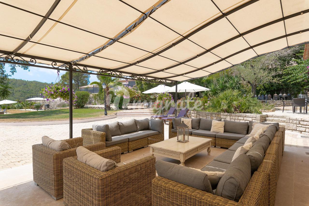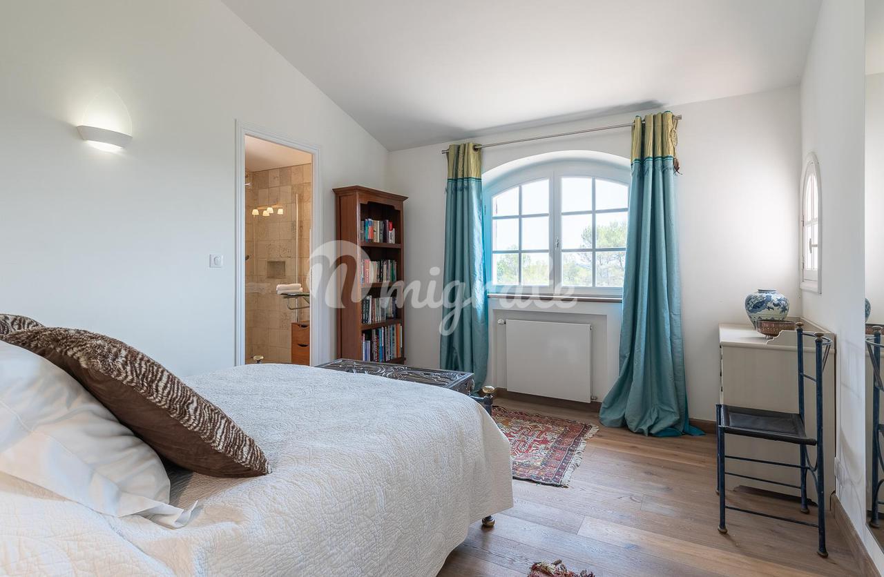 Расположенный в саду площадью около 4500 кв. м с несколькими красивыми террасами, площадкой для барбекю, ландшафтными газонами и оливковой рощей. В саду вы также найдете бассейн (12 х 6 м) с глубокой частью и игровой площадкой, площадкой для настольного тенниса и площадкой для игры в петанк.