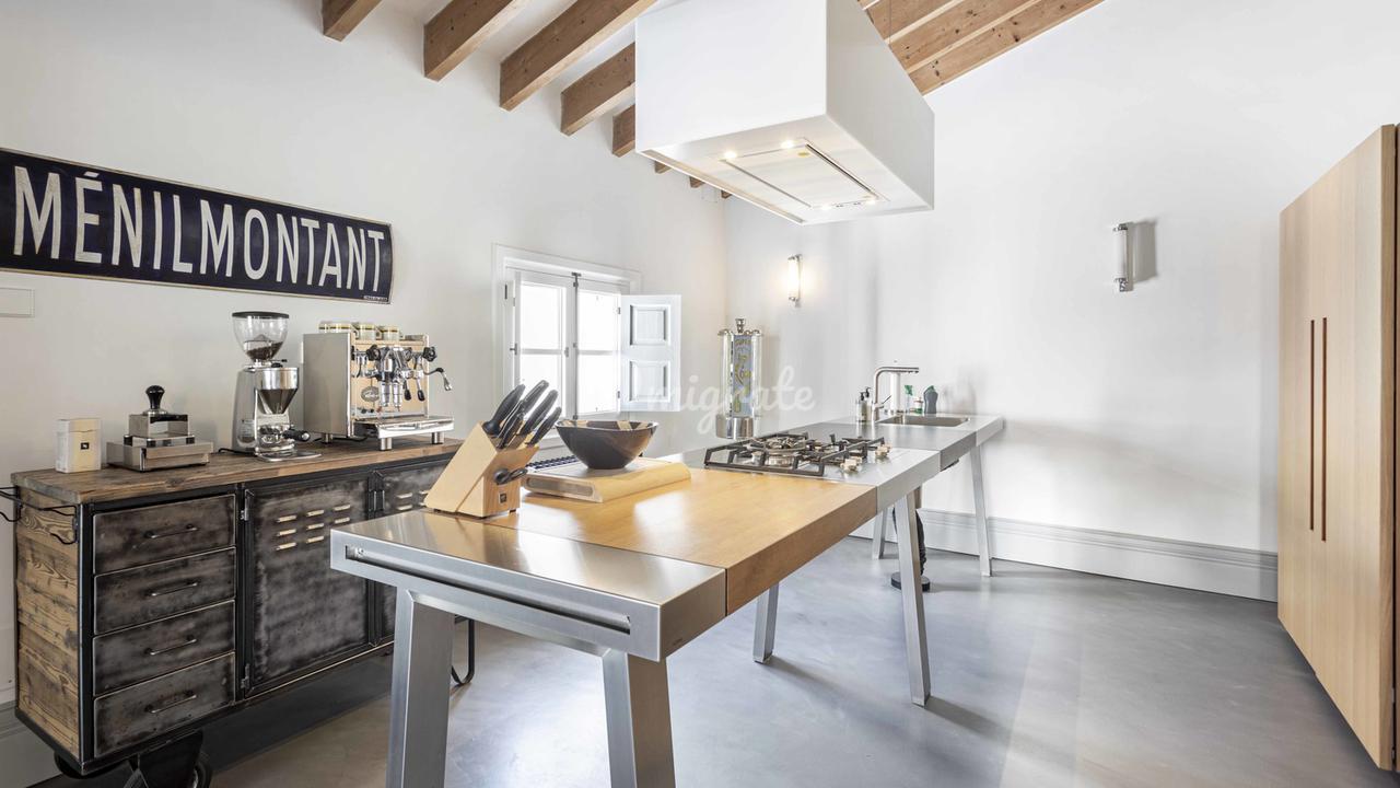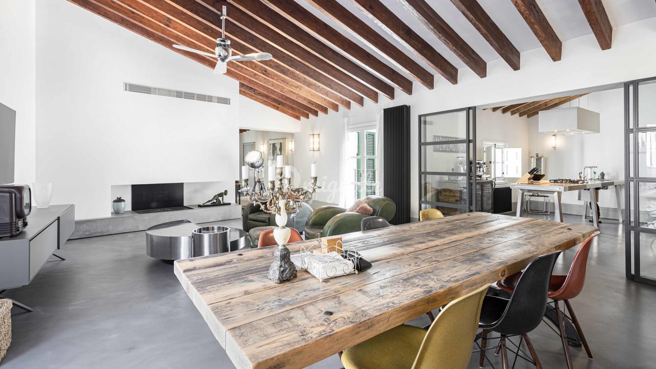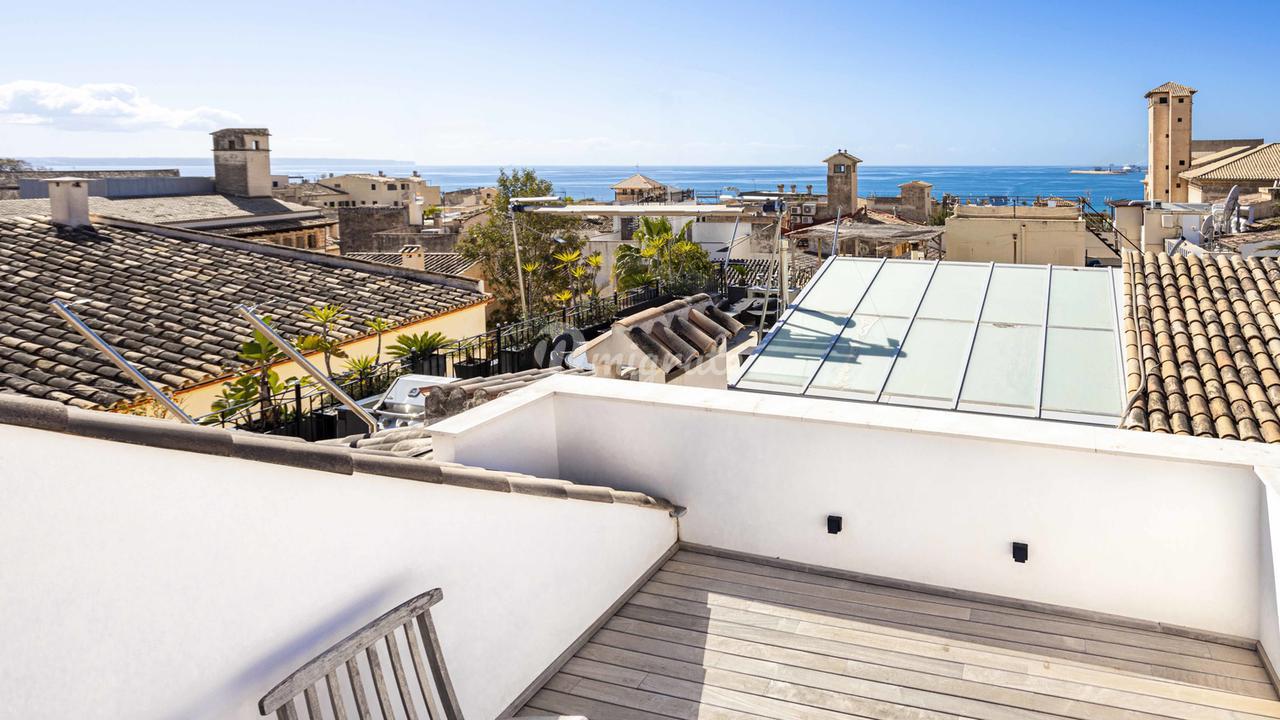 Два пентхауса были объединены, чтобы сформировать этот новый пентхаус в стиле винтаж-поп-арт, все на одном уровне, с высокими потолками, большим количеством естественного света и красивыми открытыми деревянными балками. Прихожая ведет в просторную гостиную с камином и обеденной зоной двойной высоты. Напротив столовой находится просторная кухня Bulthaup. После обеденной зоны находится терраса, с которой по внутренней лестнице можно подняться на первую террасу-солярий, откуда открывается панорамный вид на кафедральный собор Пальмы и море. Мы переходим от гостиной двойной высоты к спальням, а перед ней находится подсобное помещение с машинным отделением и еще одна комната, которая в настоящее время используется как комната развлечений, которая может быть преобразована в четвертую спальню. Мы попадаем в просторную главную спальню с большой ванной комнатой. Затем мы переходим во вторую небольшую гостиную с телевизором для гостей, с двумя гостевыми спальнями и полностью оборудованной ванной комнатой. Из этой второй гостиной мы выходим на вторую террасу на крыше. На данный момент строится лифт на большой лестничной клетке, который в настоящее время находится в стадии реализации. На уровне улицы находится большой гараж. Оба варианта являются редкостью из-за расположения объекта и, следовательно, двумя очень ценными дополнениями, поскольку этот исключительный пентхаус находится в центре старого города.