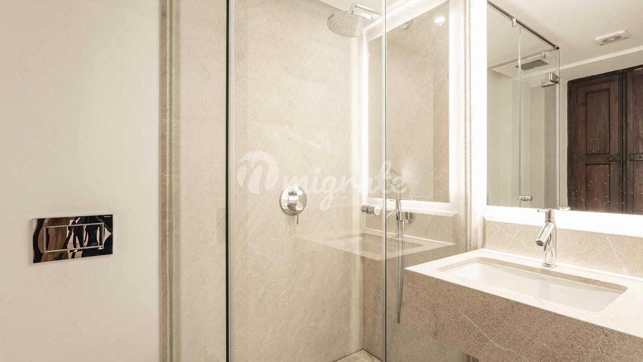 Когда вы входите в квартиру, первое, что вы замечаете, это очень высокие потолки. Очень большие окна пропускают свет и создают реальное ощущение пространства и объема. Красивые оригинальные столярные изделия также вызывают восхищение. На уровне входа вы найдете большую гостиную, соединенную раздвижной дверью со столовой. Также есть кухня с прачечной и гостевой туалет. В задней части квартиры находится спальня с двуспальной кроватью, гардеробной и ванной комнатой.