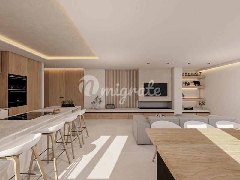 Чистая жилая площадь 226 м2 распределена по 2 этажам с частным гаражом внизу.