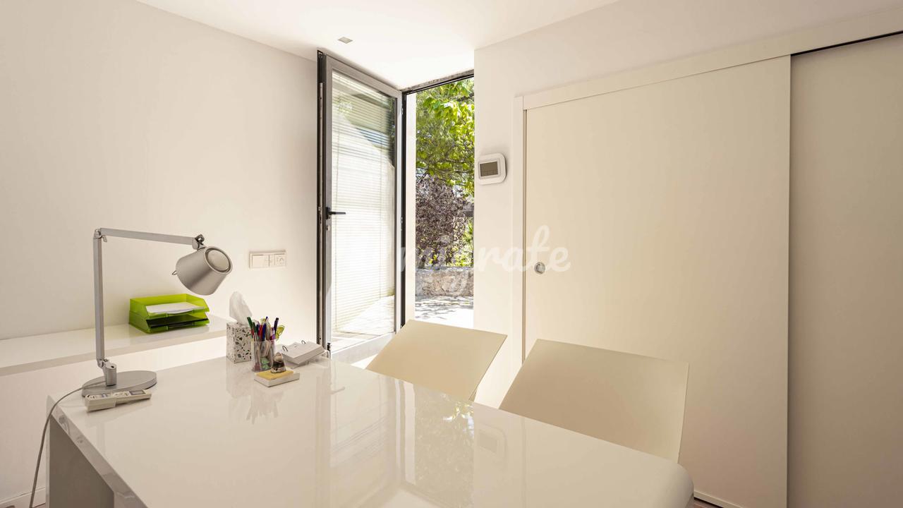 Первый этаж: красивая беседка и терраса с мощеным полом ведут к главному входу, где мы находим большое открытое пространство, гостиную, столовую и читальный зал. В конце находится кухня, а в другом конце находится главная спальня с гардеробной, большой ванной комнатой и выходом на террасу и в сад с бассейном. Второй этаж: 3 гостевые спальни, все с ванными комнатами и очень просторная игровая комната с выходом на верхнюю террасу, откуда открывается частичный вид на море.