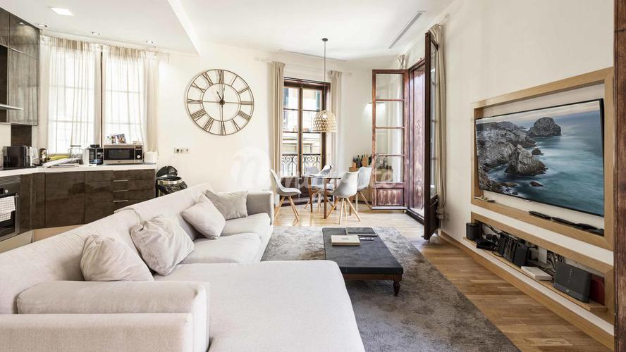 Чистая жилая площадь 150 м2 распределяется на холл, большую гостиную, выходящую в столовую, два больших окна на Пасео де Майорка, полностью оборудованную кухню, которая дает доступ к прачечной, туалету.