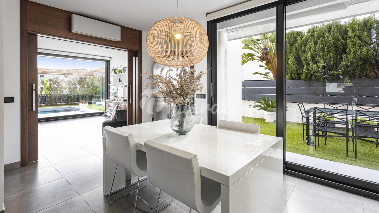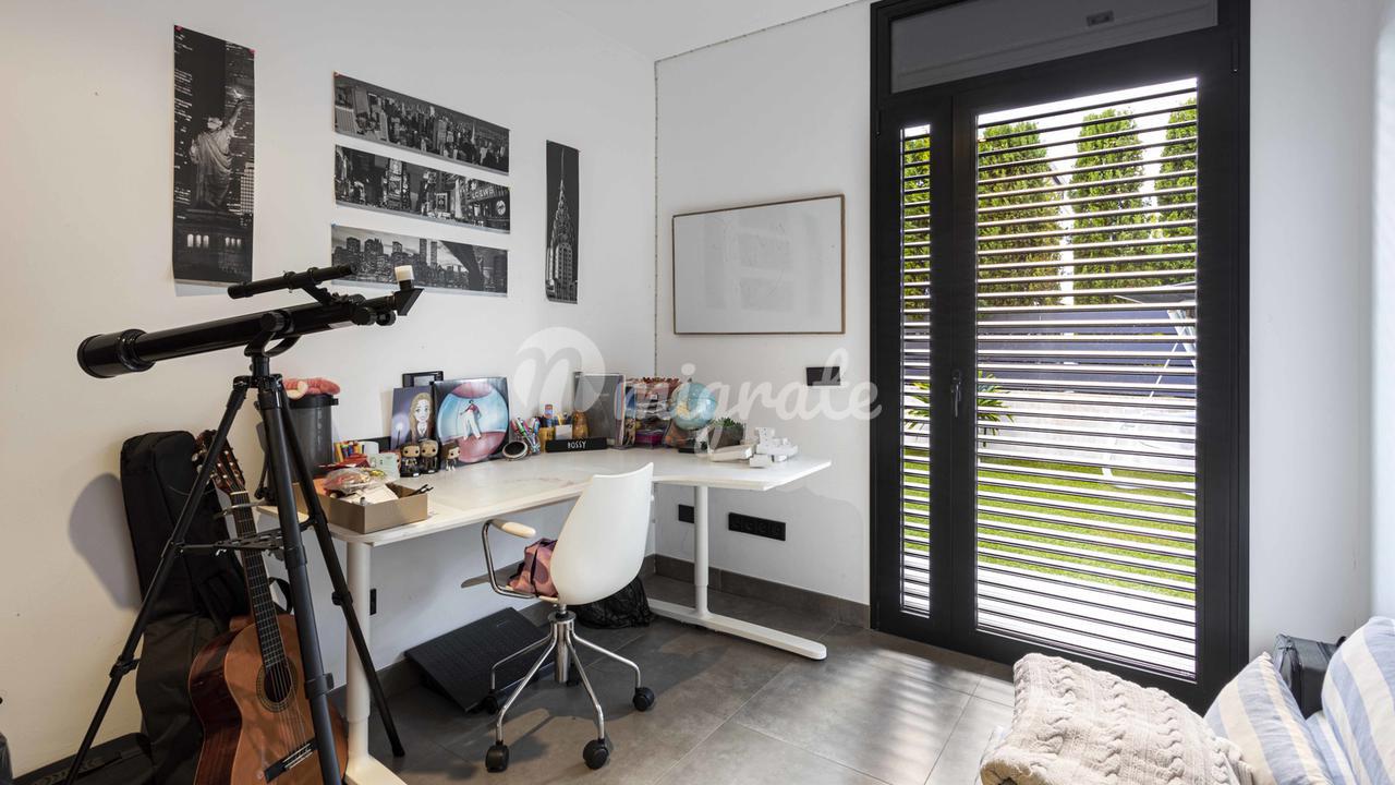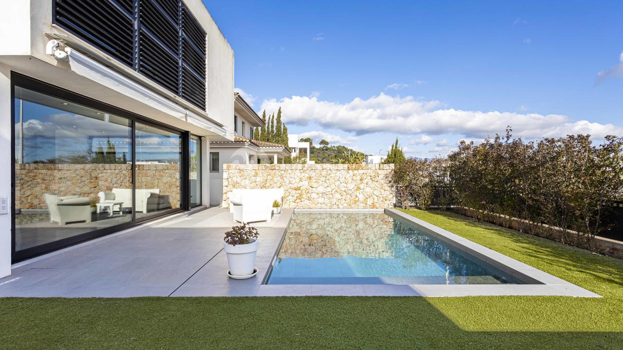 Чистая жилая площадь 361 м2 плюс террасы распределены по 3 этажам. Первый этаж: прихожая с потолками двойной высоты, которая ведет в открытую гостиную в стиле лофт с обеденной зоной, кухню открытой планировки с кухонным островом, гостевую гардеробную и большую гостевую спальню со встроенными шкафами. Все зоны соединены с террасой, ведущей в сад и к бассейну, что идеально подходит для развлечения семьи и друзей. Второй этаж: открытая лестница, ведущая к 2 гостевым спальням с одной ванной комнатой. Главная спальня с большой полуоткрытой гардеробной, ванная комната с джакузи и отдельным душем-водопадом. Цокольный этаж: большой гараж с местом для хранения и подходит для двух больших автомобилей, машинного отделения и большой прачечной. Недвижимость находится в саду с низким уровнем обслуживания, с искусственным газоном и красивым бассейном с хлорированной солью. С точки зрения местоположения, Son Puig - это район рядом с Son Vida с известной международной школой под названием Green Valley. До центра города можно добраться за 10 минут на машине, до 3 полей для гольфа - за 5 минут на машине.