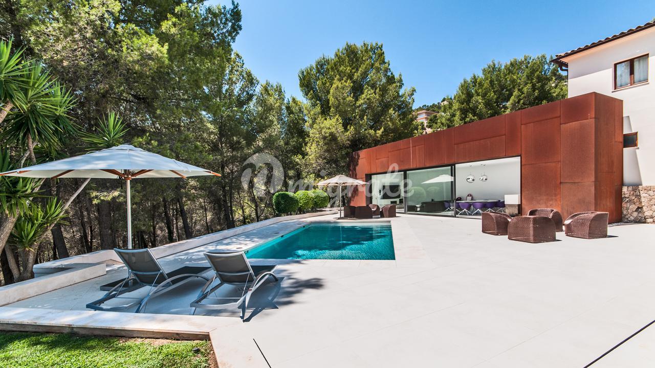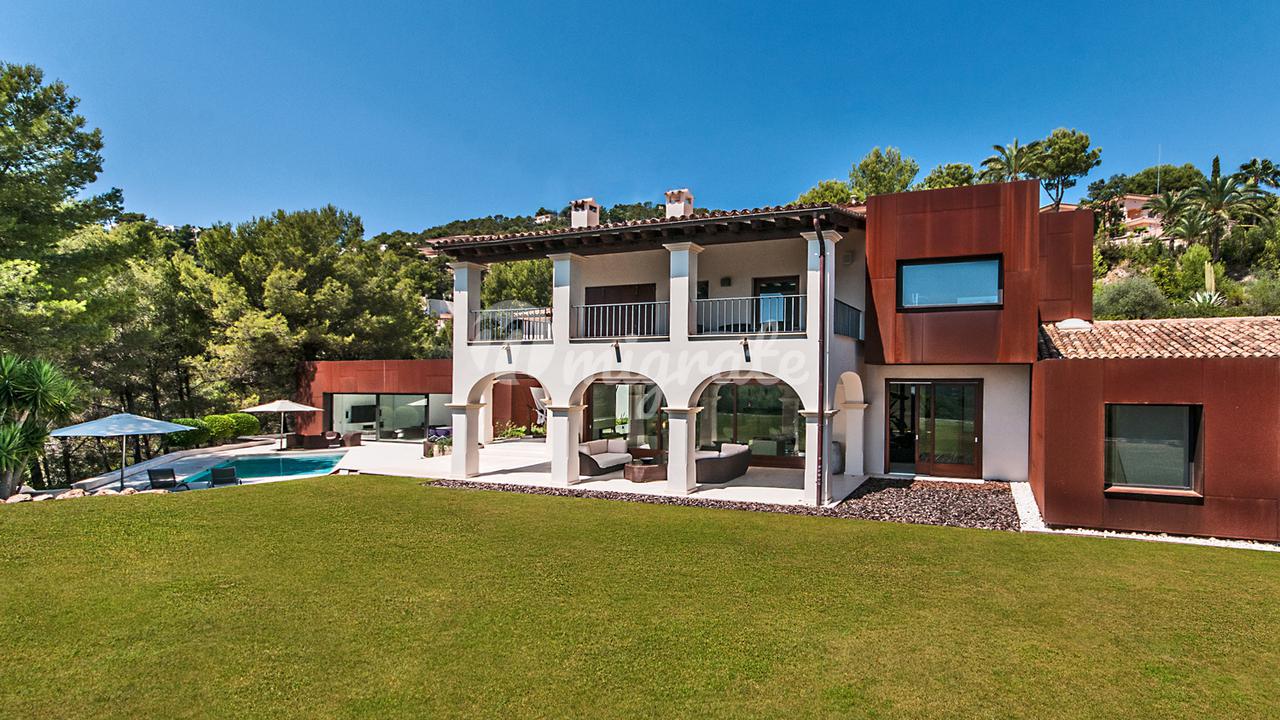 Вилла расположена на самом большом участке в Сон Вида. Приглашение открытые и крытые террасы с бассейном и фантастическим видом на залив Пальмы.