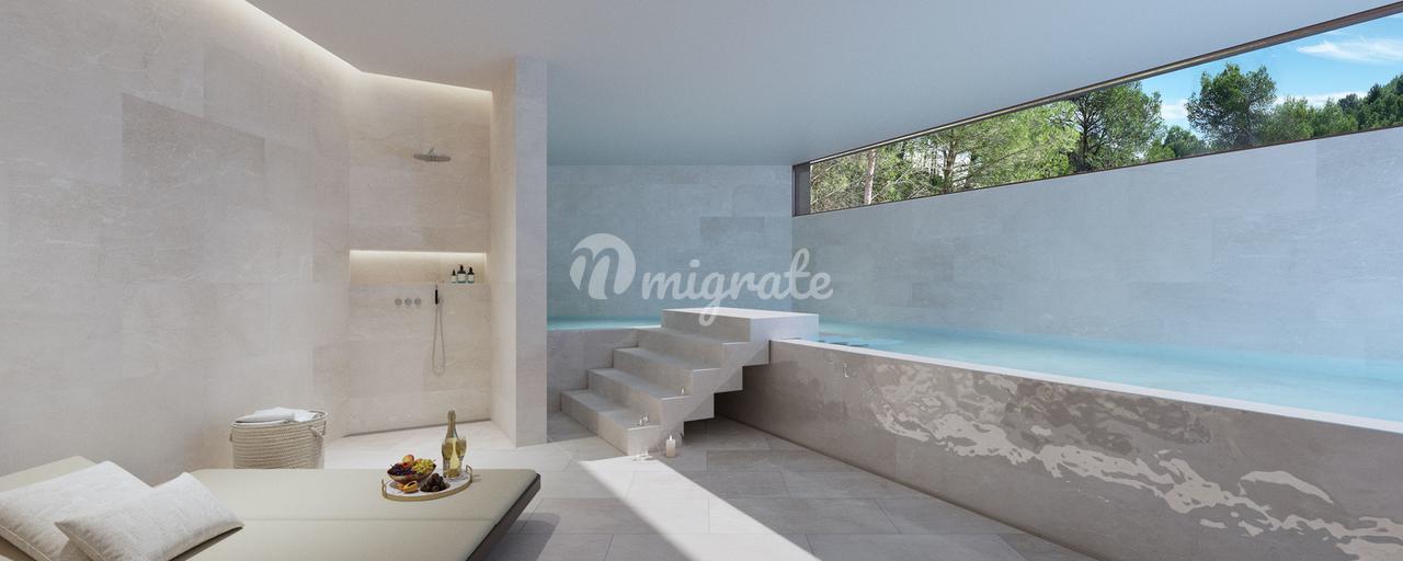 Спа-центр с крытым бассейном, ванной комнатой и зоной отдыха расположен на нижнем этаже. Тренажерный зал является дополнительным помещением.