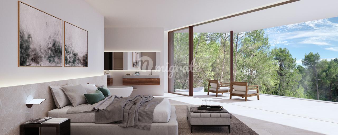 На спальном уровне расположены 4 спальни, 2 ванные комнаты и винный погреб. На первом этаже находится главная спальня с ванной комнатой, гардеробной и сауной, занимающей весь уровень.