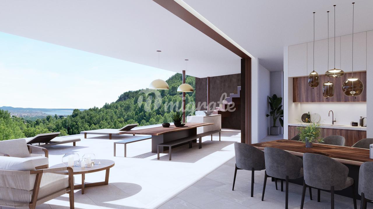 Холл с баром и гостевой туалет расположены на уровне входа. На жилом уровне находится гостиная-столовая, открытая роскошная кухня, гостевой туалет и крытая терраса.