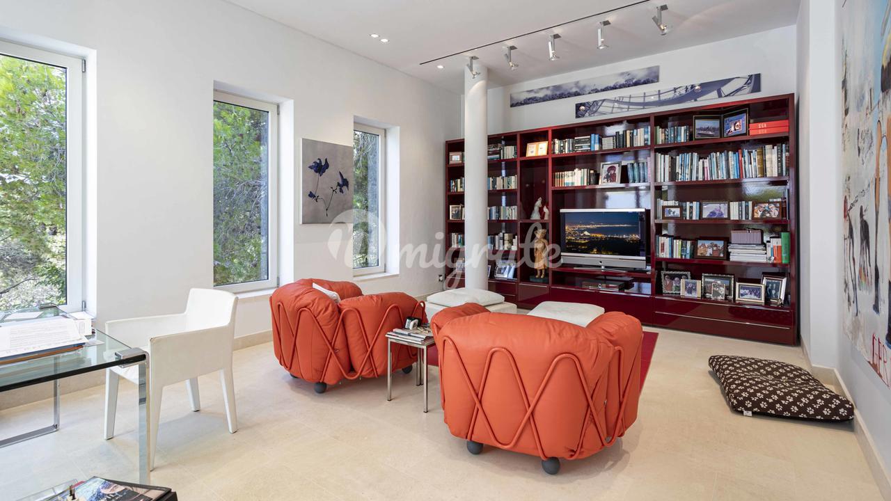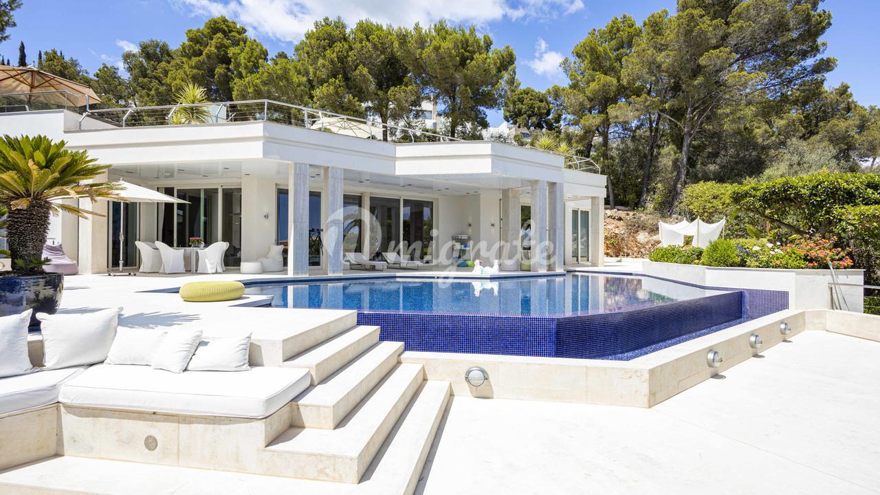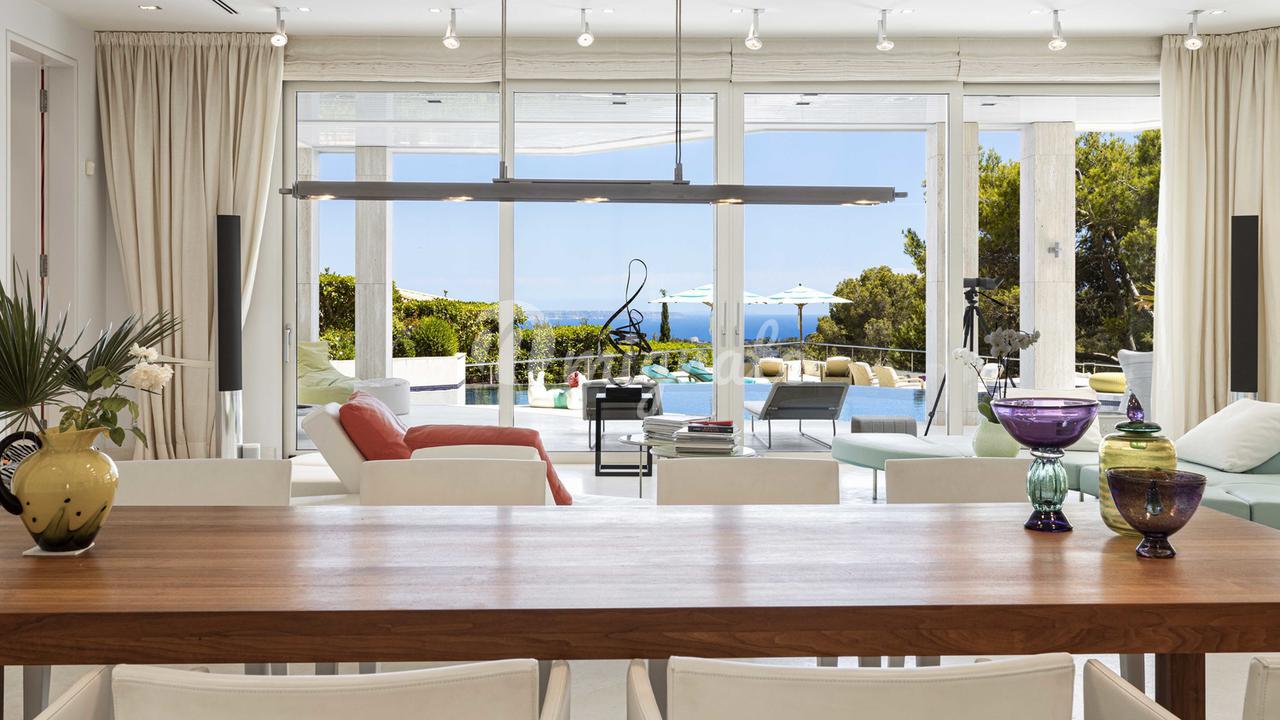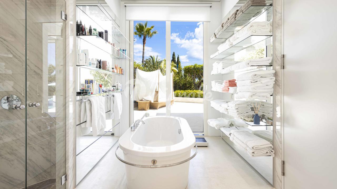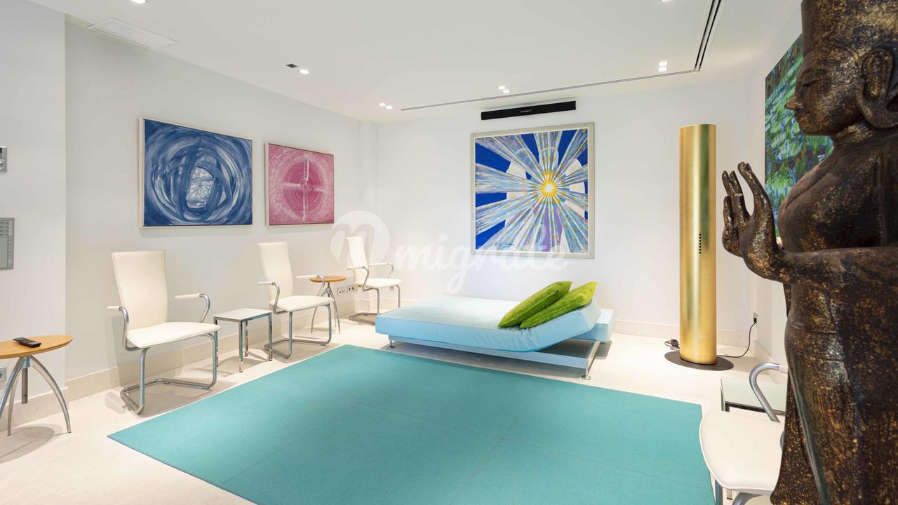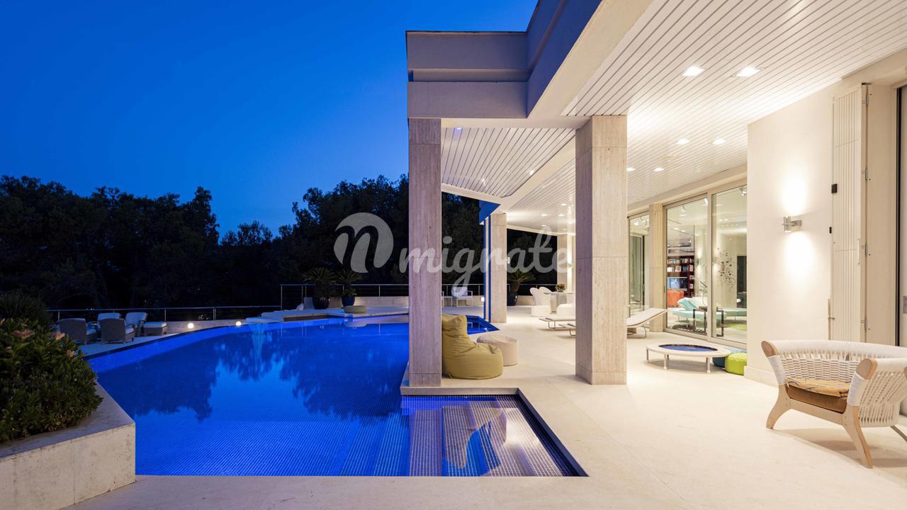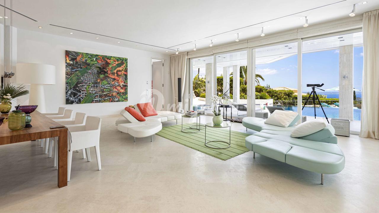 Первый этаж: большая прихожая с двойным потолком, большая открытая лестница, комната для медитации + открытая терраса, отдельное офисное помещение, гостевой туалет, отдельные помещения для персонала, гостиная, кухня, спальня с ванной комнатой. Первый этаж: большой открытый чердак для гостиной-столовой, уголок с телевизором и библиотекой, закрытая кухня с техникой немецкого бренда, главная спальня с ванной комнатой и большая гардеробная. Кроме того, 3 гостевые спальни с ванными комнатами. Этот уровень имеет большой открытый бассейн с морской водой и различные просторные террасы для загара и отдыха, все с захватывающим видом на море и залив Пальмы.