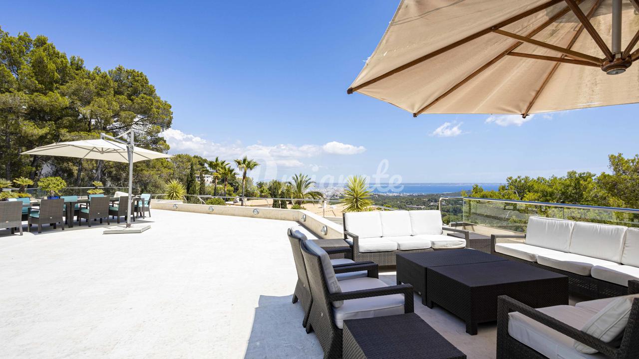 Солярий: с внешней лестницей или лифтом, который ведет на огромную террасу на крыше с летней кухней, прекрасное место для развлечения или просто наслаждения широким видом на море в сторону залива Пальмы.