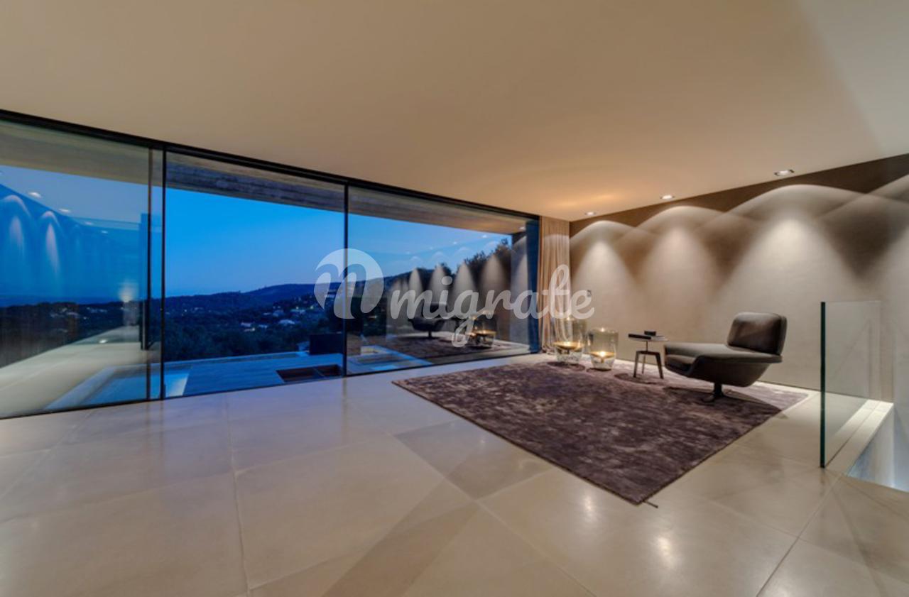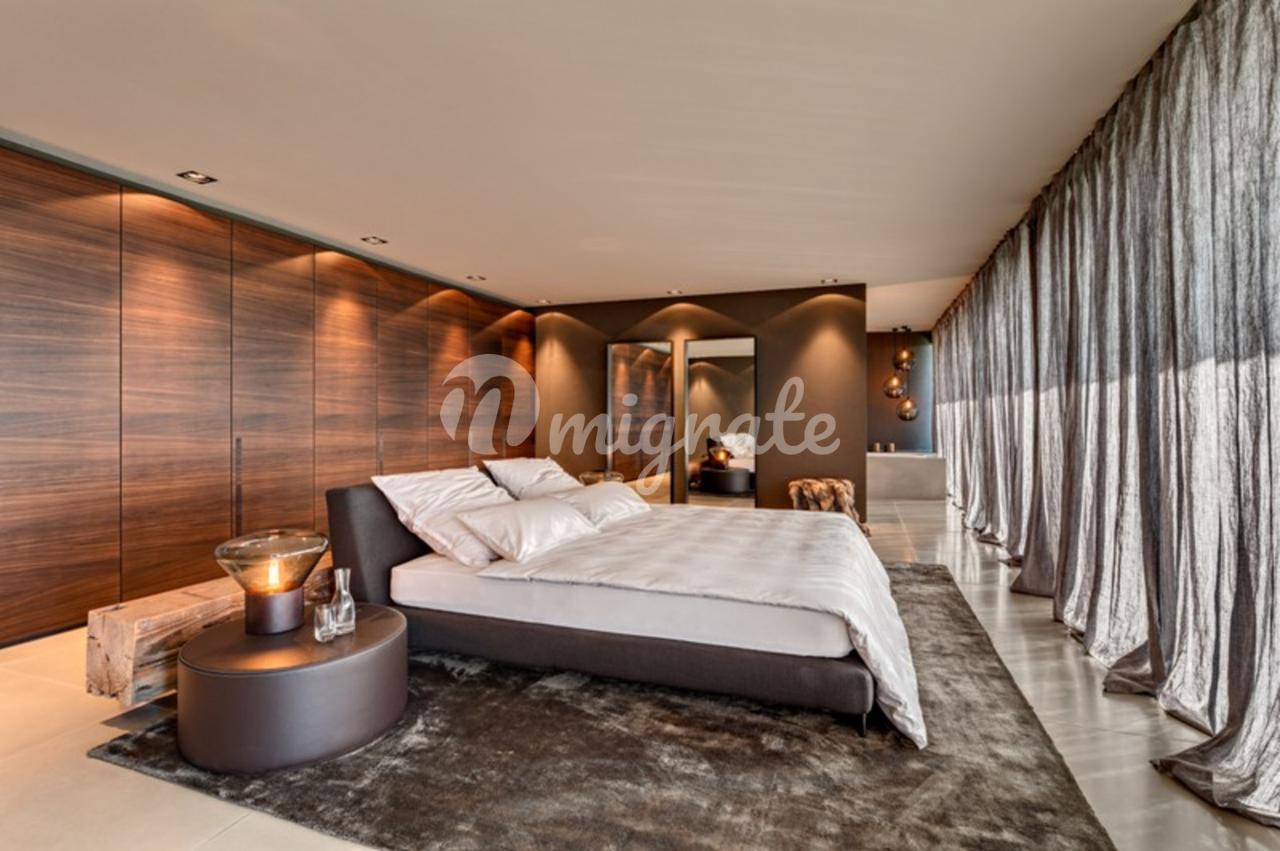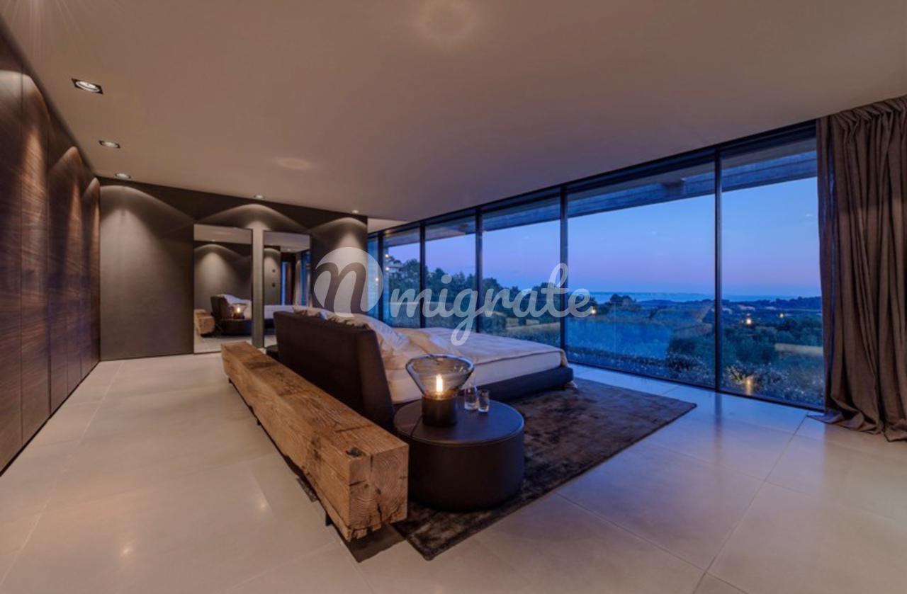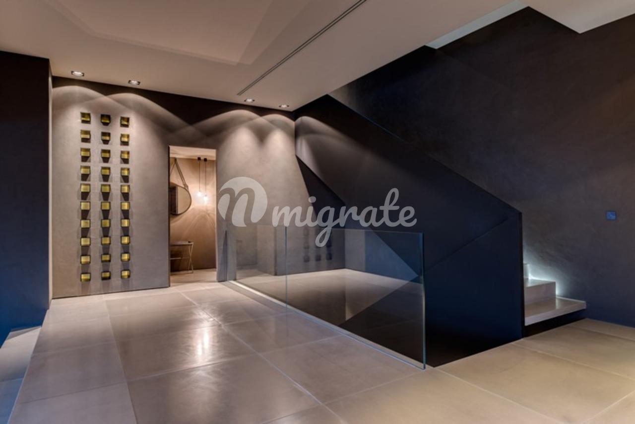 Цокольный этаж 1: Светлая гостиная с камином, полностью оборудованная дизайнерская кухня открытого плана с обеденной зоной, гостевая гардеробная. Терраса с видом на море и бассейн. Подвал 2: 3 спальни с ванными комнатами. Большой оздоровительный центр с сауной, джакузи, турецкой баней, фитнес-центром, ванной комнатой. Хозяйственные и технические помещения.