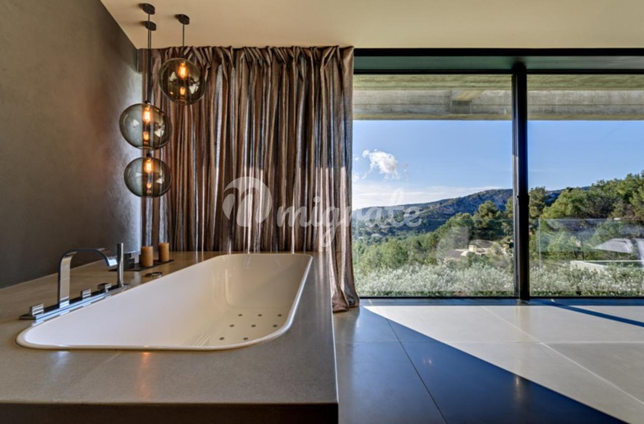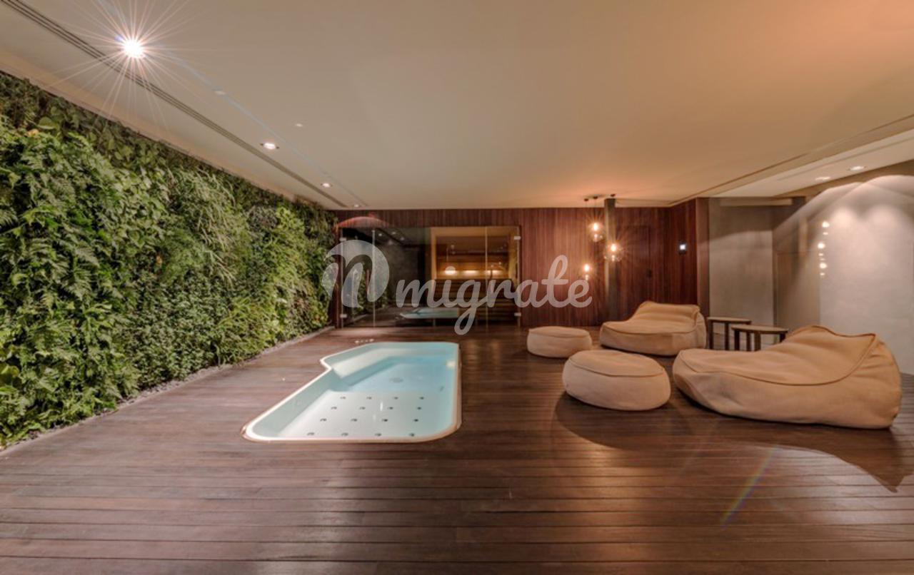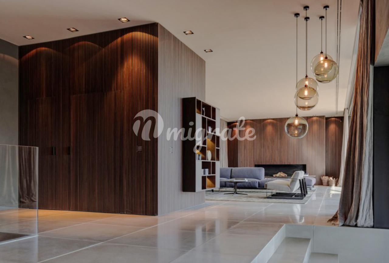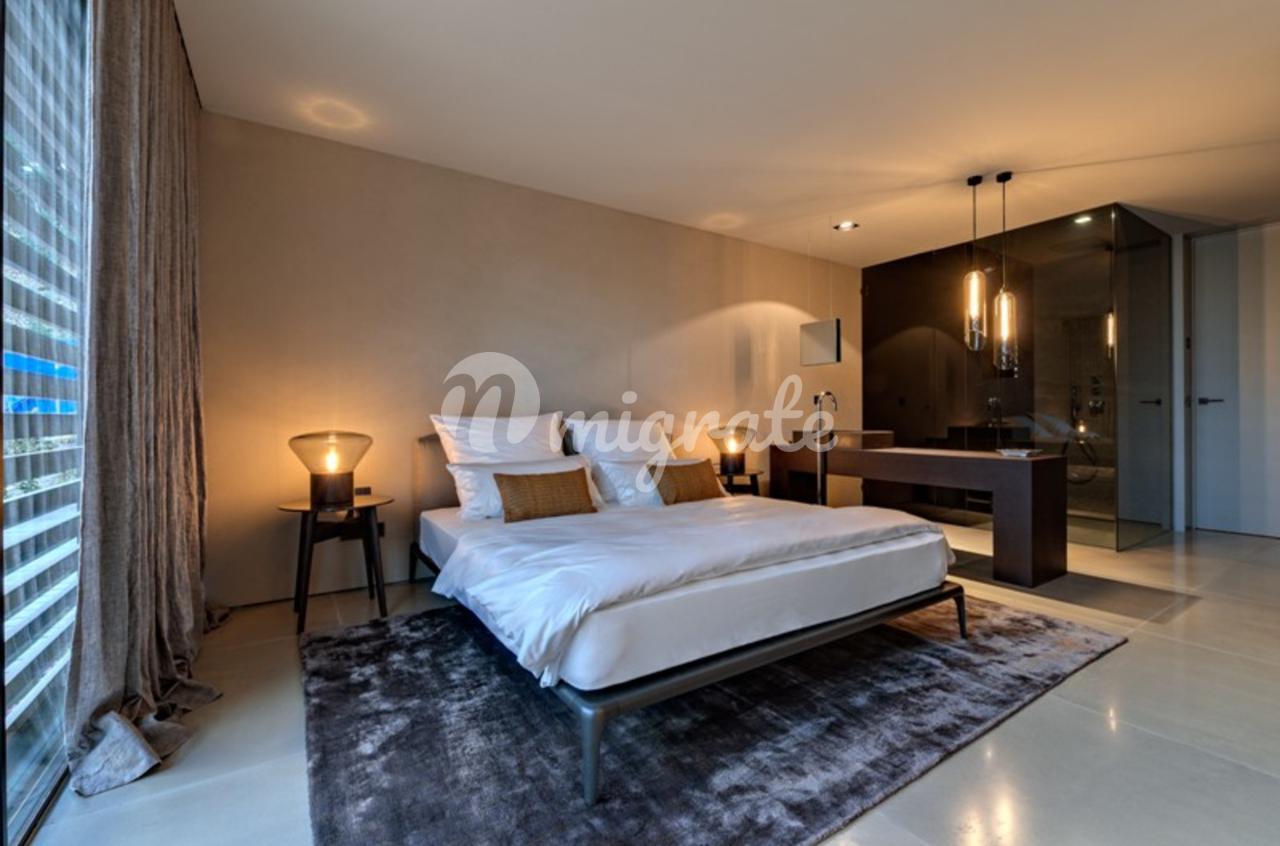 Цокольный этаж 1: Светлая гостиная с камином, полностью оборудованная дизайнерская кухня открытого плана с обеденной зоной, гостевая гардеробная. Терраса с видом на море и бассейн. Подвал 2: 3 спальни с ванными комнатами. Большой оздоровительный центр с сауной, джакузи, турецкой баней, фитнес-центром, ванной комнатой. Хозяйственные и технические помещения.