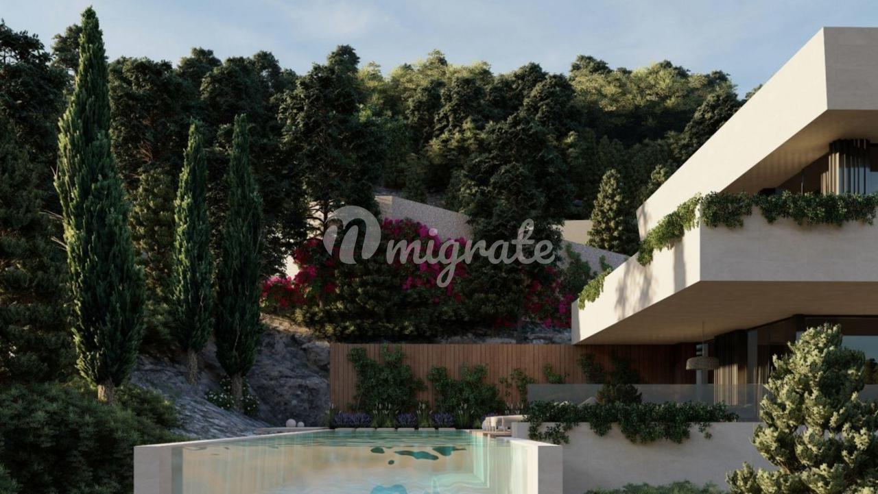 На этом участке площадью 2017 м2 есть предварительный проект виллы с жилой площадью 664 м2, плюс террасы площадью 379 м2 и бассейн площадью 78 м2.