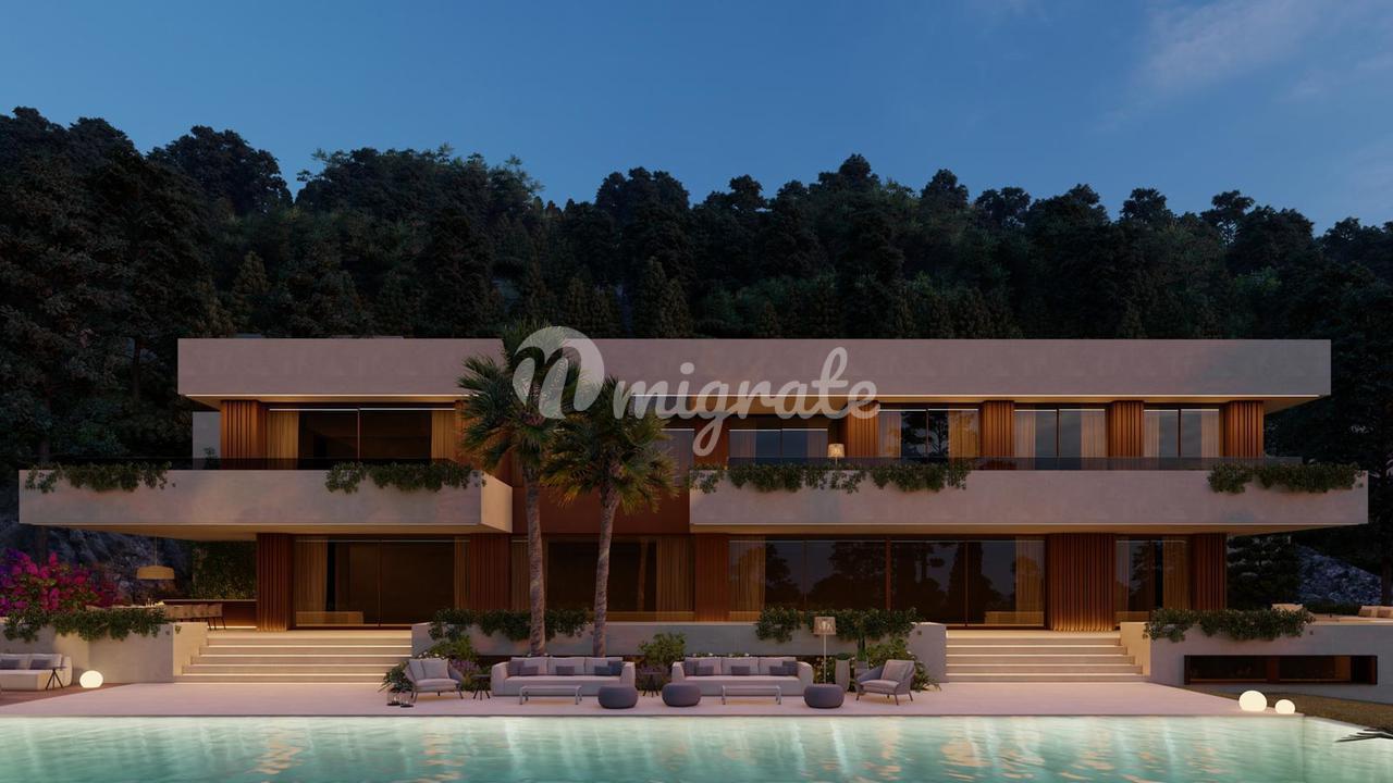 Для этого участка площадью 2452 м2 есть предварительный проект виллы с жилой площадью 664 м2, плюс террасы площадью 427 м2 и бассейн площадью 118 м2.