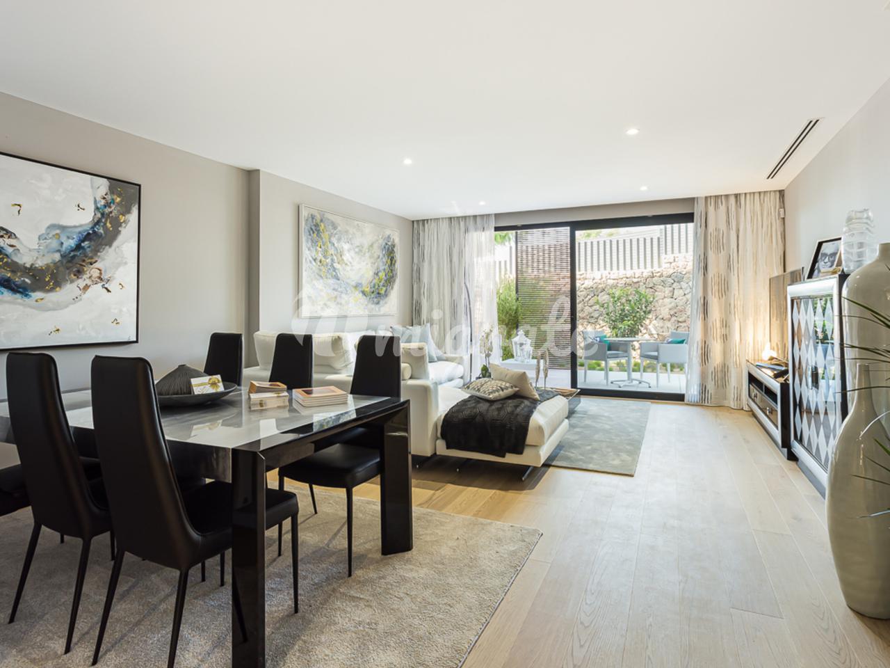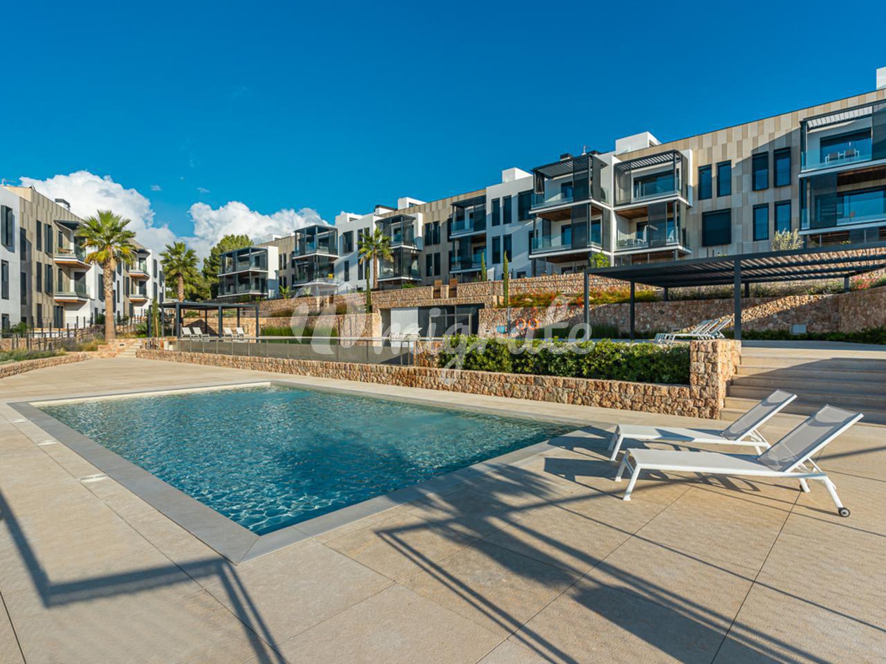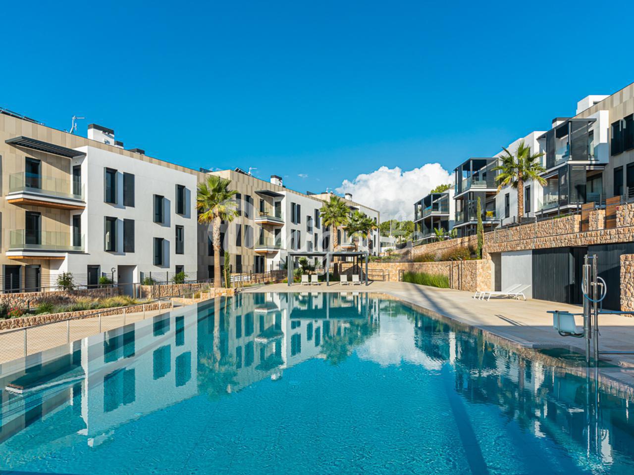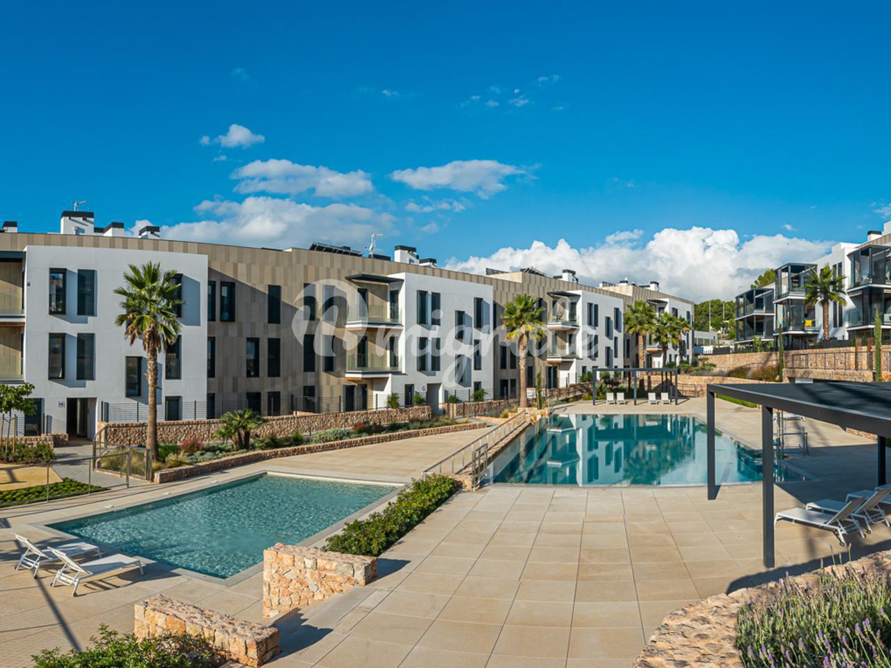 Резиденция Muntaner расположена всего в нескольких минутах езды от центра Пальмы и находится в непосредственной близости от трех полей для гольфа и нескольких школ - идеальное место для любителей гольфа и семей. Квартира отличается современной архитектурой в сочетании с высочайшим качеством строительства, энергоэффективностью и звукоизоляцией. Эта красивая квартира с жилой площадью 128 м2 продается без мебели и предлагает три спальни и две ванные комнаты, встроенные шкафы и современную, полностью оборудованную кухню с техникой марки NEFF. Терраса простирается на ок. 16 м2.