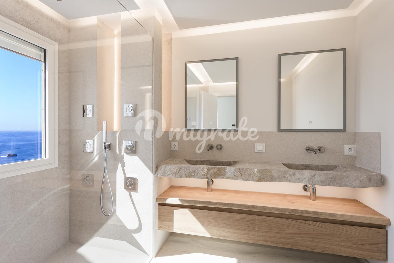 Эта просторная и светлая квартира имеет следующую планировку: просторная гостиная и столовая с полностью оборудованной кухней, которая ведет в гостиную и на террасу, откуда открывается захватывающий 360-градусный панорамный вид на побережье, пристань для яхт, горы. , и море. Просторная главная спальня с гардеробной и еще 3 спальни, каждая со своей ванной комнатой. Квартира оборудована по очень высоким стандартам, полы с подогревом, полы из натурального камня и дерева, кондиционер, домотик-система, стеклопакеты, качественная кухонная техника, гараж на 4 машины.