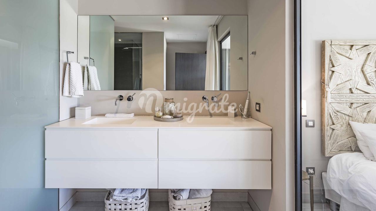 Ориентация на солнце: на южную сторону Жилая площадь 200 м2 распределена по 1 этажу и разделена следующим образом: Прихожая, светлая и просторная гостиная и столовая с камином, кухня, гостевой туалет, просторная главная спальня с гардеробной и ванной комнатой, еще 3 спальни (две ванные комнаты, одна отдельная ванная), очень большая терраса с потрясающим видом на море. Посмотреть. Хорошие строительные материалы и оборудование, кондиционер горячий/холодный, окна с двойным остеклением, электрические жалюзи, гараж на 2 машины и большая кладовая. Общественный сад с большим бассейном. Эта современная роскошная квартира расположена в тихом жилом комплексе в нескольких минутах ходьбы от пляжа и всех удобств. Сан-Августин — идеальный район для тех, кто хочет быть рядом с международными школами, полем для гольфа, пристанью для яхт и центром Пальмы.