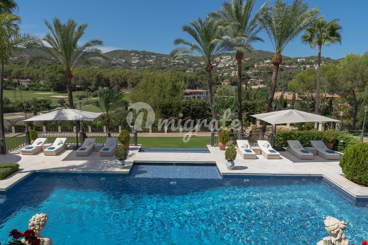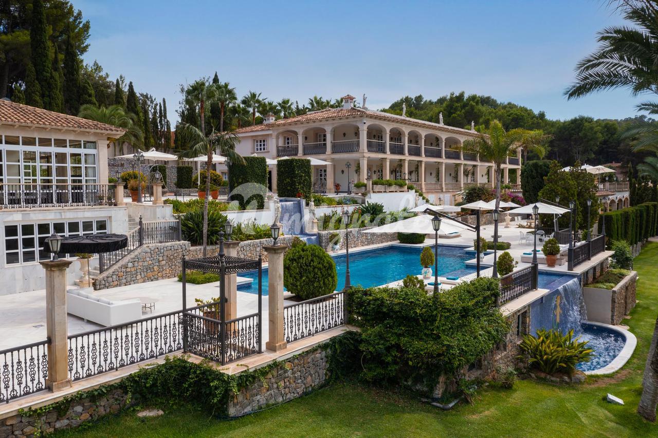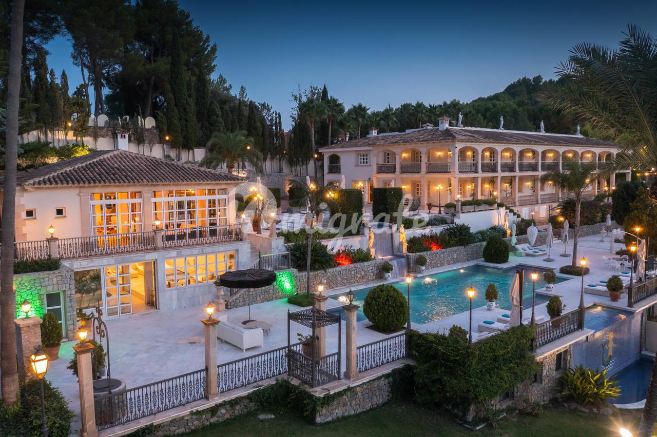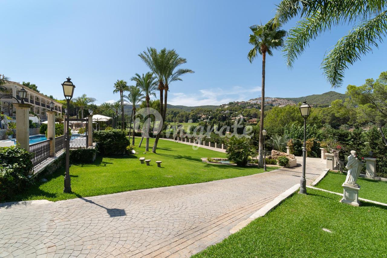 Он также имеет освещенный теннисный корт в очень хорошем состоянии. Есть два гаража, один на три машины, другой на две и возможность парковки еще 10 автомобилей при необходимости внутри собственности. Наиболее впечатляющими являются открытые площадки, как с террас первого этажа, так и с террасы у бассейна открывается панорамный вид на поле для гольфа Son Vida и ландшафтную часть с водопадом, фонтанами, лужайкой, пальмами и фруктовыми деревьями. придайте этому великолепному имению вид парка, а не частного сада.