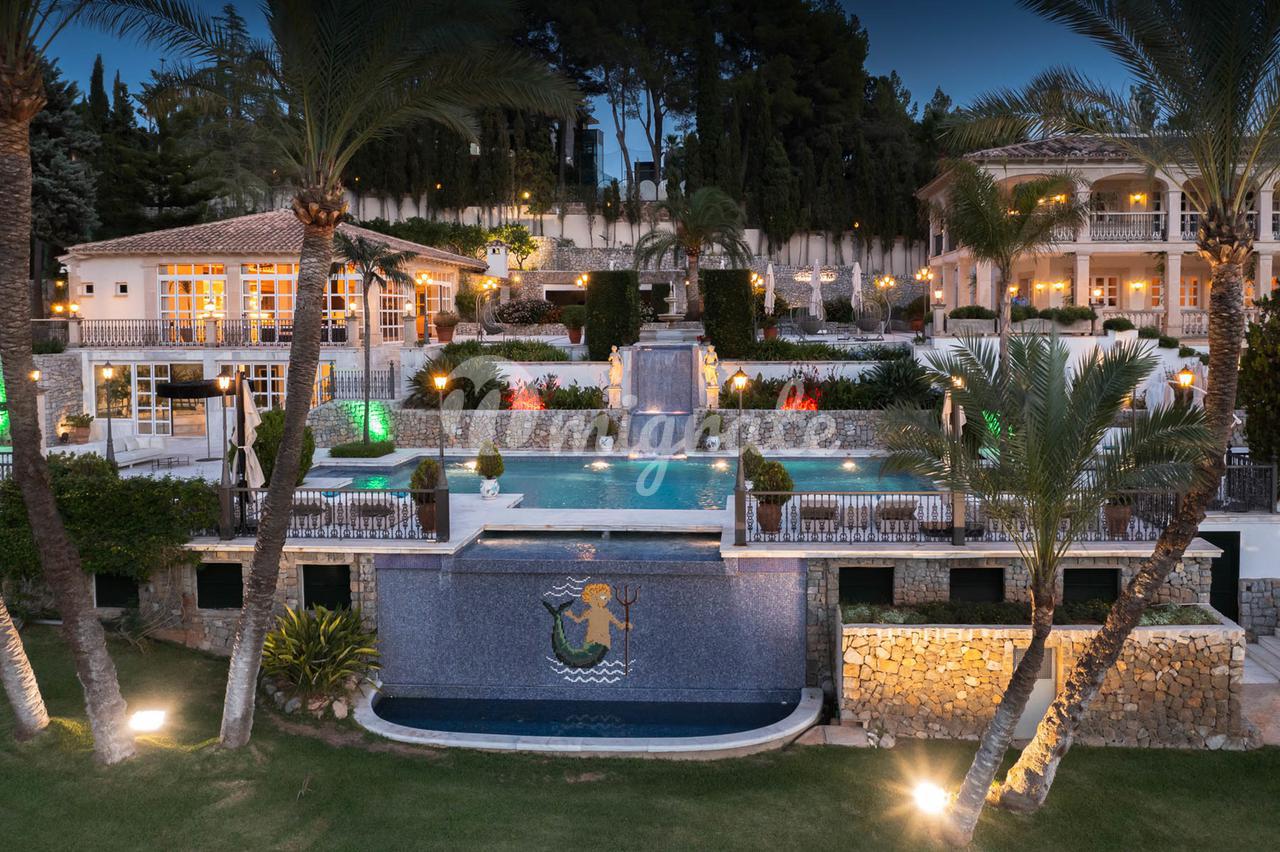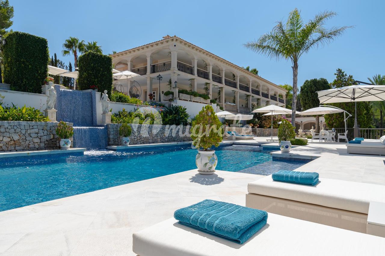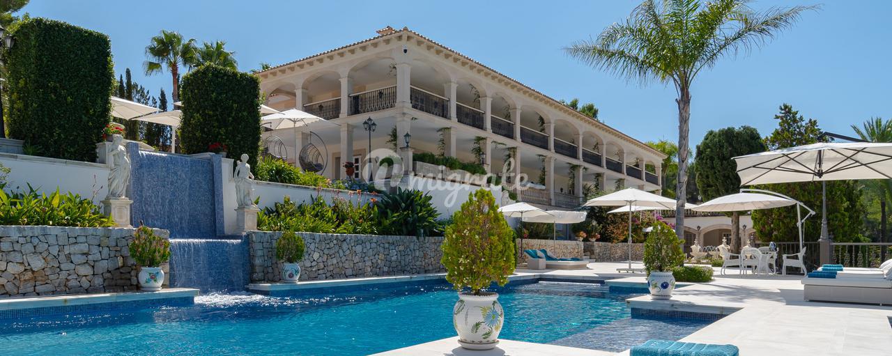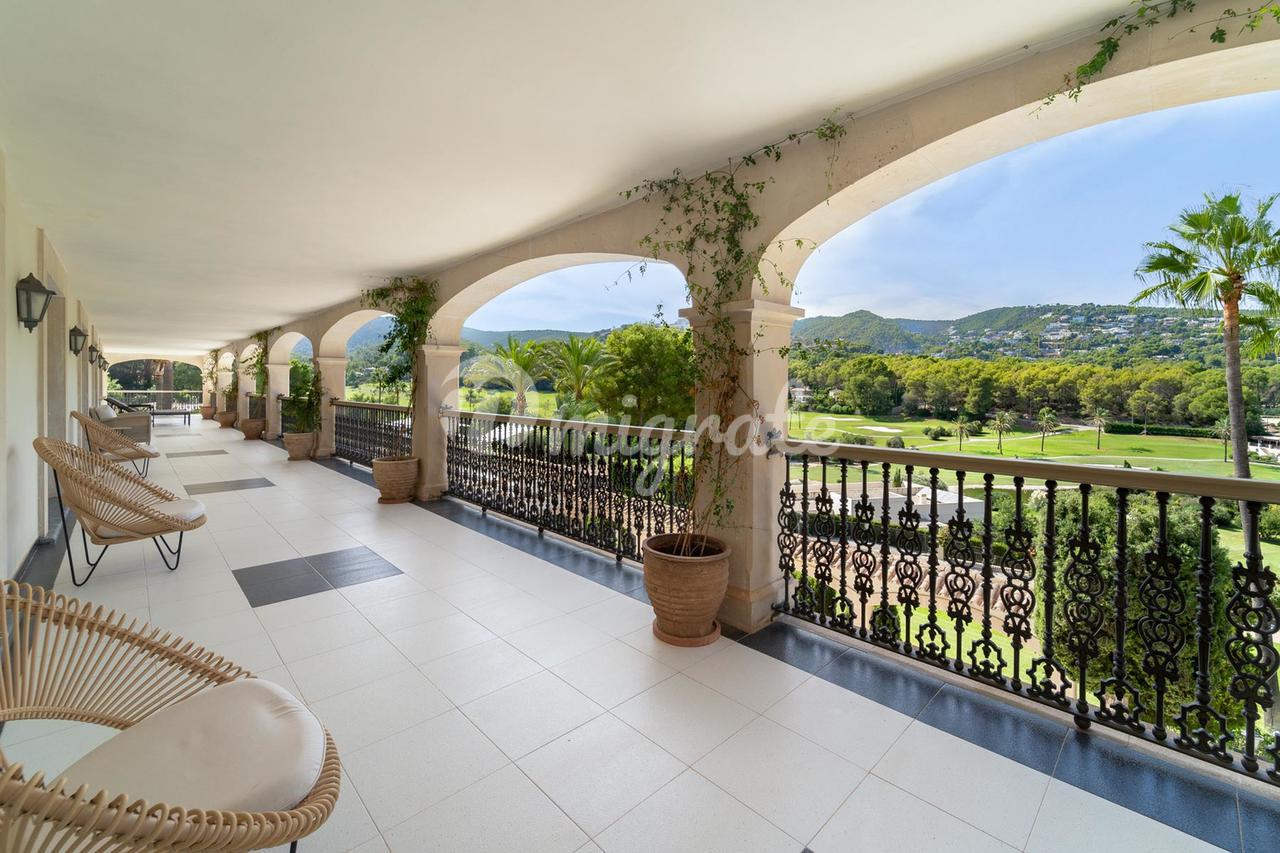 Он также имеет освещенный теннисный корт в очень хорошем состоянии. Есть два гаража, один на три машины, другой на две и возможность парковки еще 10 автомобилей при необходимости внутри собственности. Наиболее впечатляющими являются открытые площадки, как с террас первого этажа, так и с террасы у бассейна открывается панорамный вид на поле для гольфа Son Vida и ландшафтную часть с водопадом, фонтанами, лужайкой, пальмами и фруктовыми деревьями. придайте этому великолепному имению вид парка, а не частного сада.