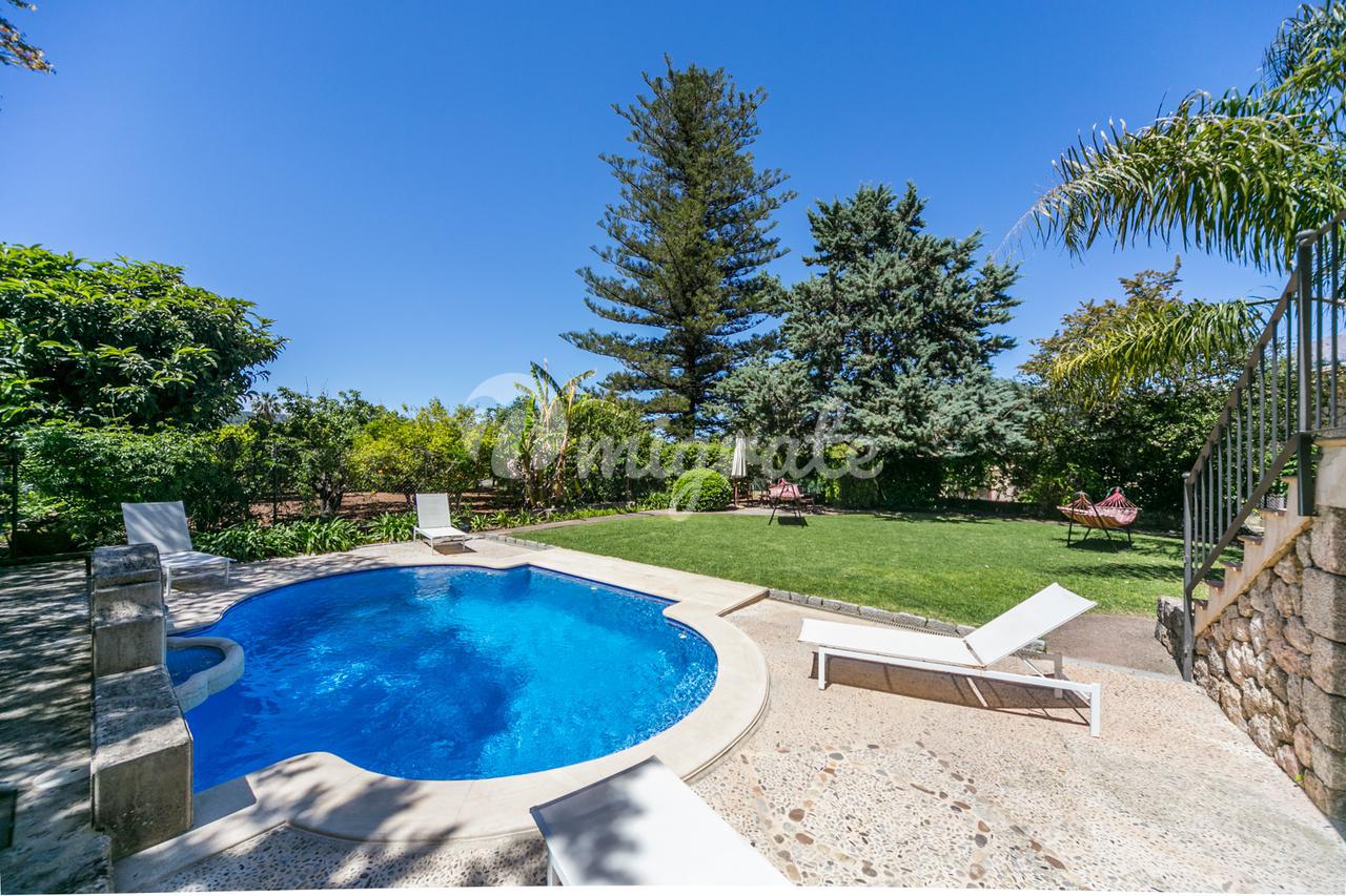 Дом окружен двумя садами с бассейном, различными террасами и фруктовыми деревьями. Сад идеально подходит для детей с лужайкой, тихими уголками и прекрасным видом.