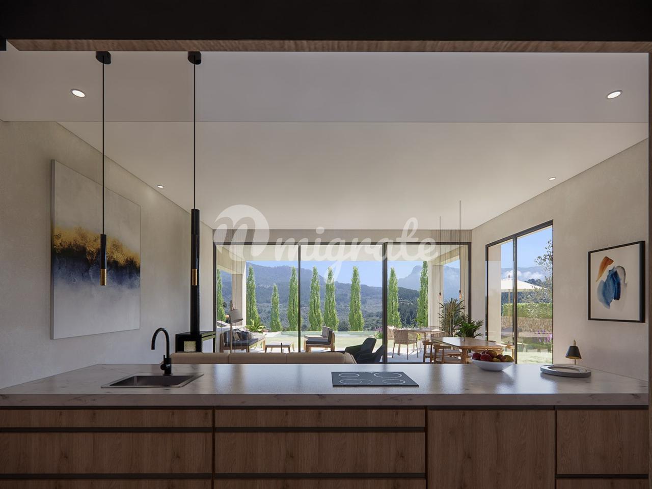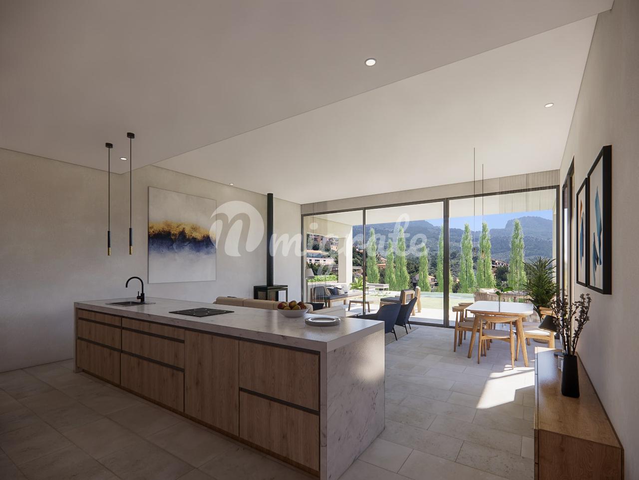 Первый этаж: просторная гостиная-столовая открытой планировки с дровяной печью и американской кухней с очень высоким потолком, кладовой и гостевым туалетом, ведущими на веранду, террасу и сад с бассейном с прекрасным видом на долину и горы. Второй этаж: две спальни с ванными комнатами, обе с собственным балконом и террасой.