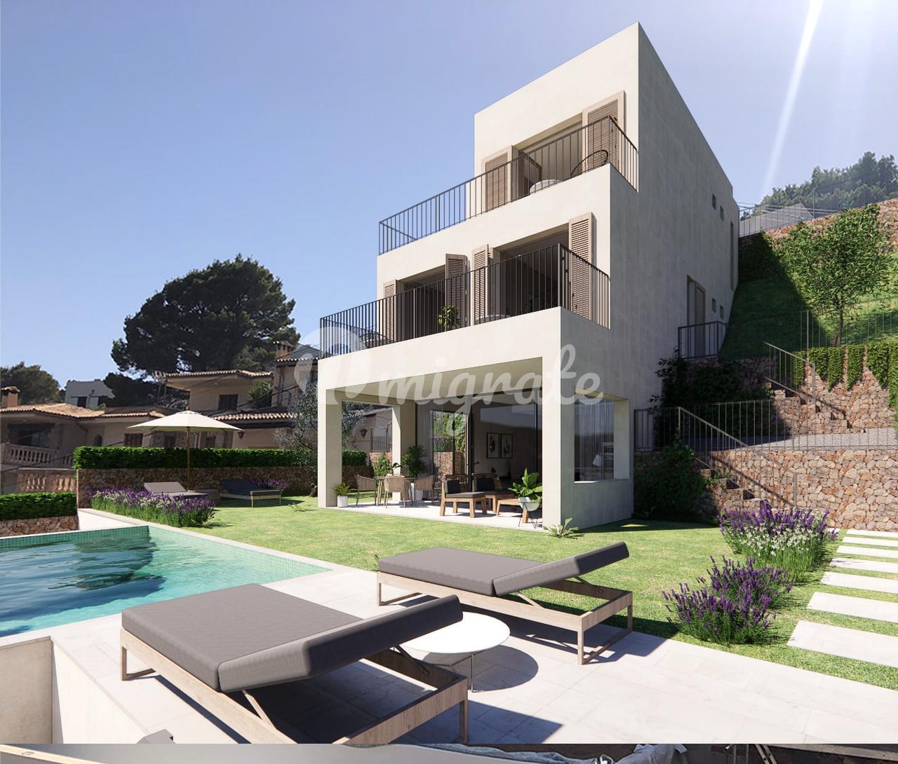 Жилая площадь ок. 290 м2 плюс террасы распределены на трех этажах.