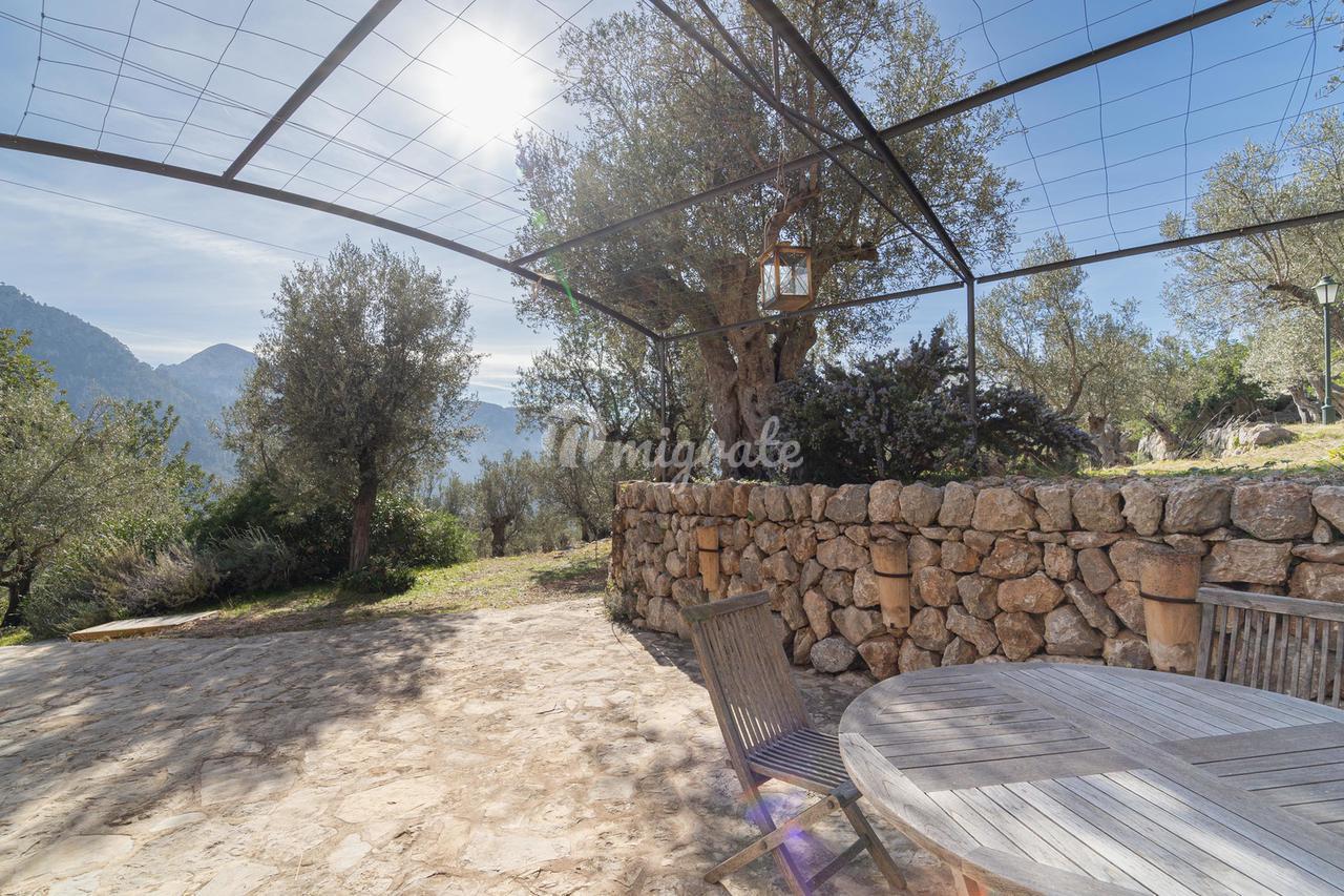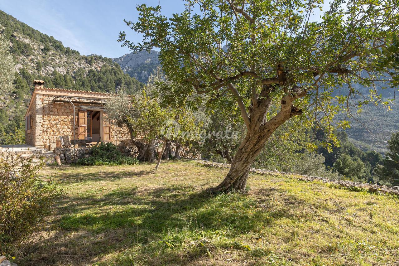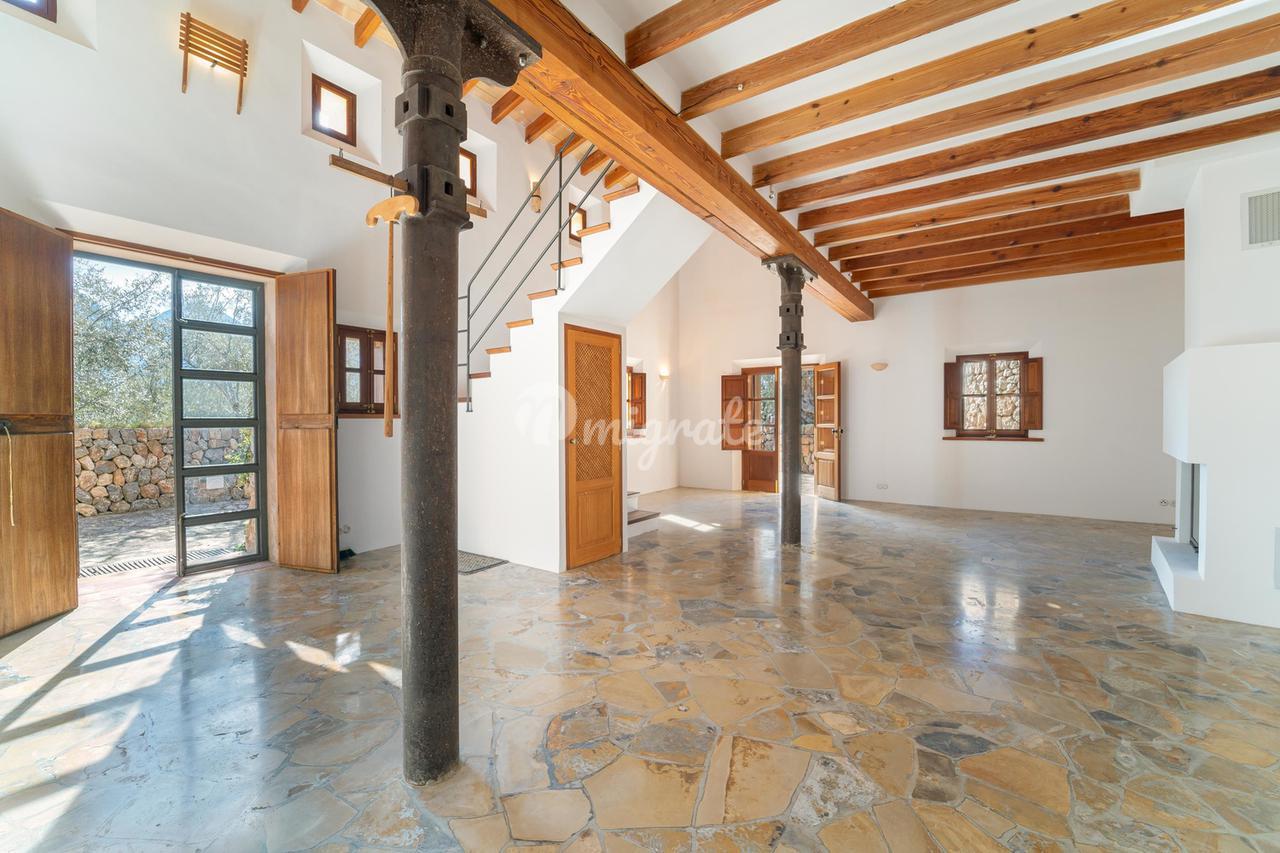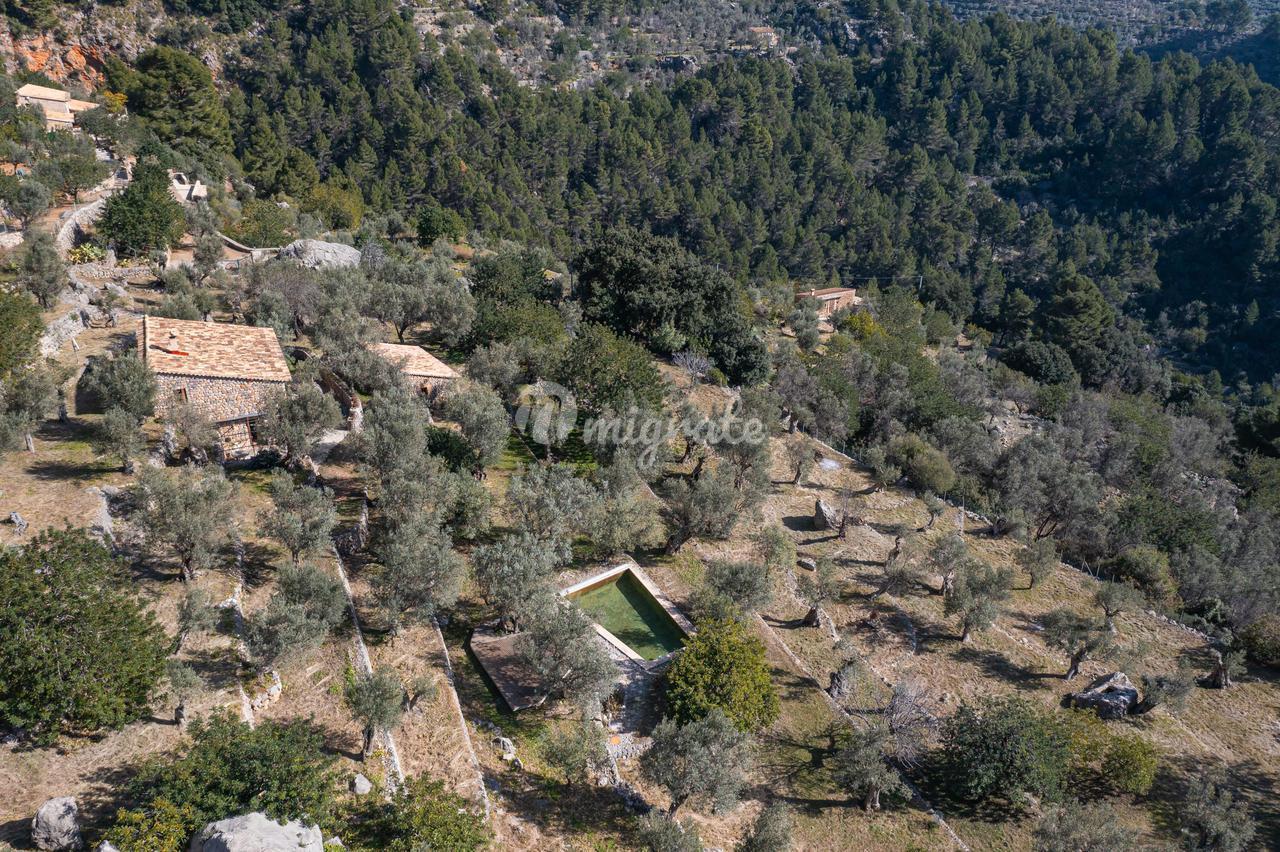 Жилая площадь около 190 м2 плюс террасы разделены на главный дом площадью ок. 120 м2 и гостевой дом площадью ок. 70 м2. Главный дом: Первый этаж: гостиная/столовая со швейцарским камином, открытая кухня, подсобное помещение и гостевой туалет. Второй этаж: главная спальня с кондиционером горячей / холодной воды и вторая спальня с общей просторной ванной комнатой. Гостевой дом: Первый этаж: гостиная/столовая с камином, открытая кухня и спальная зона. Мезонин: ванная комната Цокольный этаж: просторная спальня Поскольку дом расположен в оливковой роще с террасами, со всех уровней есть выход наружу. Недвижимость находится в очень хорошем состоянии. Усадьба из натурального камня была построена в удачном сочетании традиций и современности на развалинах старого здания. Были объединены современные строительные материалы и традиционные элементы, такие как железные балки со старой текстильной фабрики в Соллере. Усадьба расположена в тихом месте, среди очень старых и ухоженных оливковых рощ. Рожковое, инжирное и миндальное деревья, а также розмарин и лаванда дополняют средиземноморскую атмосферу. С террас и бассейна (8 х 4 метра, с морской водой) открывается захватывающий панорамный вид на горный хребет Трамунтана до Сольера. Неограниченное парковочное место. Дом расположен в горах над очаровательной деревней Форналуткс, которая находится менее чем в пяти минутах езды или примерно в 20 минутах ходьбы от отеля с ее магазинами и ресторанами. До городов Сольер и Пуэрто-де-Сольер с широким выбором магазинов и ресторанов можно доехать на автомобиле за 15 минут. Ближайший пляж также находится в Пуэрто-де-Сольер.