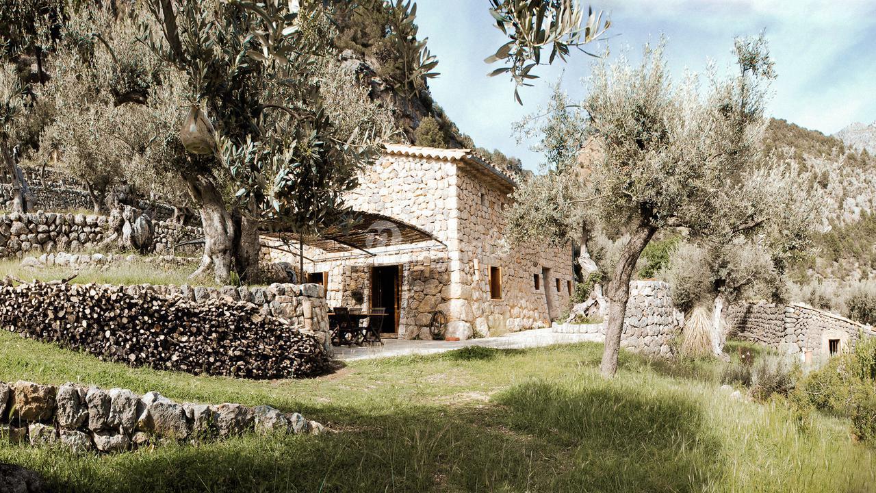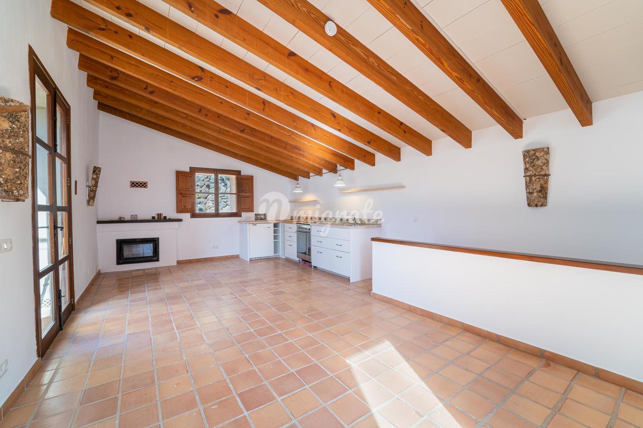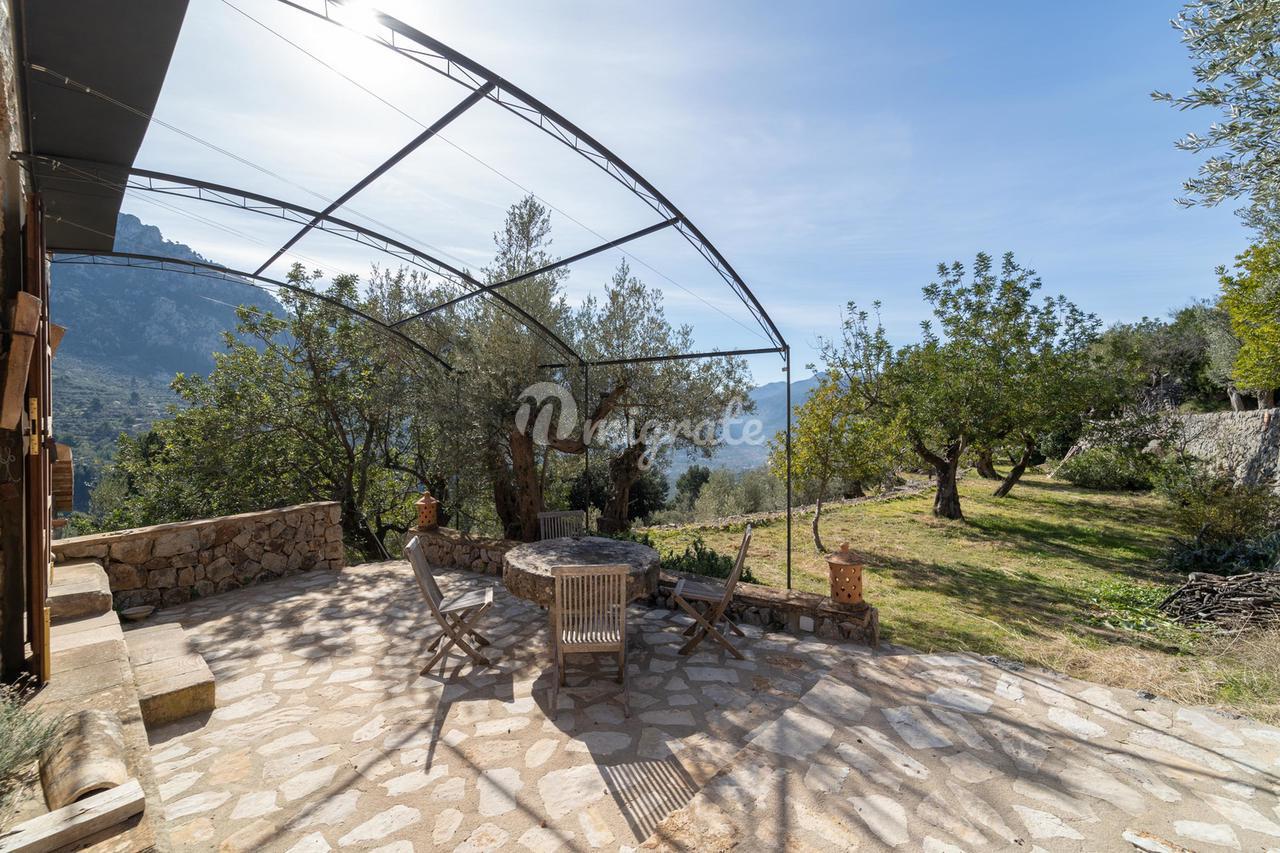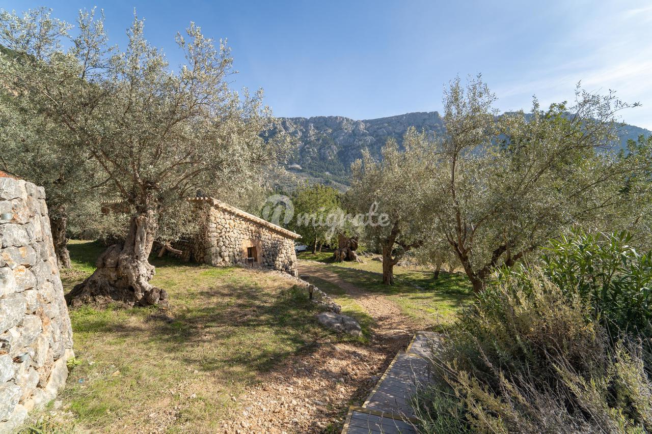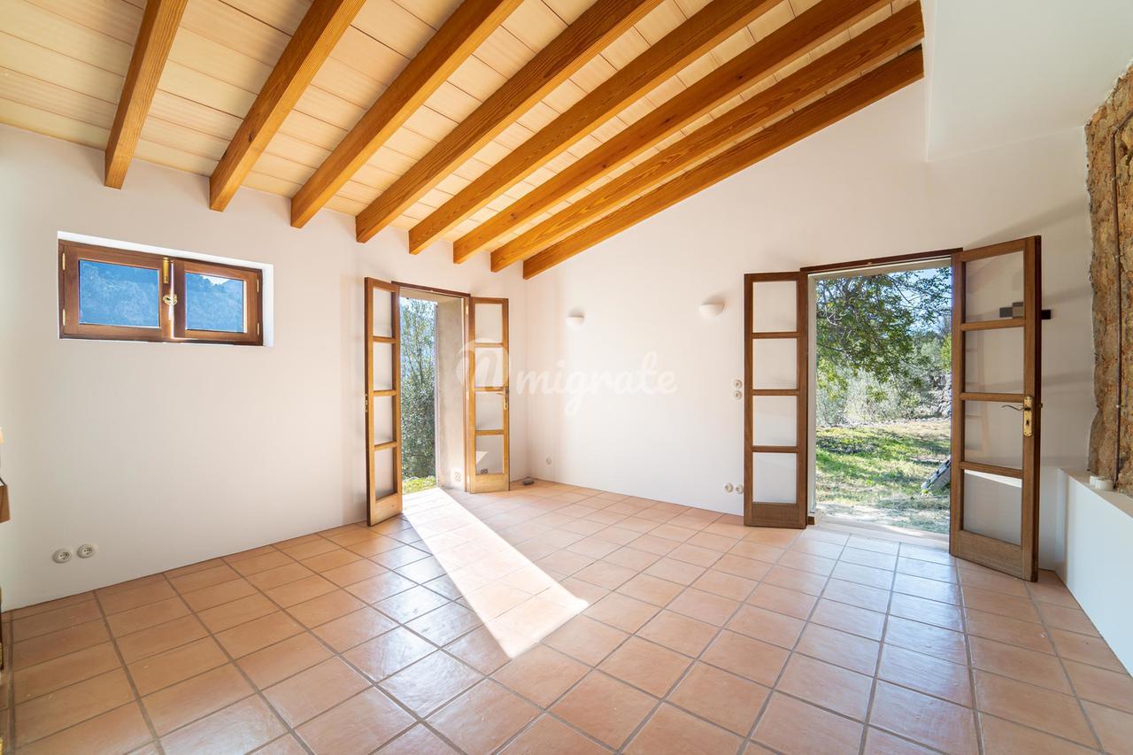 Жилая площадь около 190 м2 плюс террасы разделены на главный дом площадью ок. 120 м2 и гостевой дом площадью ок. 70 м2. Главный дом: Первый этаж: гостиная/столовая со швейцарским камином, открытая кухня, подсобное помещение и гостевой туалет. Второй этаж: главная спальня с кондиционером горячей / холодной воды и вторая спальня с общей просторной ванной комнатой. Гостевой дом: Первый этаж: гостиная/столовая с камином, открытая кухня и спальная зона. Мезонин: ванная комната Цокольный этаж: просторная спальня Поскольку дом расположен в оливковой роще с террасами, со всех уровней есть выход наружу. Недвижимость находится в очень хорошем состоянии. Усадьба из натурального камня была построена в удачном сочетании традиций и современности на развалинах старого здания. Были объединены современные строительные материалы и традиционные элементы, такие как железные балки со старой текстильной фабрики в Соллере. Усадьба расположена в тихом месте, среди очень старых и ухоженных оливковых рощ. Рожковое, инжирное и миндальное деревья, а также розмарин и лаванда дополняют средиземноморскую атмосферу. С террас и бассейна (8 х 4 метра, с морской водой) открывается захватывающий панорамный вид на горный хребет Трамунтана до Сольера. Неограниченное парковочное место. Дом расположен в горах над очаровательной деревней Форналуткс, которая находится менее чем в пяти минутах езды или примерно в 20 минутах ходьбы от отеля с ее магазинами и ресторанами. До городов Сольер и Пуэрто-де-Сольер с широким выбором магазинов и ресторанов можно доехать на автомобиле за 15 минут. Ближайший пляж также находится в Пуэрто-де-Сольер.