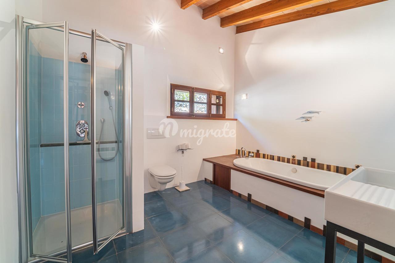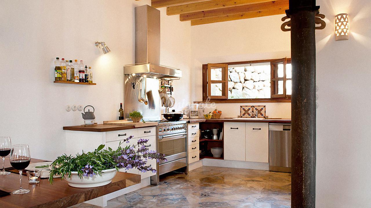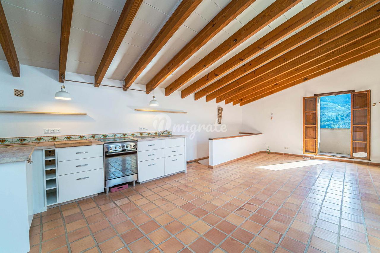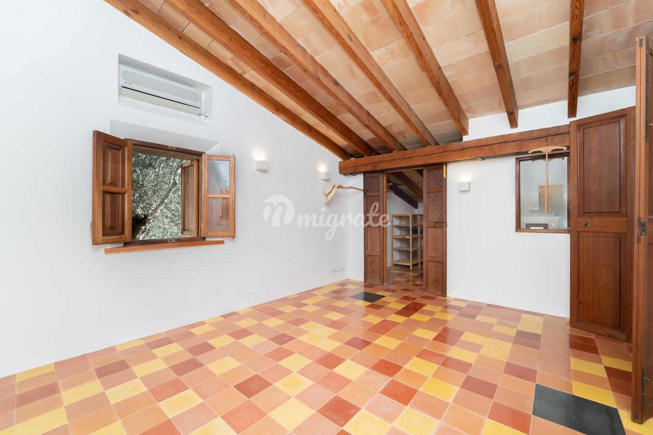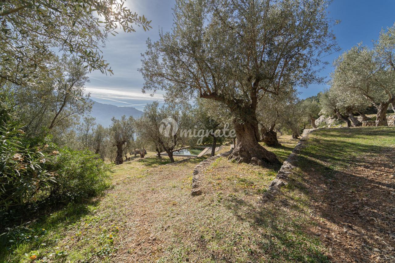 Жилая площадь около 190 м2 плюс террасы разделены на главный дом площадью ок. 120 м2 и гостевой дом площадью ок. 70 м2. Главный дом: Первый этаж: гостиная/столовая со швейцарским камином, открытая кухня, подсобное помещение и гостевой туалет. Второй этаж: главная спальня с кондиционером горячей / холодной воды и вторая спальня с общей просторной ванной комнатой. Гостевой дом: Первый этаж: гостиная/столовая с камином, открытая кухня и спальная зона. Мезонин: ванная комната Цокольный этаж: просторная спальня Поскольку дом расположен в оливковой роще с террасами, со всех уровней есть выход наружу. Недвижимость находится в очень хорошем состоянии. Усадьба из натурального камня была построена в удачном сочетании традиций и современности на развалинах старого здания. Были объединены современные строительные материалы и традиционные элементы, такие как железные балки со старой текстильной фабрики в Соллере. Усадьба расположена в тихом месте, среди очень старых и ухоженных оливковых рощ. Рожковое, инжирное и миндальное деревья, а также розмарин и лаванда дополняют средиземноморскую атмосферу. С террас и бассейна (8 х 4 метра, с морской водой) открывается захватывающий панорамный вид на горный хребет Трамунтана до Сольера. Неограниченное парковочное место. Дом расположен в горах над очаровательной деревней Форналуткс, которая находится менее чем в пяти минутах езды или примерно в 20 минутах ходьбы от отеля с ее магазинами и ресторанами. До городов Сольер и Пуэрто-де-Сольер с широким выбором магазинов и ресторанов можно доехать на автомобиле за 15 минут. Ближайший пляж также находится в Пуэрто-де-Сольер.