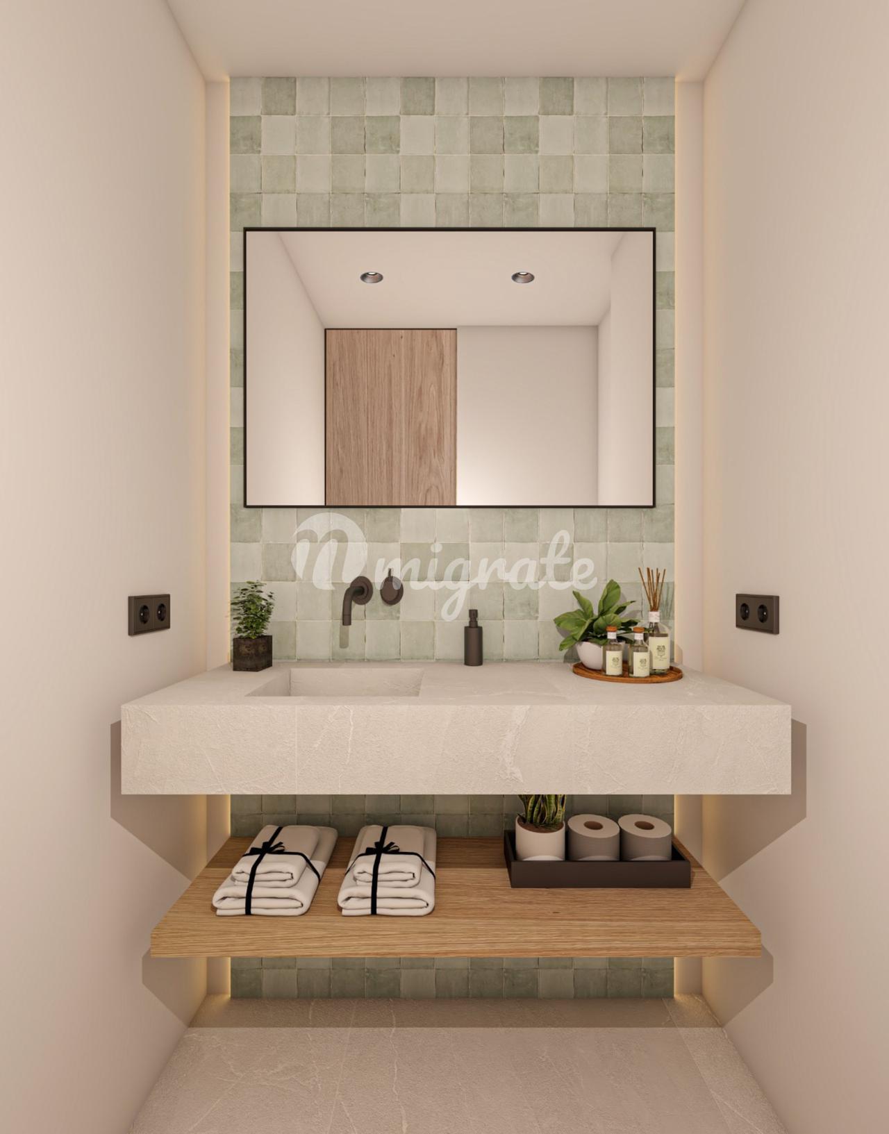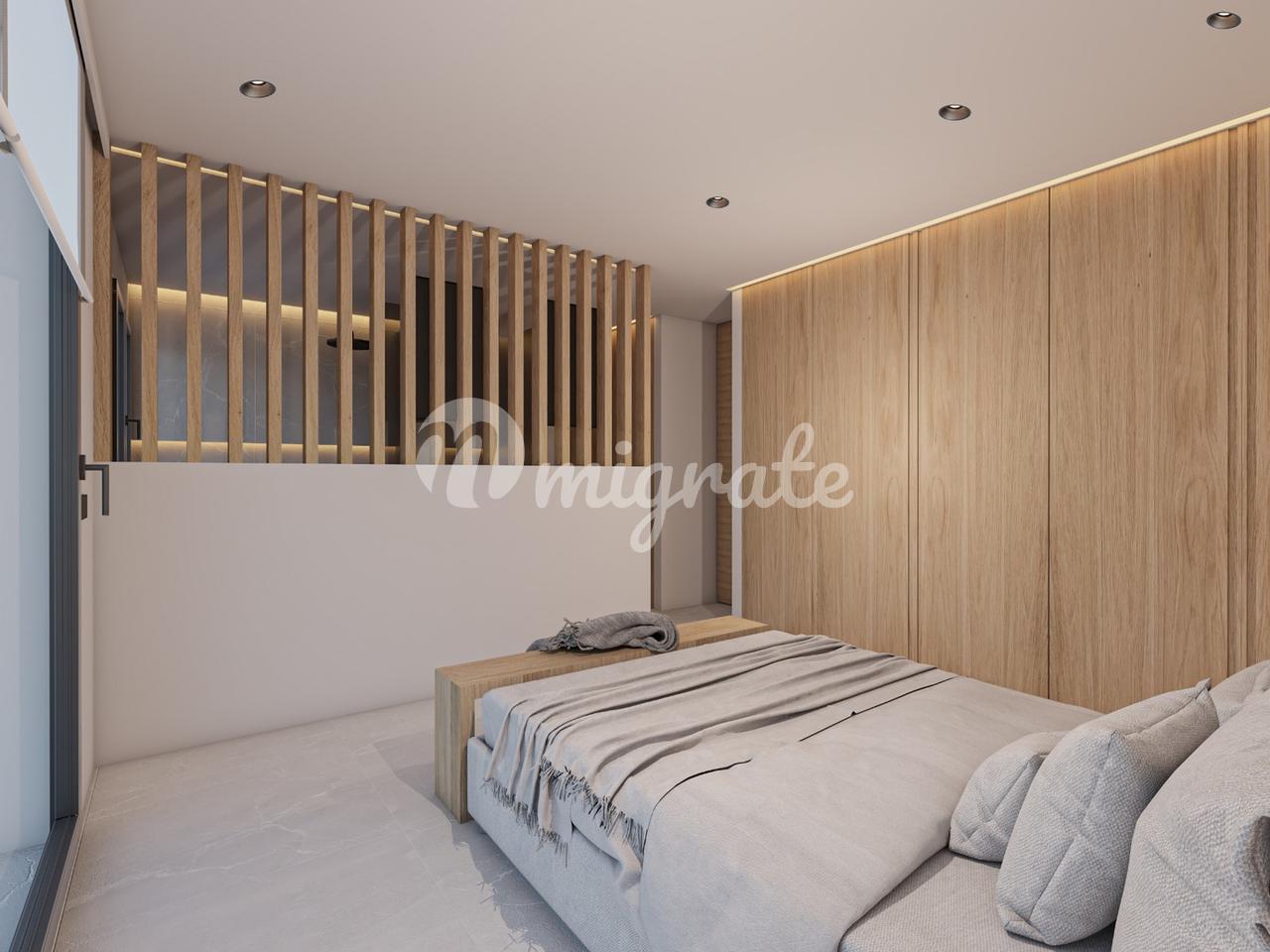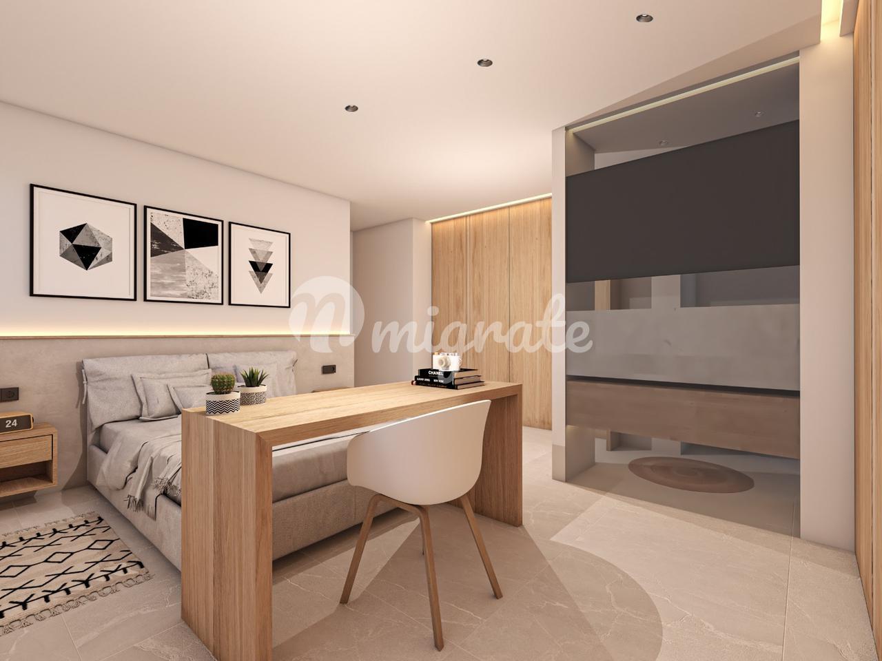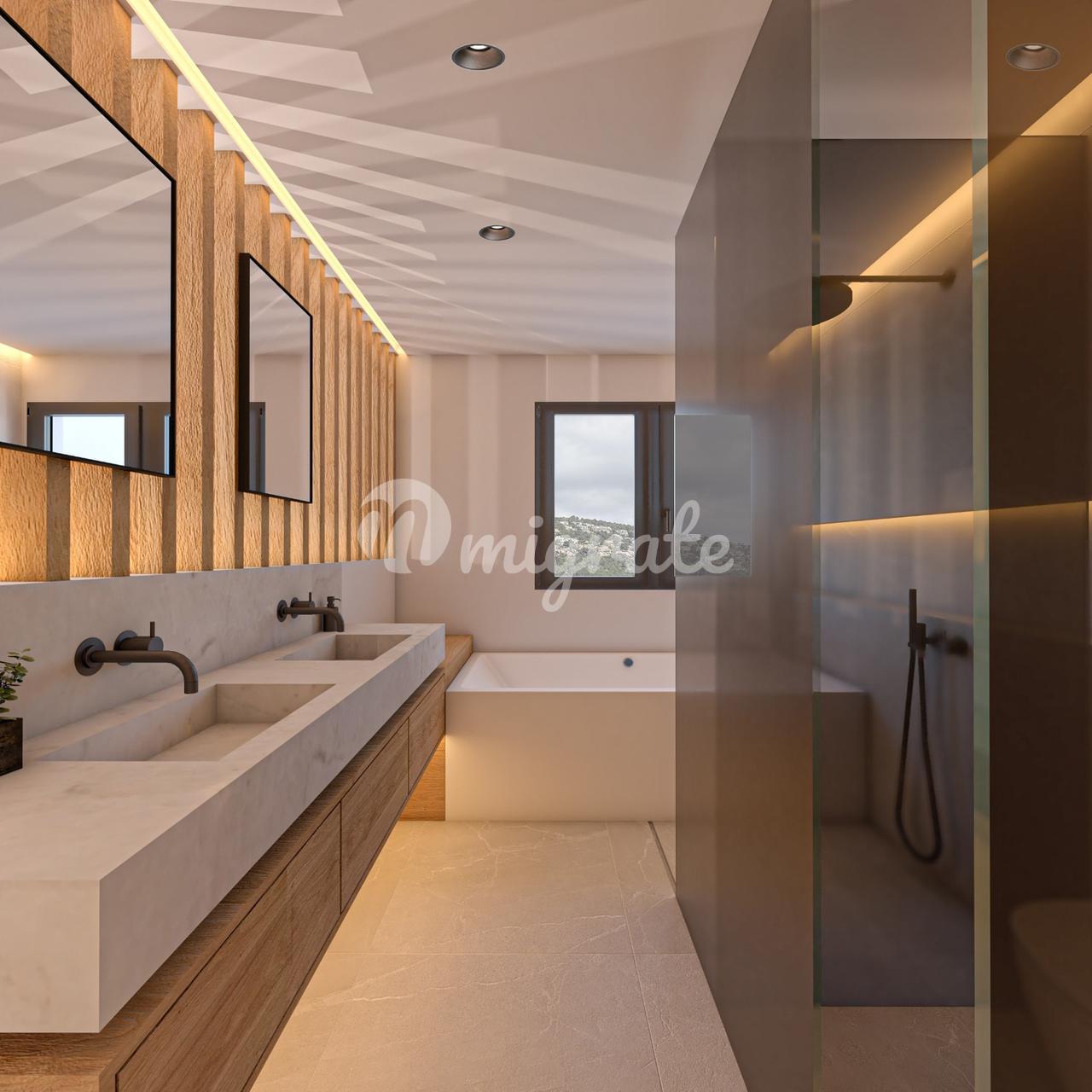 На первом этаже пентхауса расположены три спальни и две ванные комнаты, открытая кухня и гостиная с панорамно-раздвижными дверями, которые соединены с большой террасой с видом на горы.