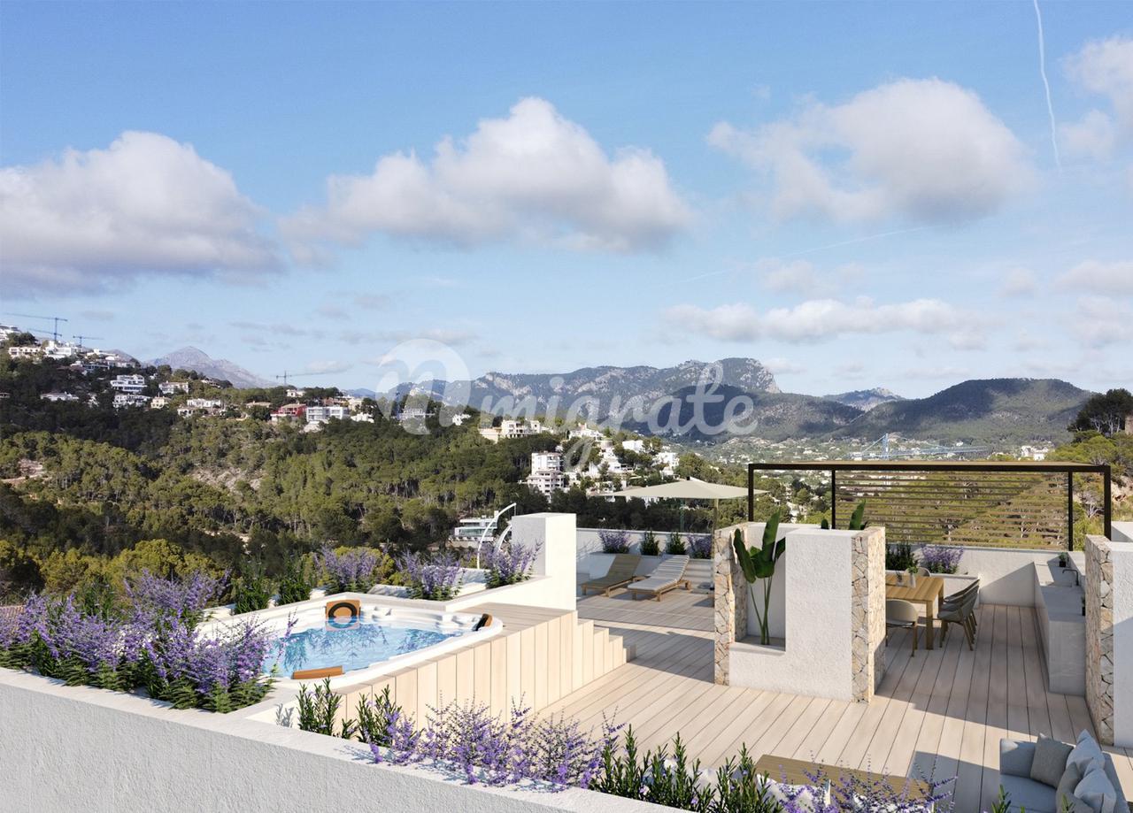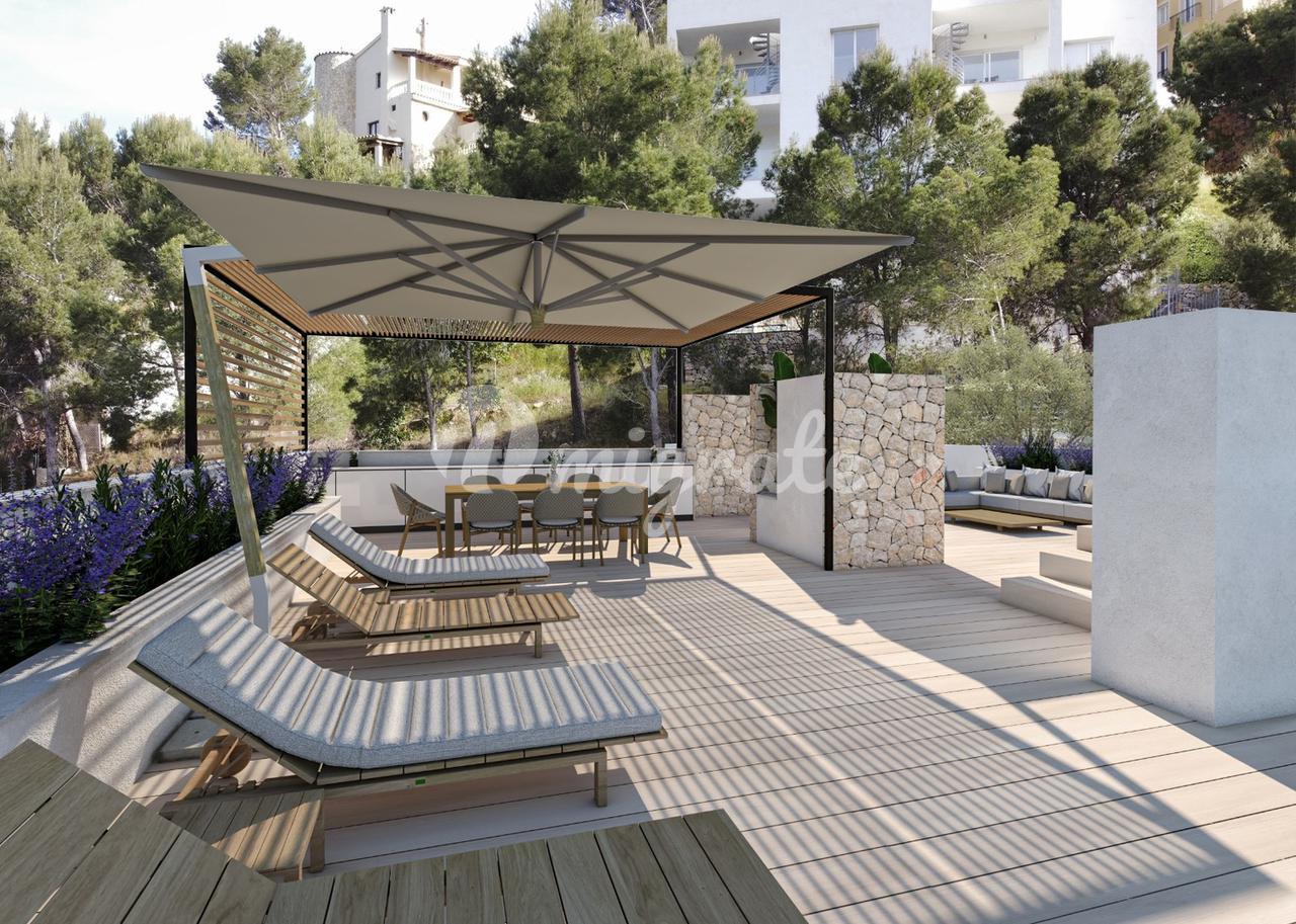 Вы попадаете на террасу на крыше по внешней лестнице, где есть джакузи с шезлонгами, зона отдыха, легко может быть установлена летняя кухня, а также летняя столовая и туалет. В сообществе этого пентхауса есть бассейн. Включены два парковочных места в подвале блока и одна кладовая.