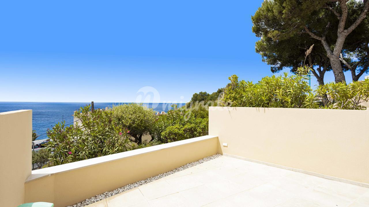 Первый этаж: это подъездной этаж. Кухня выходит в столовую, гостиную и туалет. С крытой террасы открывается панорамный вид на залив Кала-Льямп.