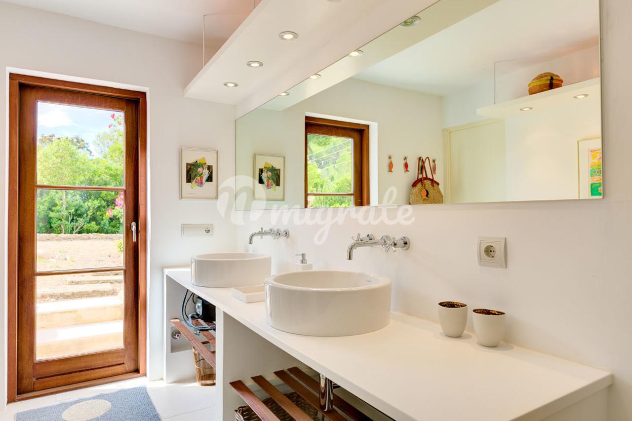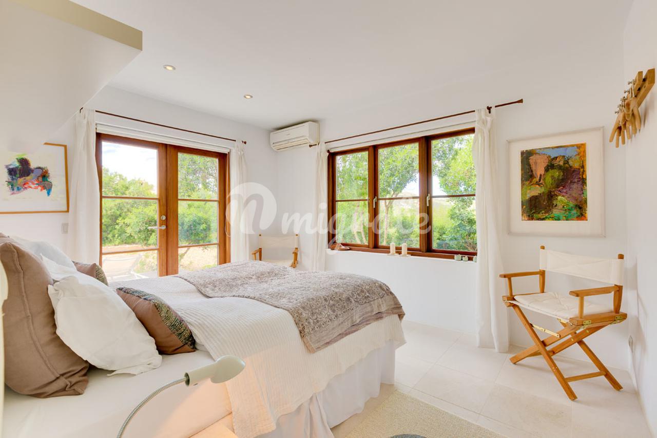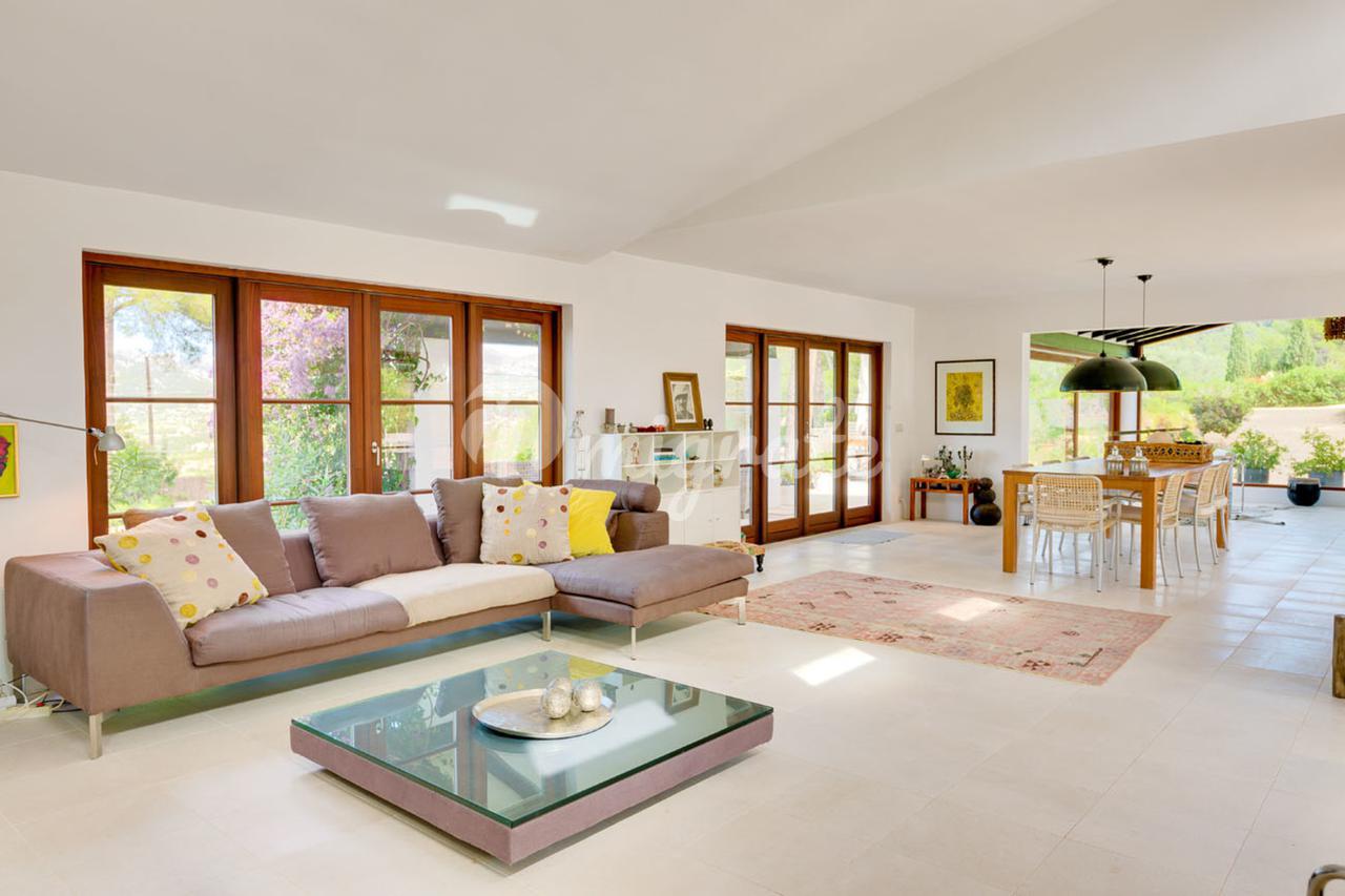 Несколько террас, большой двор с уютной зоной отдыха, летнее барбекю, бассейн, 2 летних душа, захватывающий вид на горы Трамунтана, большой участок с соснами, миндальными деревьями и большими агавами.