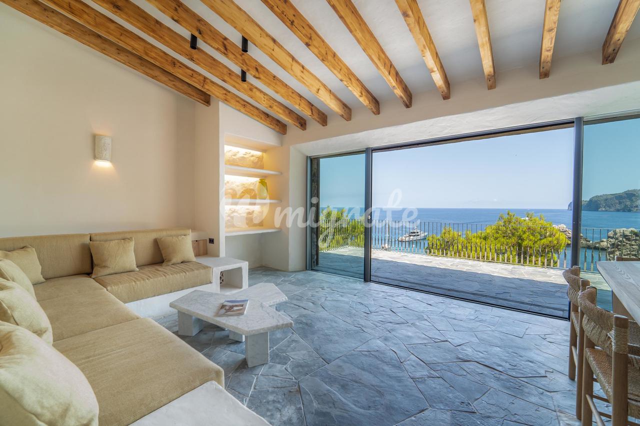 С лицензией на аренду на время отпуска. Жилая площадь ок. 100 м2 плюс ок. 110 м2 террас распределены по двум этажам. Первый этаж: гостиная с камином и выходом на террасу с прекрасным видом на море, открытая кухня, 1 спальня, ванная комната и гостевой туалет. Первый этаж: две спальни и одна ванная комната с выходом на террасу у бассейна. Недвижимость представлена в отличном состоянии. Он был полностью отремонтирован в 2020 году с использованием высококачественных материалов и современного дизайна. Кондиционер. Парковка на одну машину. Недвижимость расположена в привилегированном месте в одном из самых популярных районов на всем острове Майорка. От дома до города Дейя 5 минут на машине и ок. 20-минутная прогулка. Другие близлежащие города, Вальдемосса и Сольер, всего в 20 минутах езды на машине, где вы найдете широкий спектр гастрономических и развлекательных услуг.