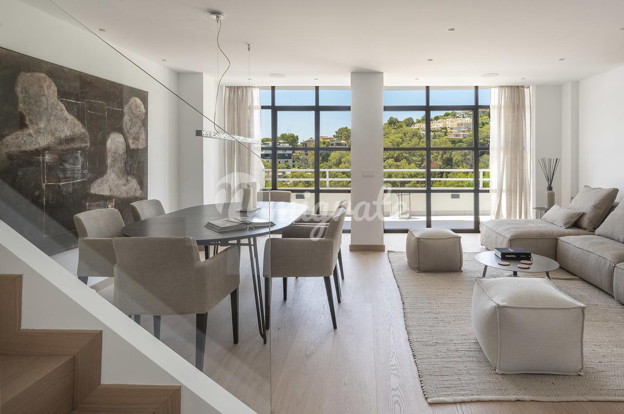 Этот трехуровневый пентхаус расположен в Cas Catala, в одном из самых эксклюзивных жилых районов Майорки. Он расположен всего в 200 метрах от морского пляжа. Всего за несколько минут вы дойдете до порта Каланова, до 5-звездочного отеля Maricel и множества ресторанов, баров и супермаркетов, расположенных в Сан-Августине. Центр города Пальма находится всего в 10 минутах езды на машине, а аэропорт - примерно в 20 минутах. Этот красивый пентхаус предлагает в общей сложности 3 спальни. Из главной и так называемой VIP-спальни открывается прекрасный вид на море. Из гостевой спальни открывается вид на зеленую зону. В спальнях есть специальные шкафы, сделанные на заказ, в двух новых ванных комнатах есть пол с подогревом, эксклюзивные камни и ванна Буто.