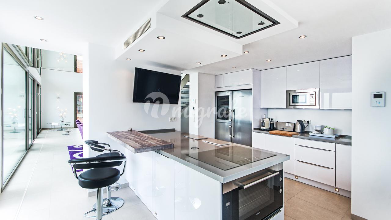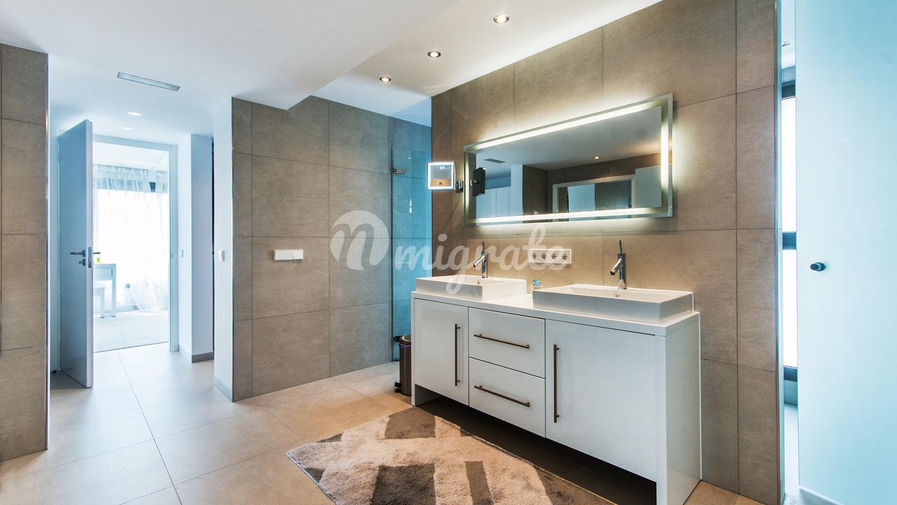 В главной спальне есть просторная гардеробная и ателье. Есть еще 3 спальни и гостевой туалет. В квартире также есть частный сад, а также различные крытые и открытые террасы, в том числе большая терраса на крыше площадью около 100 м2 для эксклюзивного использования.
